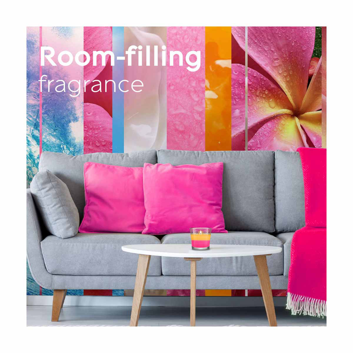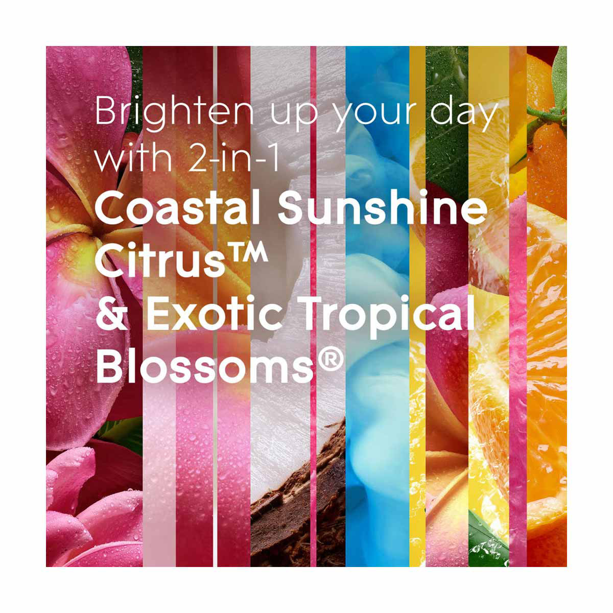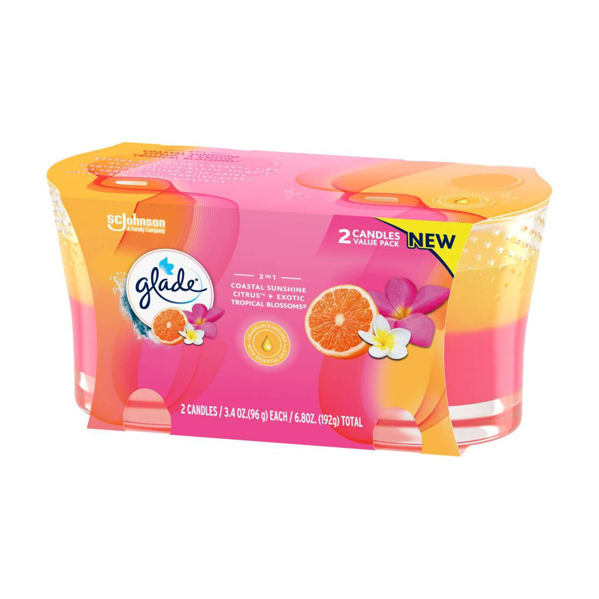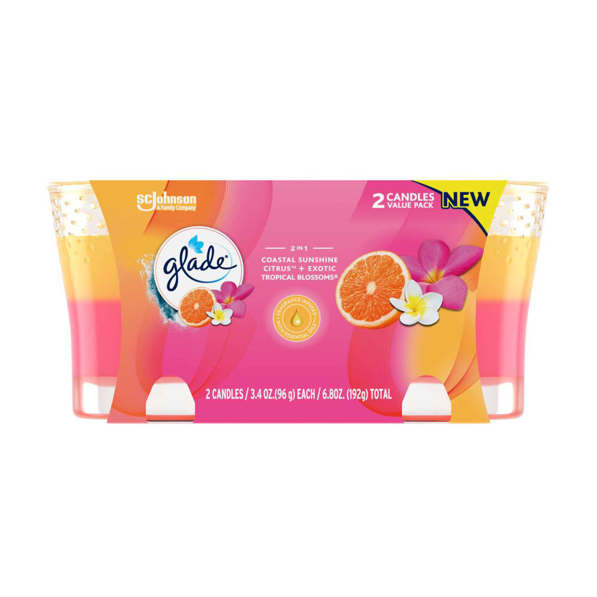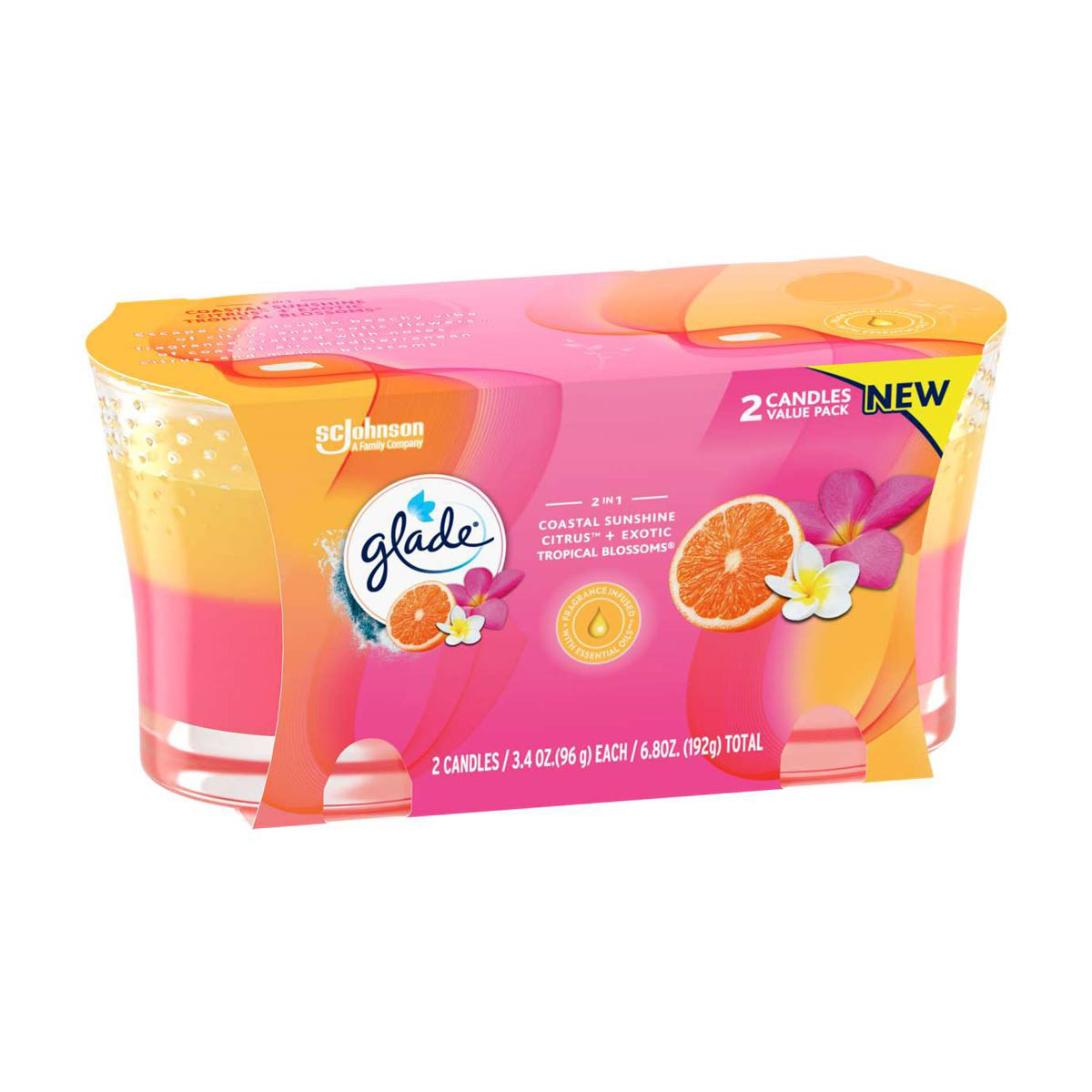 - Meet your next go-to candle and awaken your senses with the room filling fragrance of the expertly crafted Glade Coastal Sunshine Citrus & Exotic Tropical Blossom 2 in 1 Scent candle