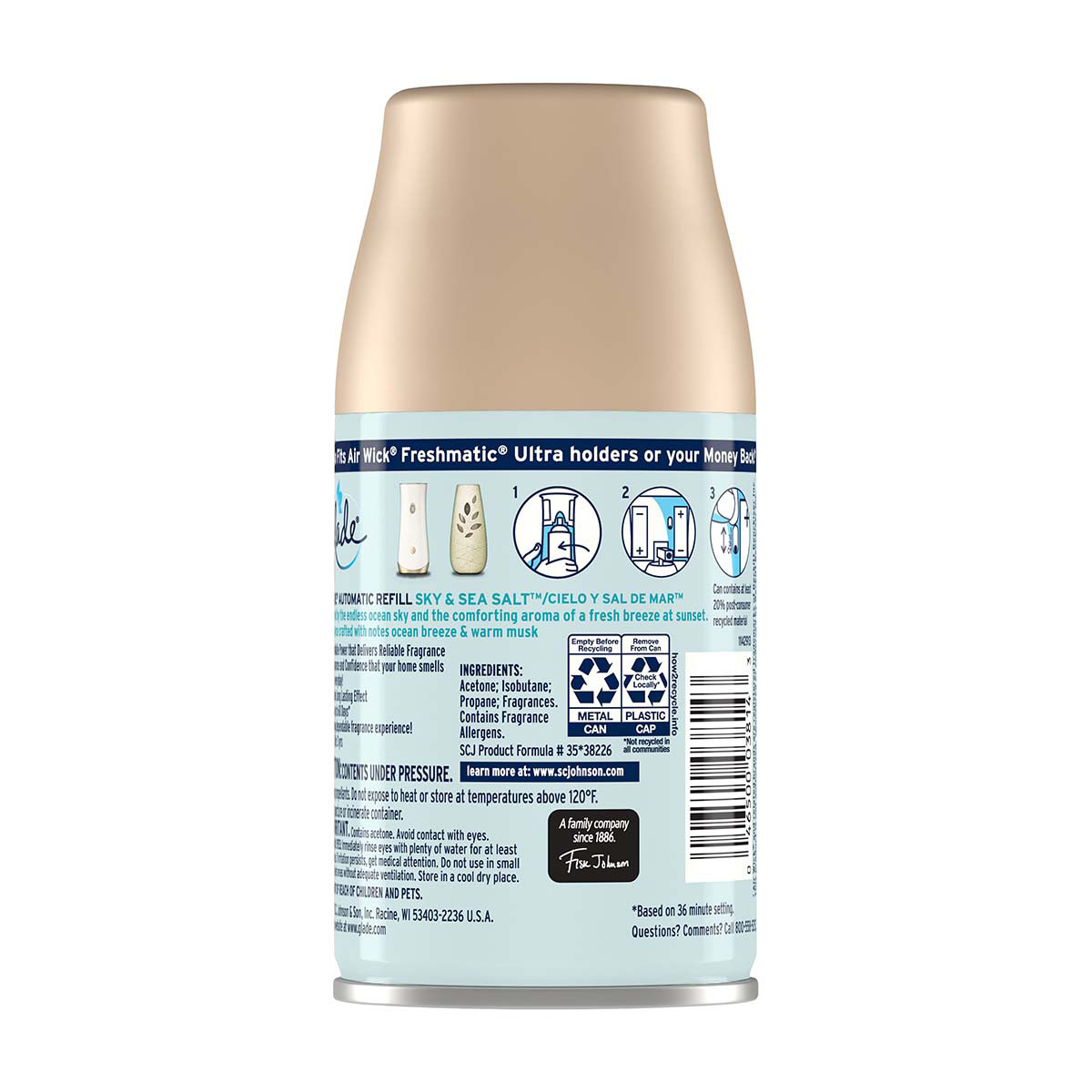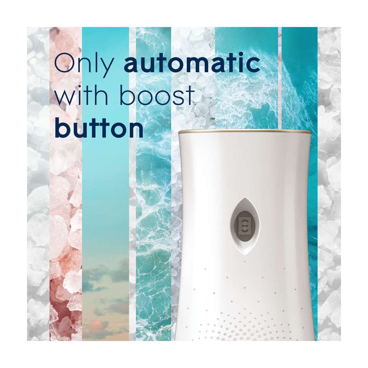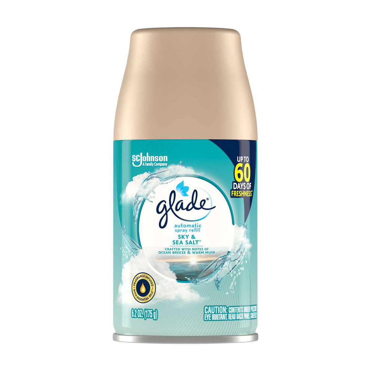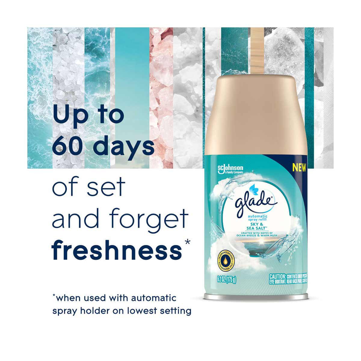 - Free your mind with Glade automatic spray, with notes of ocean breeze, sea salt and driftwood