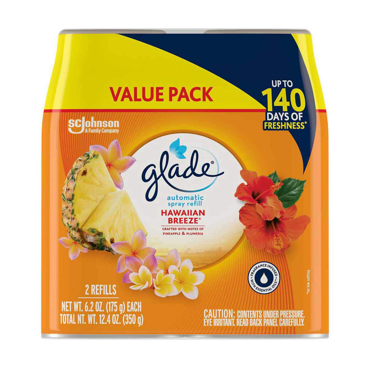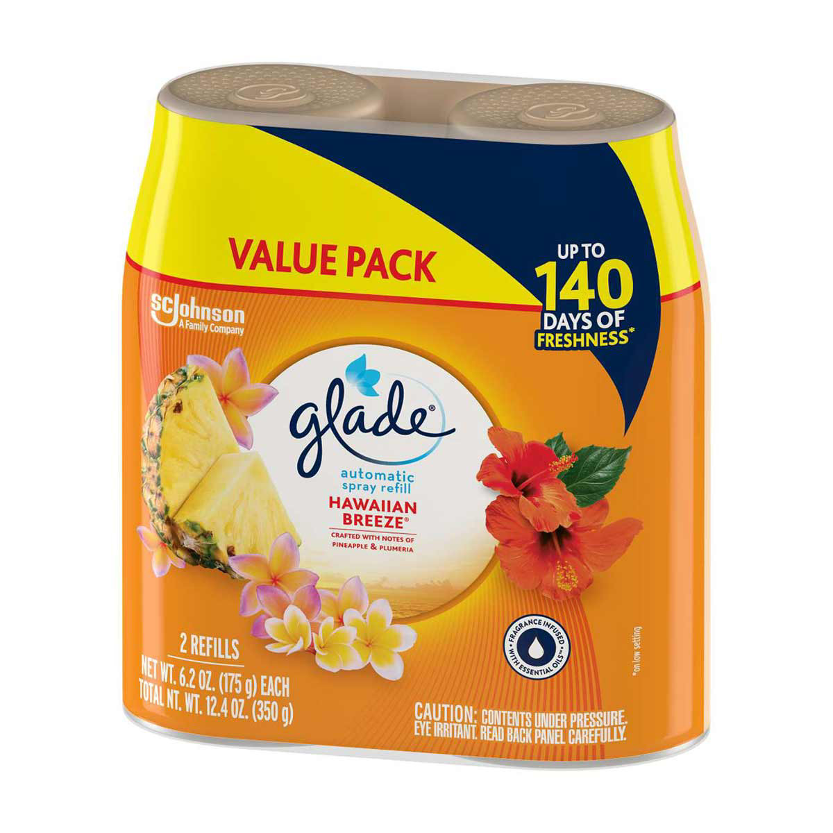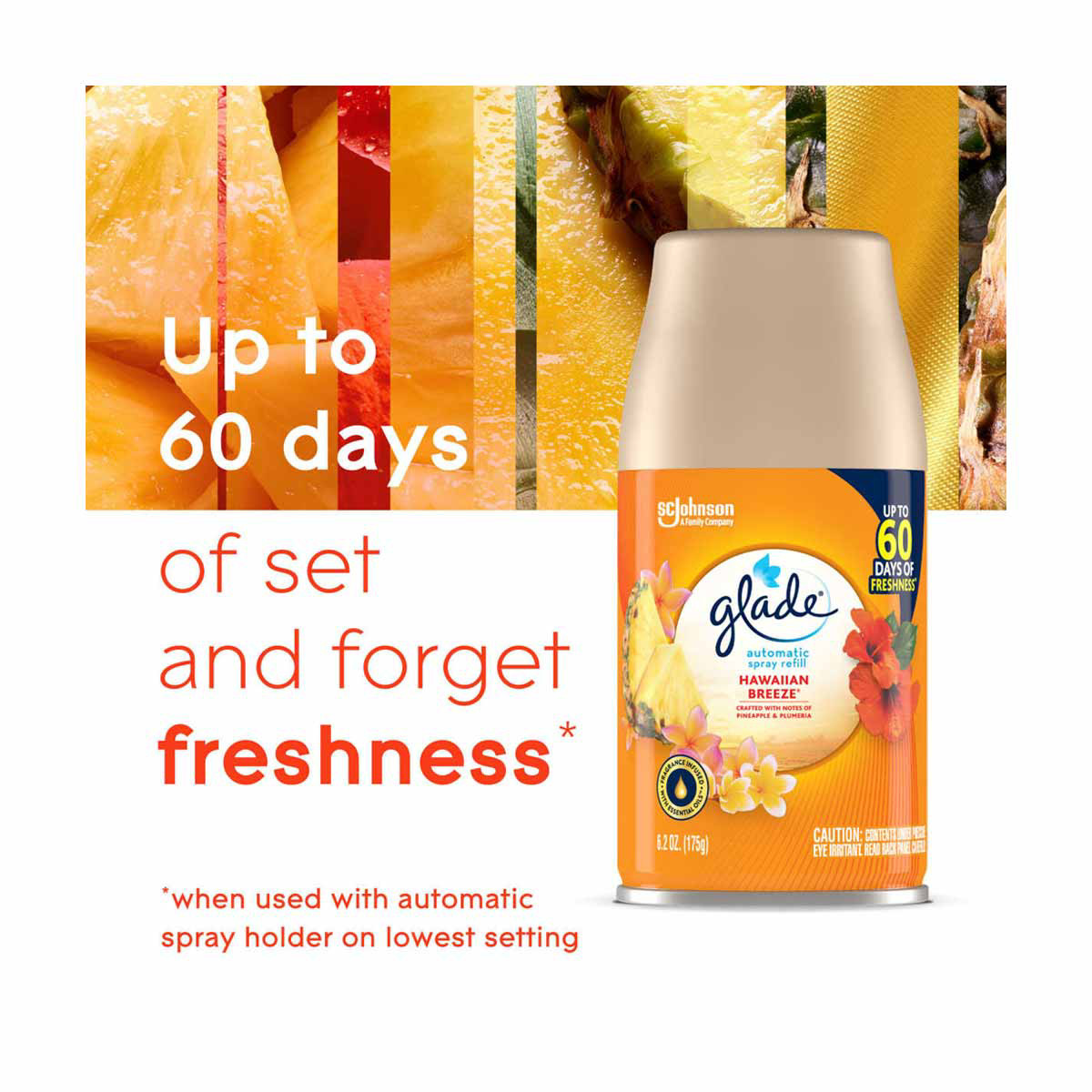 - Say Aloha to relaxation with Glade automatic spray with notes of ripe pineapple, melon, and peach nectar