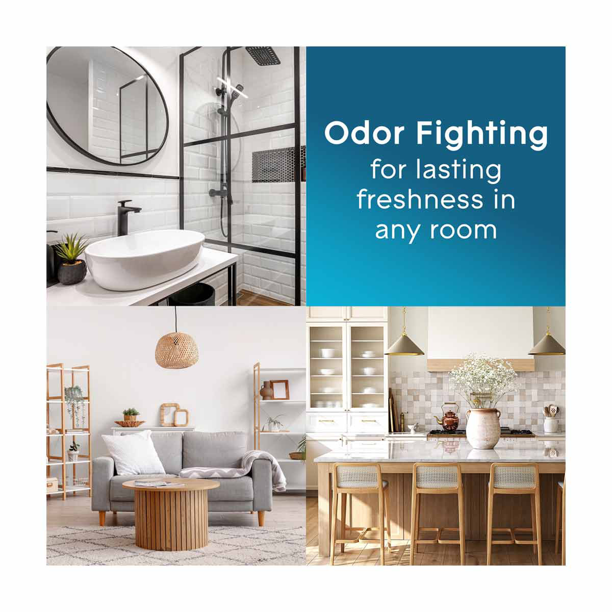 - Instantly freshen any room, including bathrooms, kitchens, and living rooms