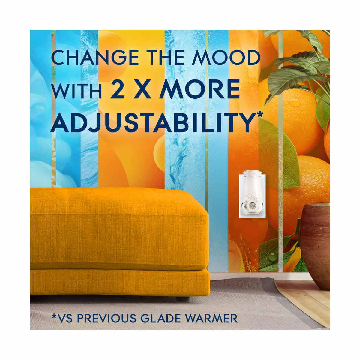 - Let this Glade PlugIn air freshener change the mood with 2x more adjustability (vs. previous Glade warmer)
