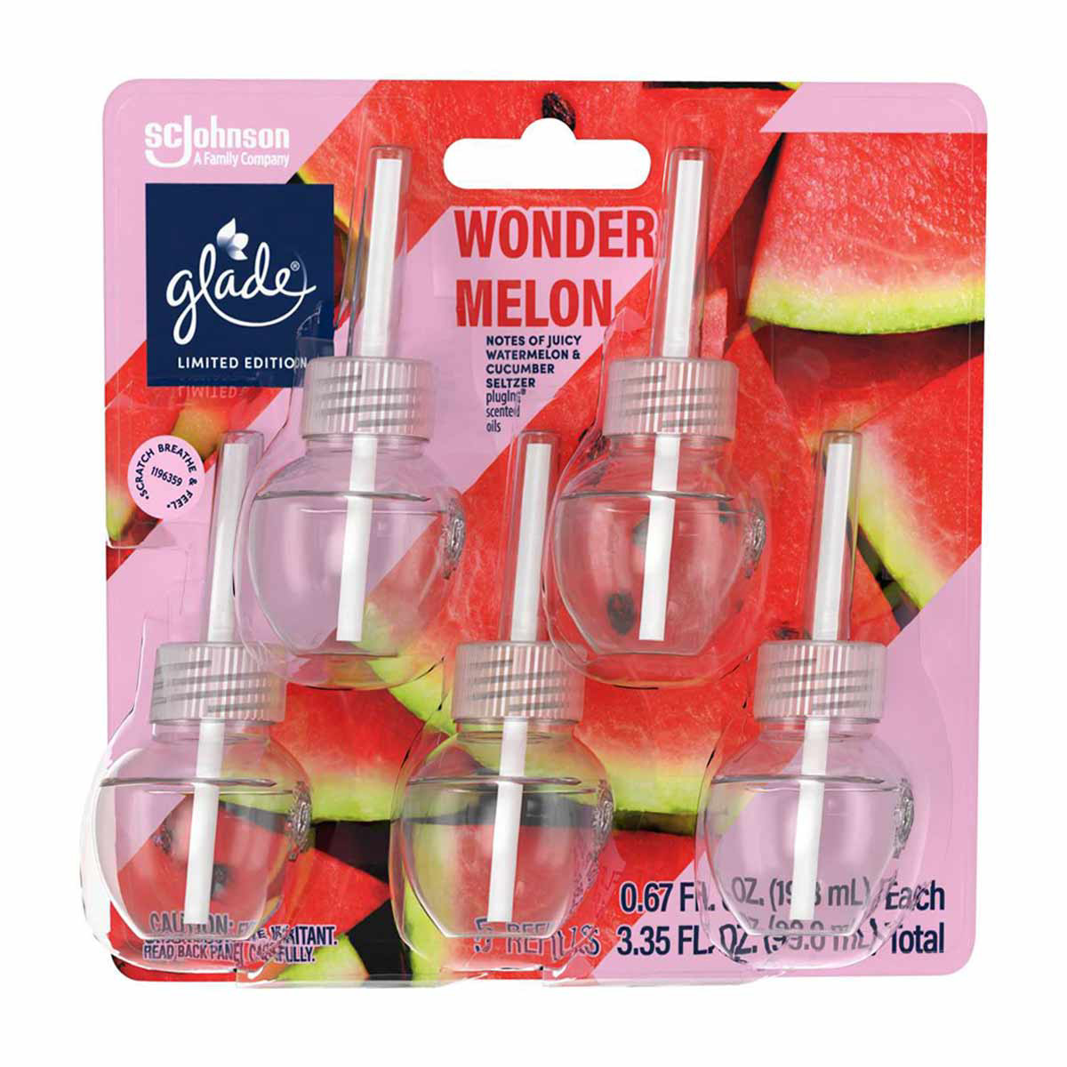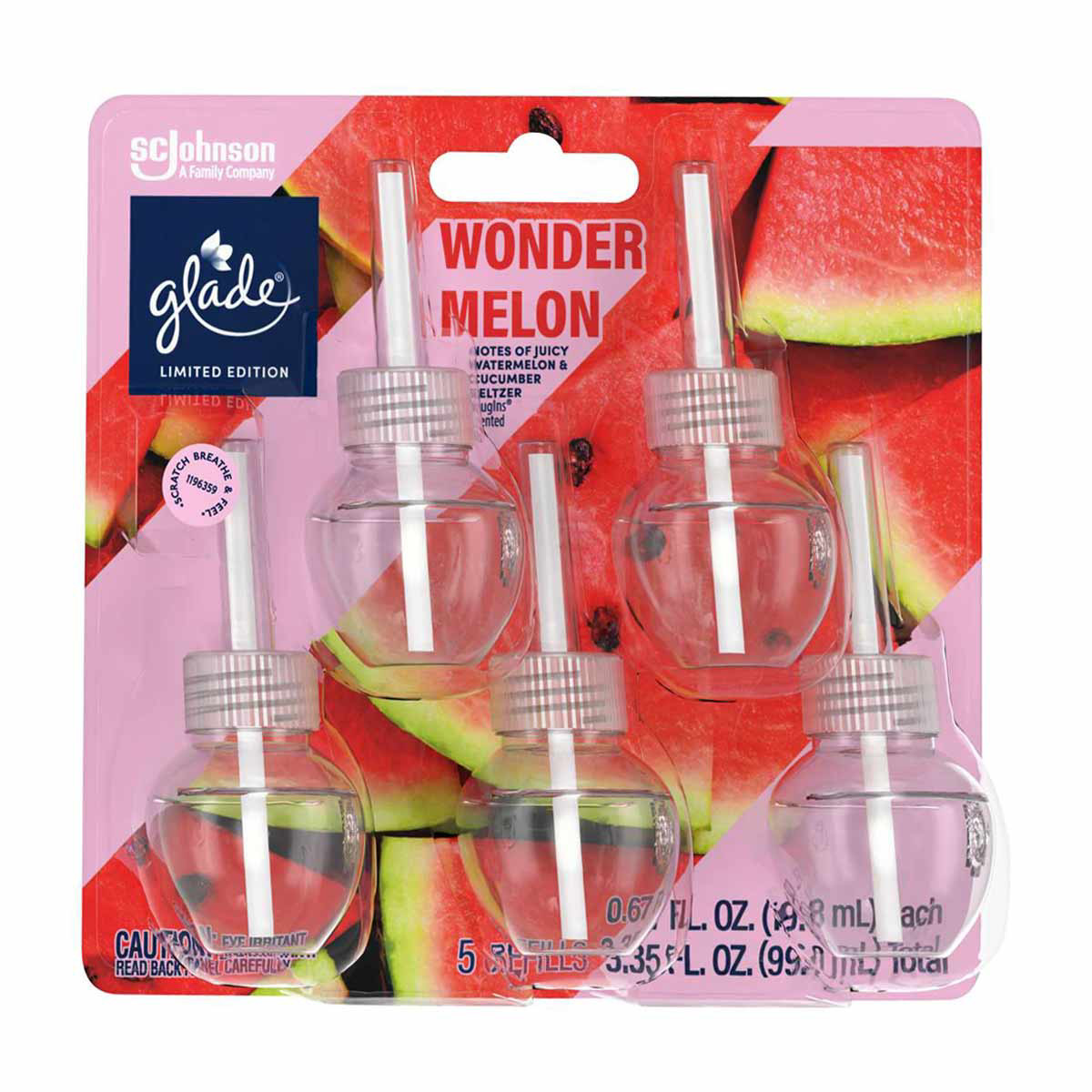 - Glade PlugIn with fragrance oils infused with juicy watermelon and sparkling cucumber water scent