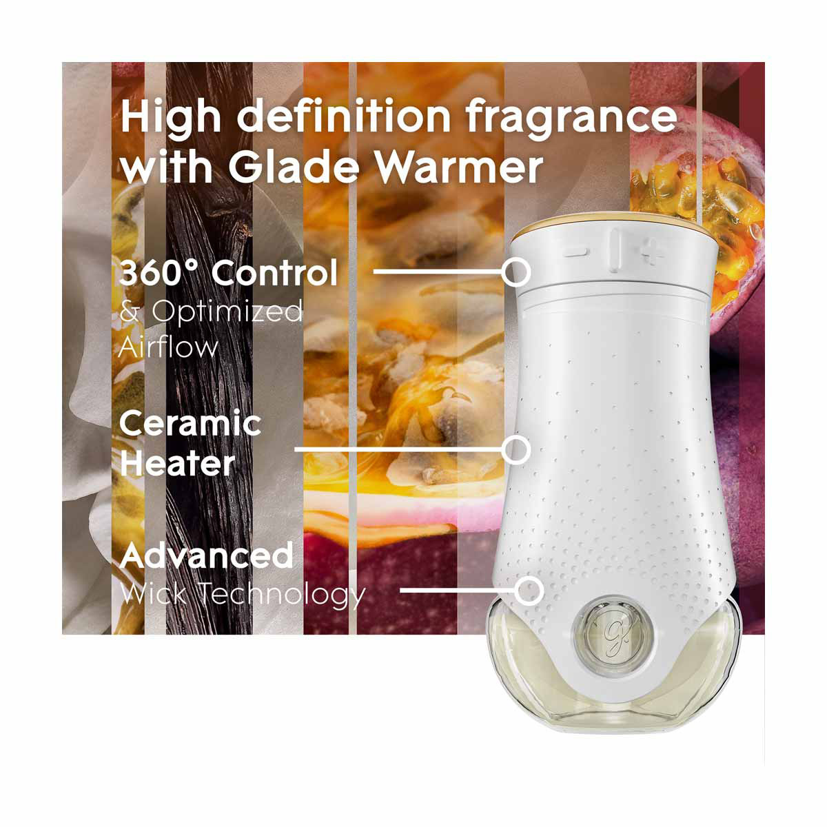 - Oil PlugIns that change the mood with 2x more adjustability (vs. previous Glade warmer)