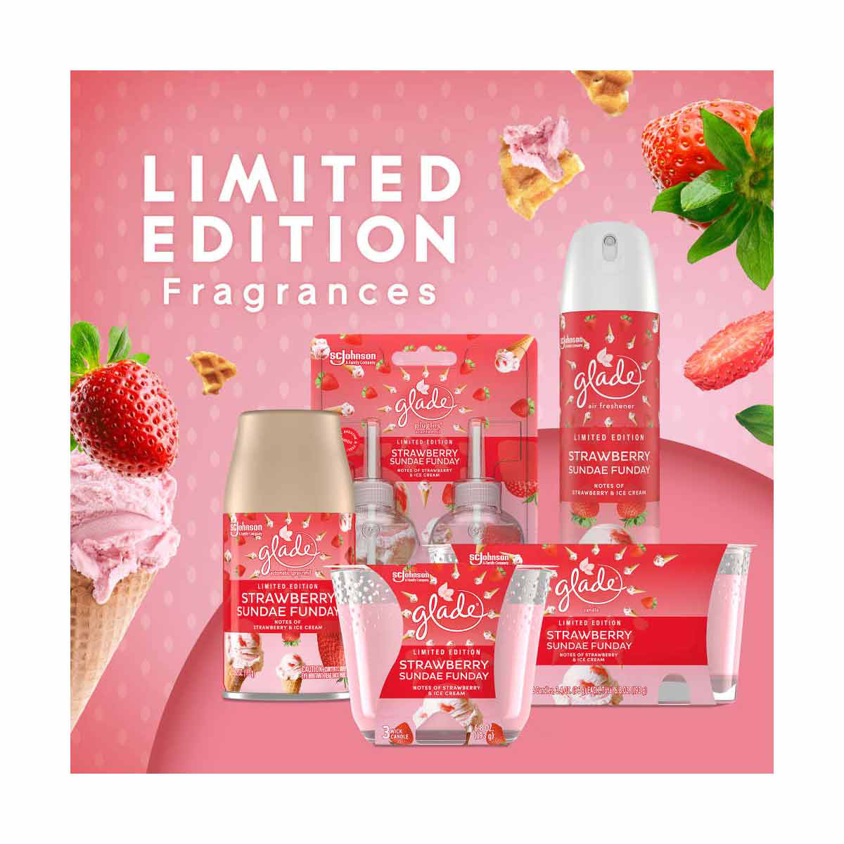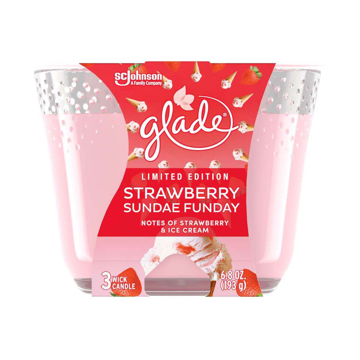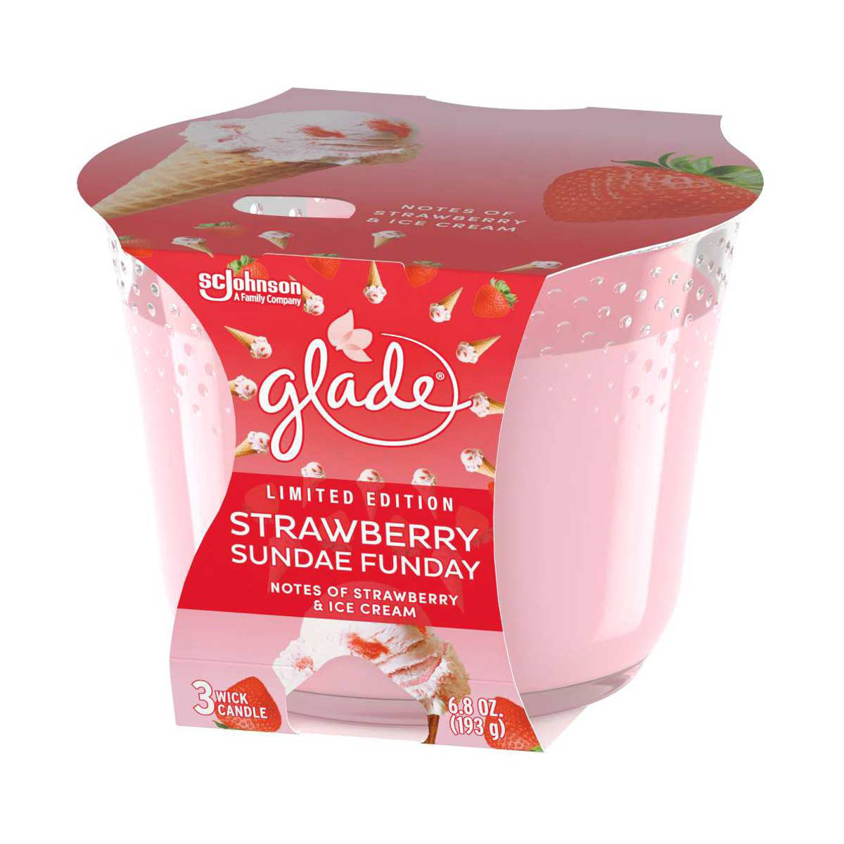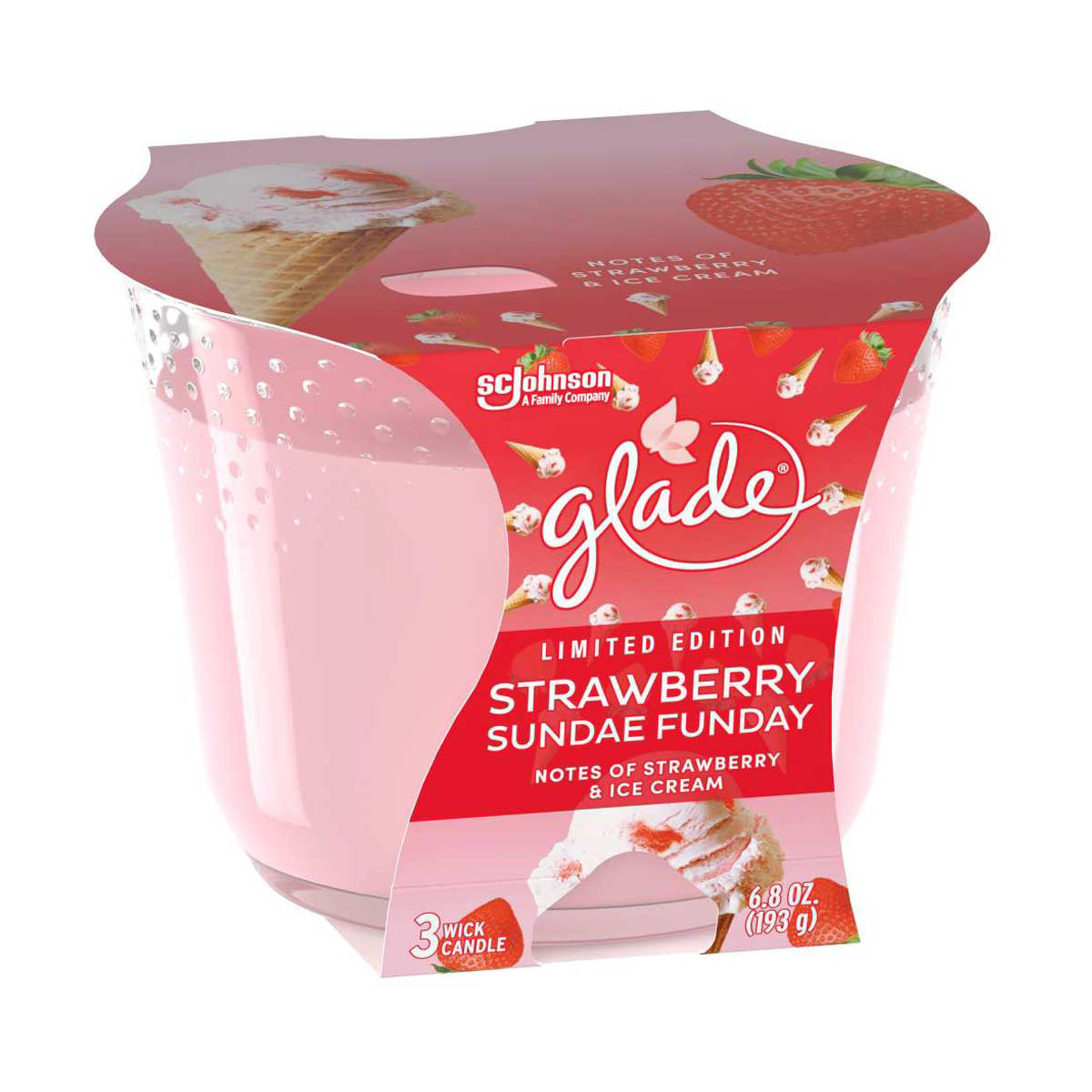 - Brighten up the mood with Strawberry Sundae Funday Glade Limited Edition candles, featuring a fragrance with the warm and fruity notes of strawberries, cream and baked waffle cone