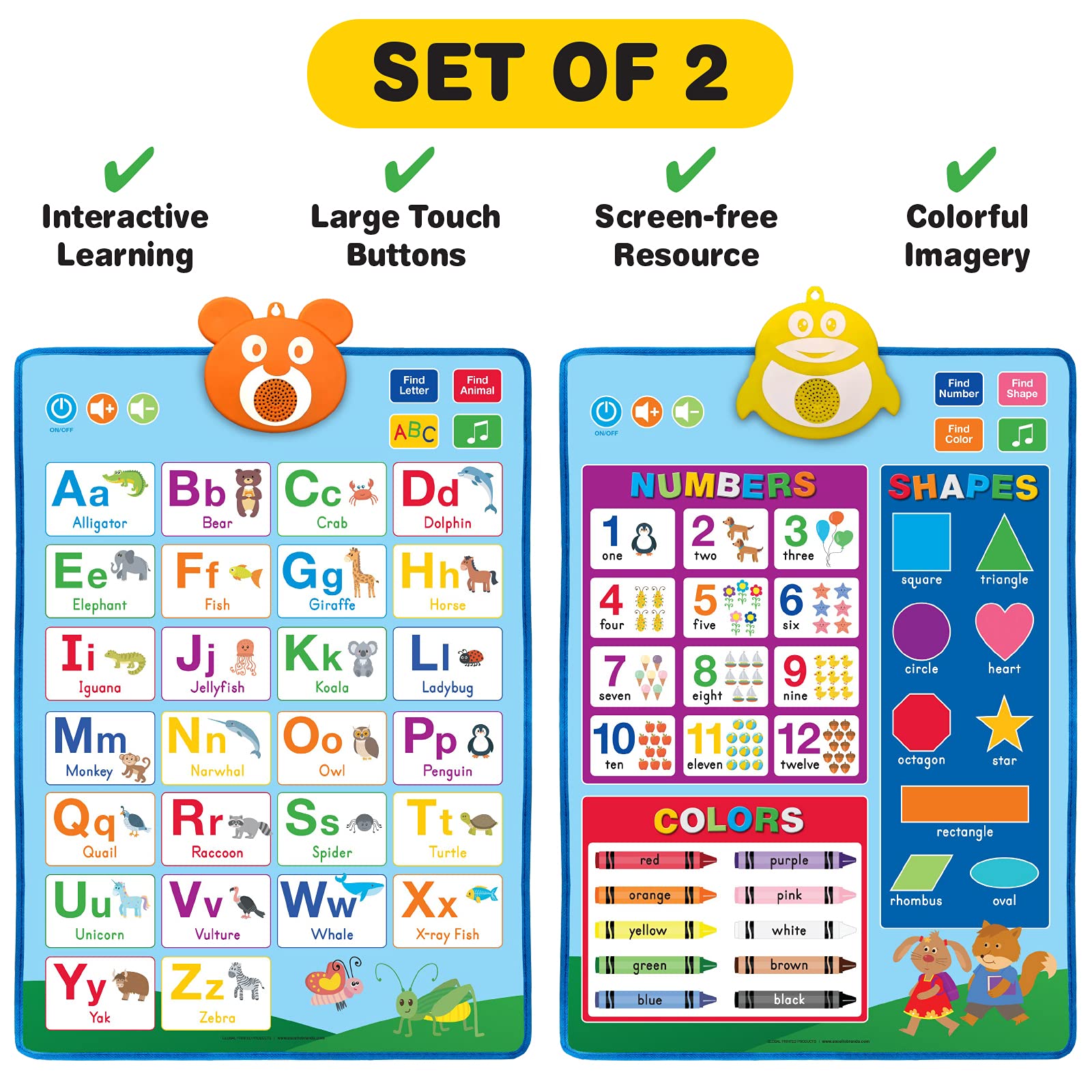 Details: Global Printed Products Electronic Interactive Educational Wall Chart Posters for Kids, Toddlers - Learn ABCs, Colors, Shapes, Numbers, Music (Pack of 2)