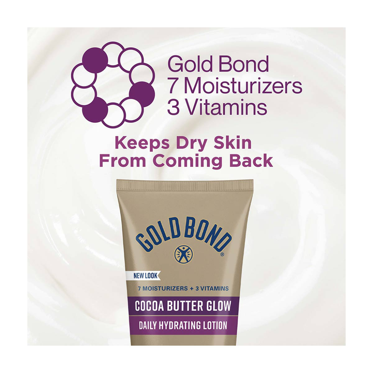 - Contains: One (1) 5.5-ounce tube of Gold Bond Cocoa Butter Glow Daily Hydrating Lotion for dry skin