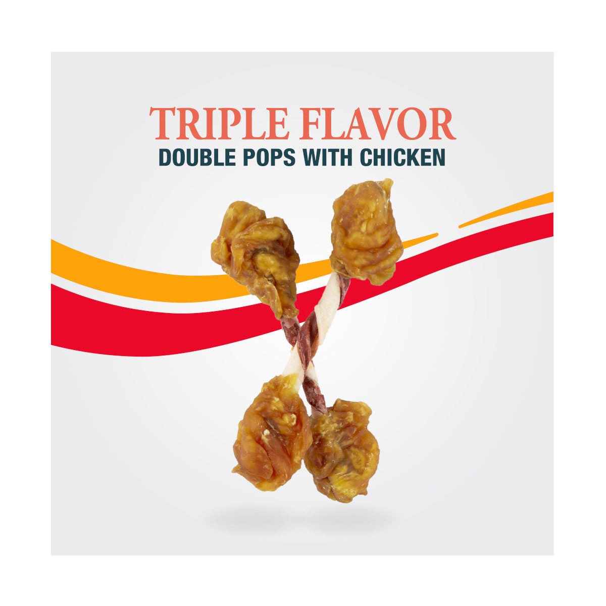 - LONG-LASTING: Good ‘n’ Fun Triple Flavor Double Pops with Chicken are made with long-lasting beef hide for a truly delightful, long-lasting treat your dog will love