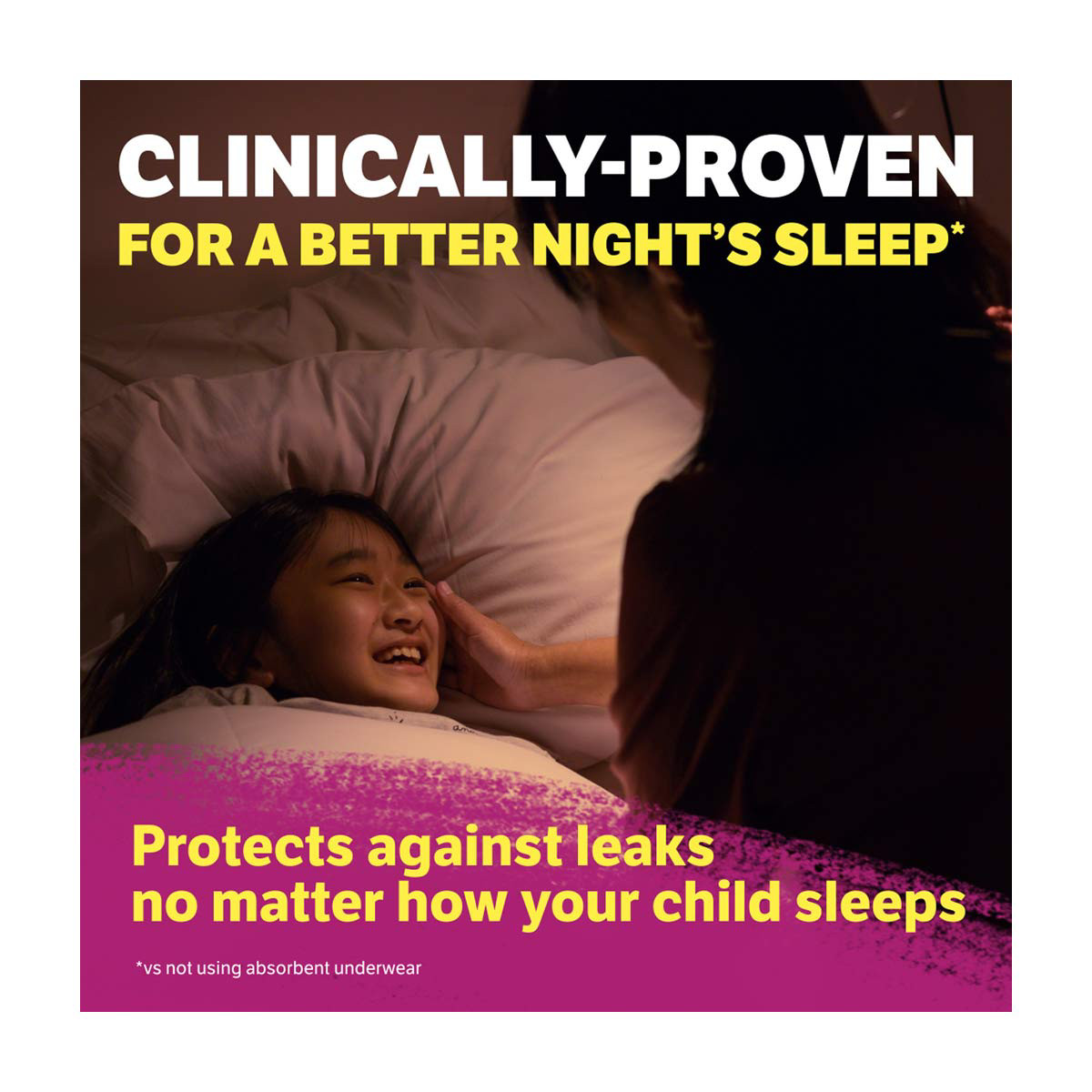 - Each overnight underwear features Quicksorb Protection provides up to 100% leak-free nights no matter how your child sleeps