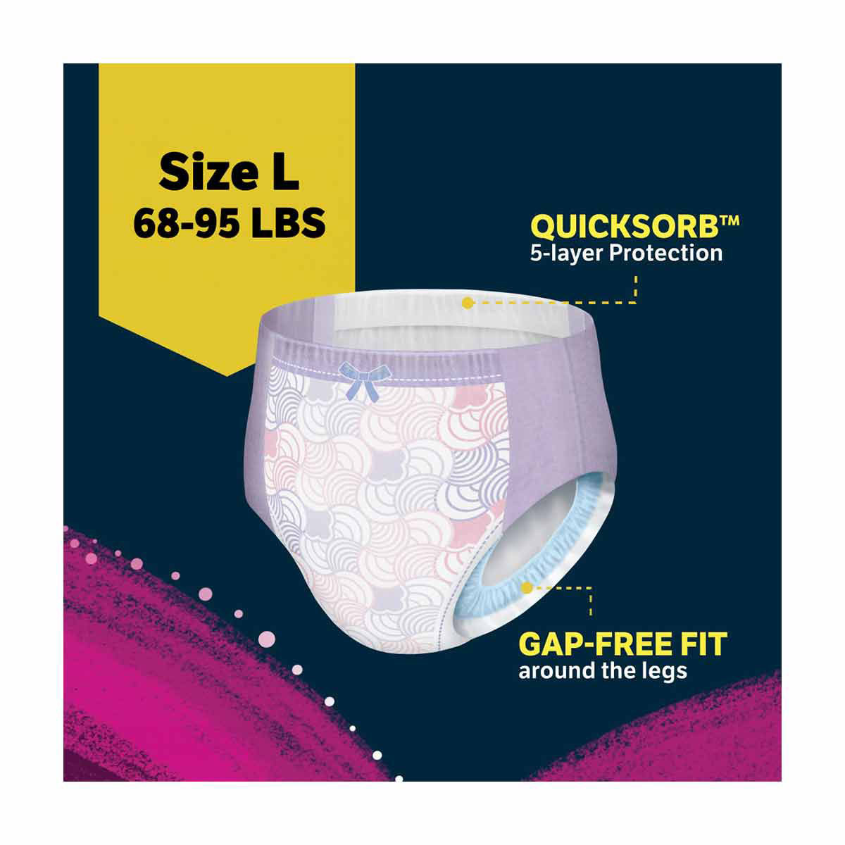 - Goodnites Girls' Nighttime Bedwetting Underwear: 11 overnight underwear for girls, size large; fits children 68-95 lbs