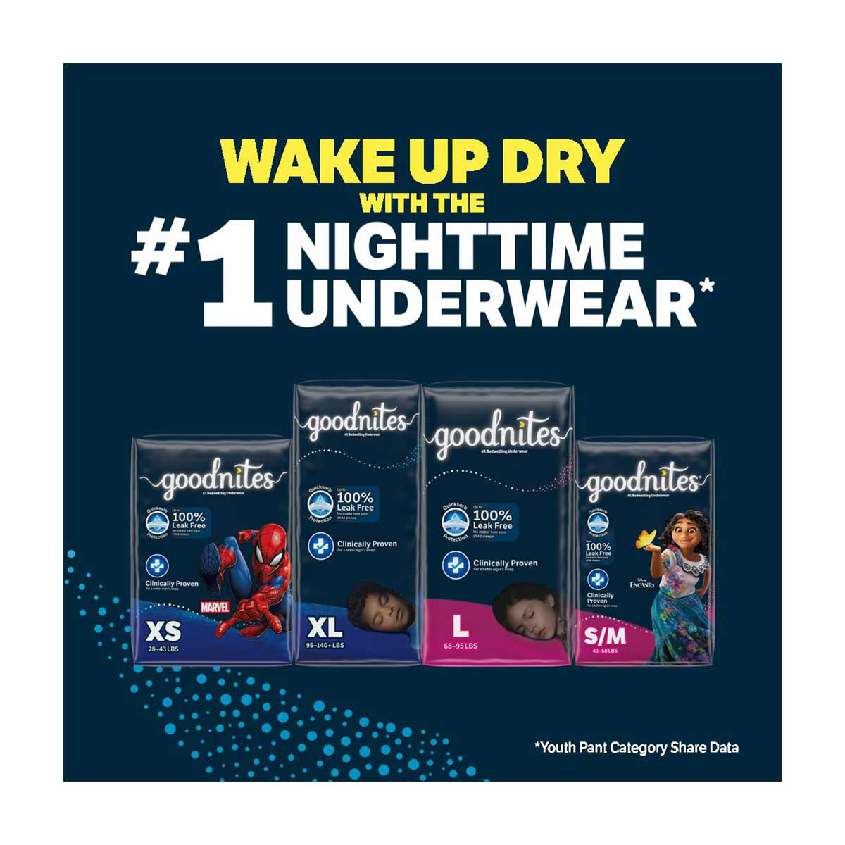 - Each overnight underwear features Quicksorb Protection provides up to 100% leak-free nights no matter how your child sleeps