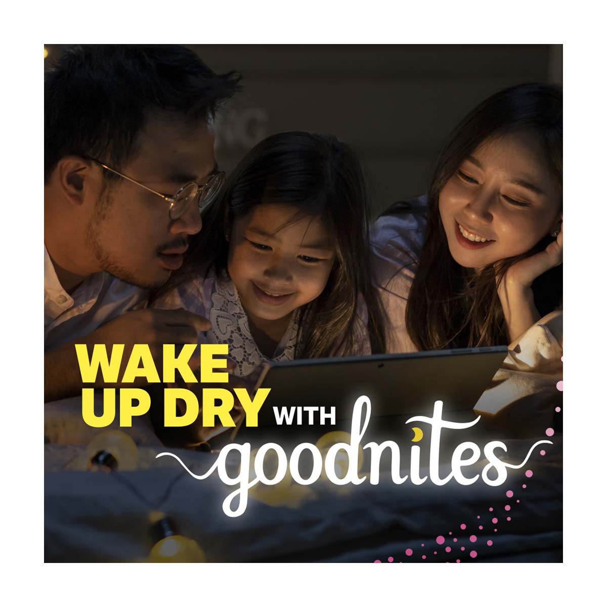 - Goodnites Bedwetting Underwear for Girls’ holds three water bottles** (**Across all offered sizes, among national brands. Three 8 oz. water bottles, 24 oz. total)