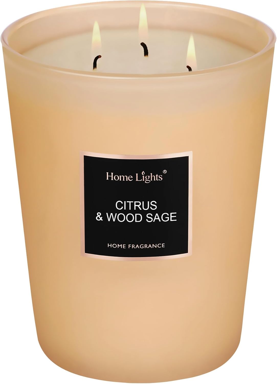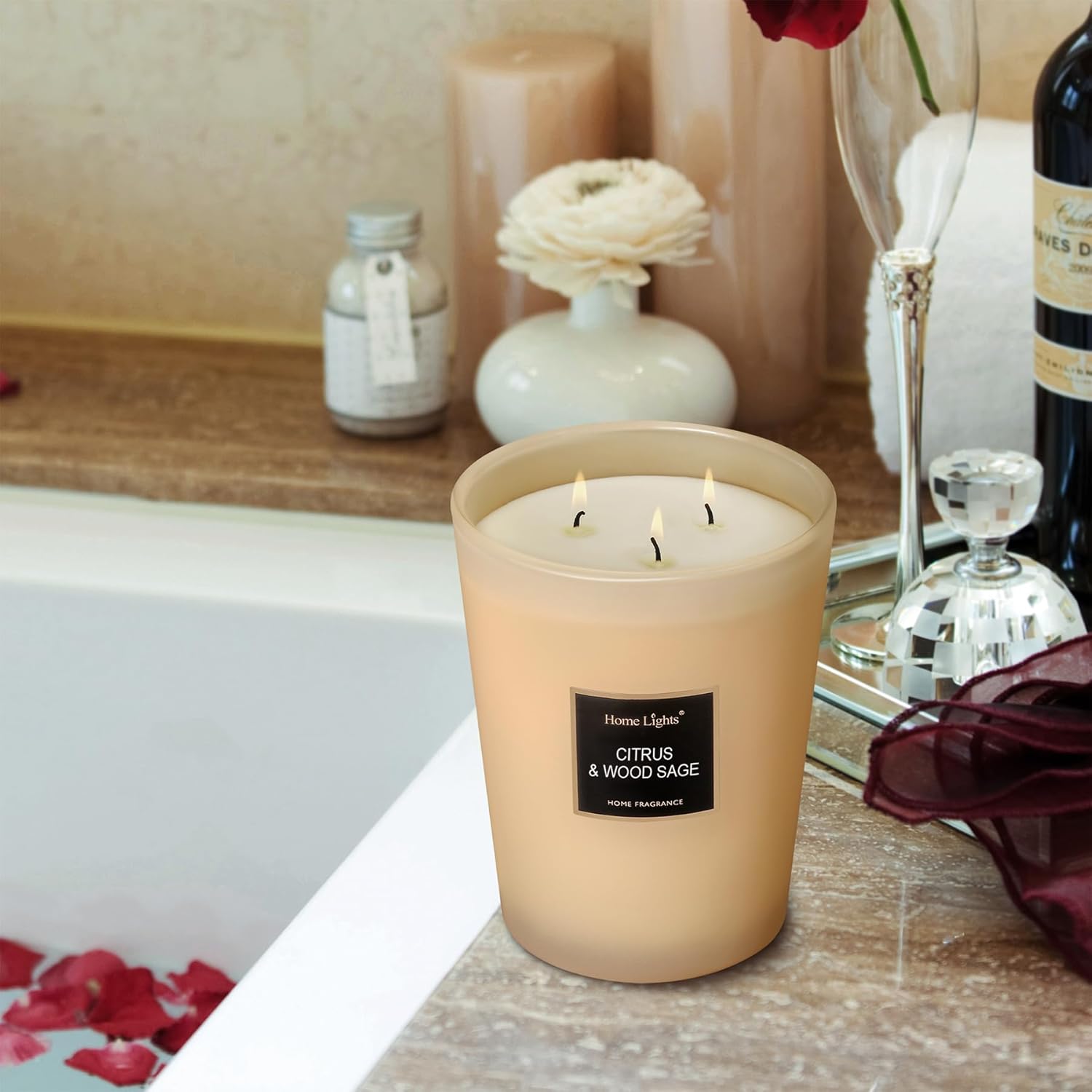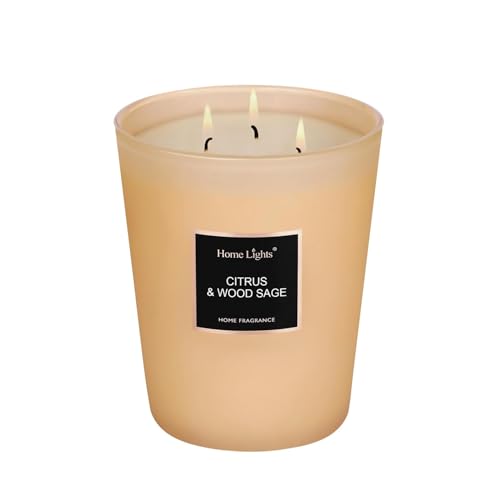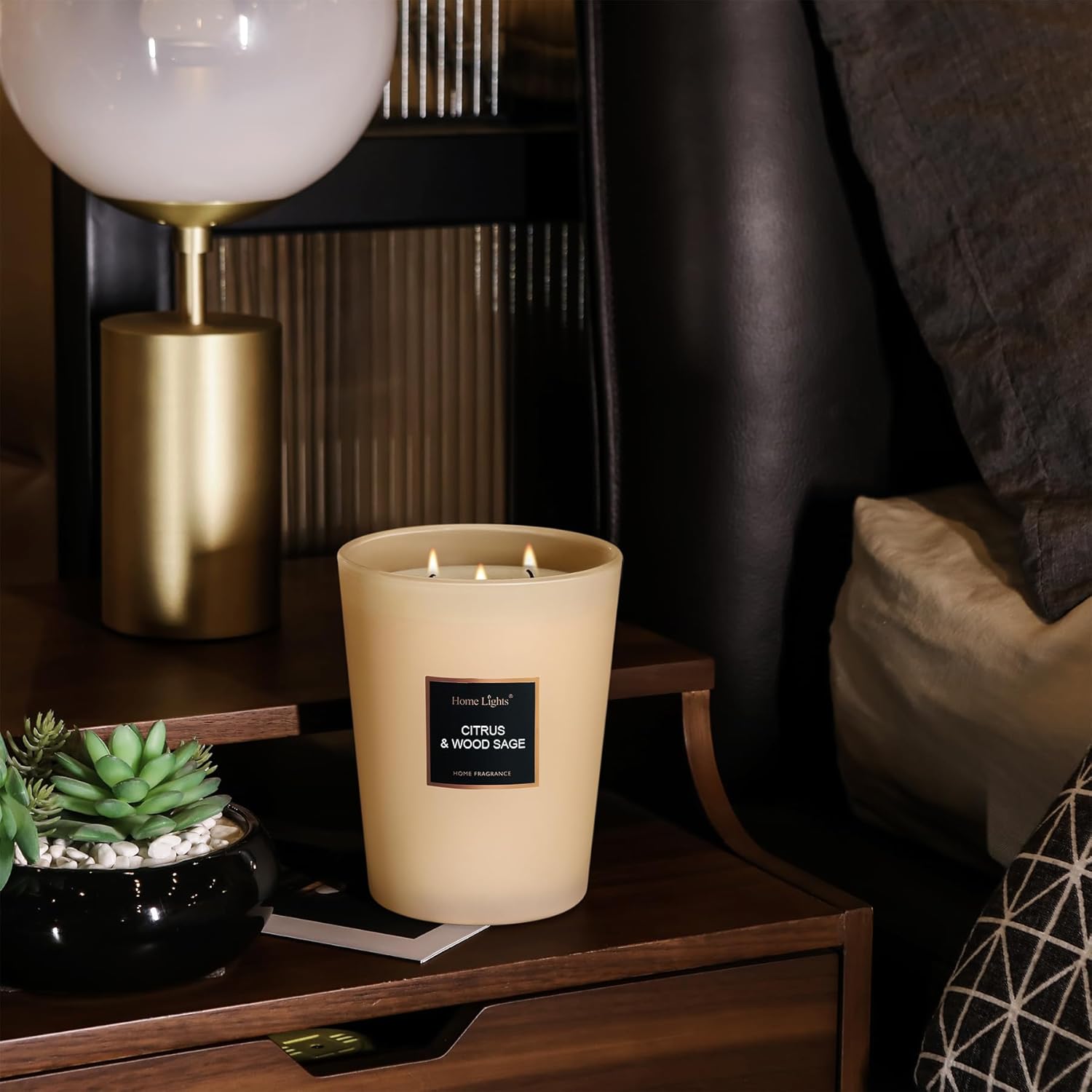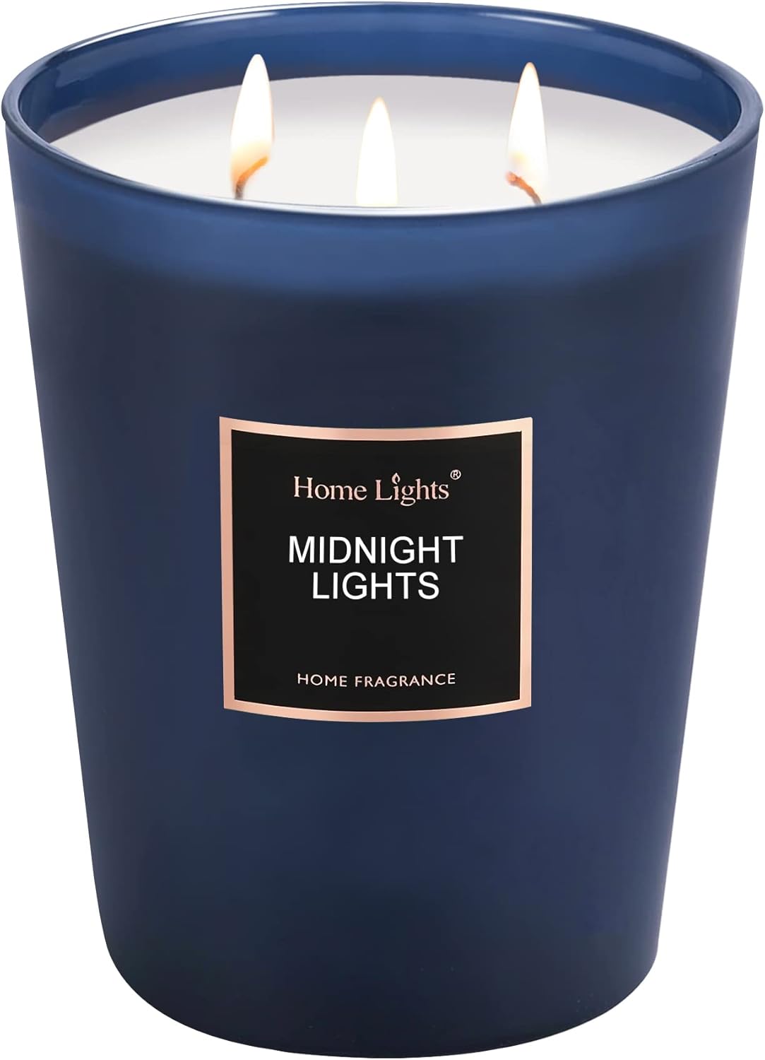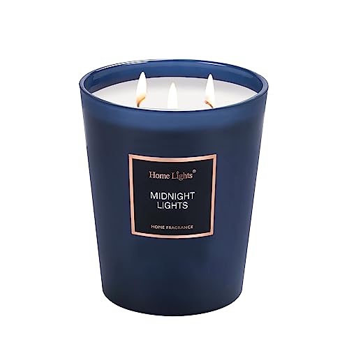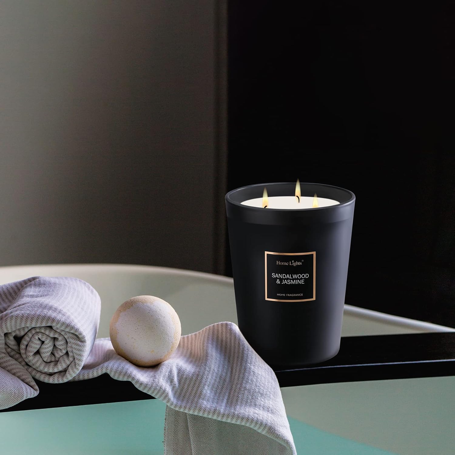 • HomeLights Scented Candles | Large Jar 33.3 Oz Natural Soy Candle | 130 hrs with 3 Cotton Wicks, Sandalwood Jasmine Home Fragrance Candles Gift