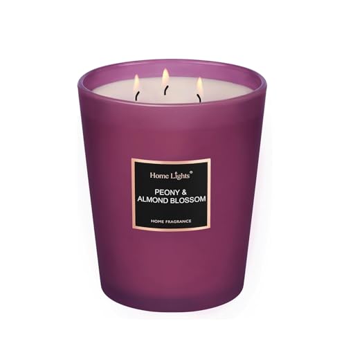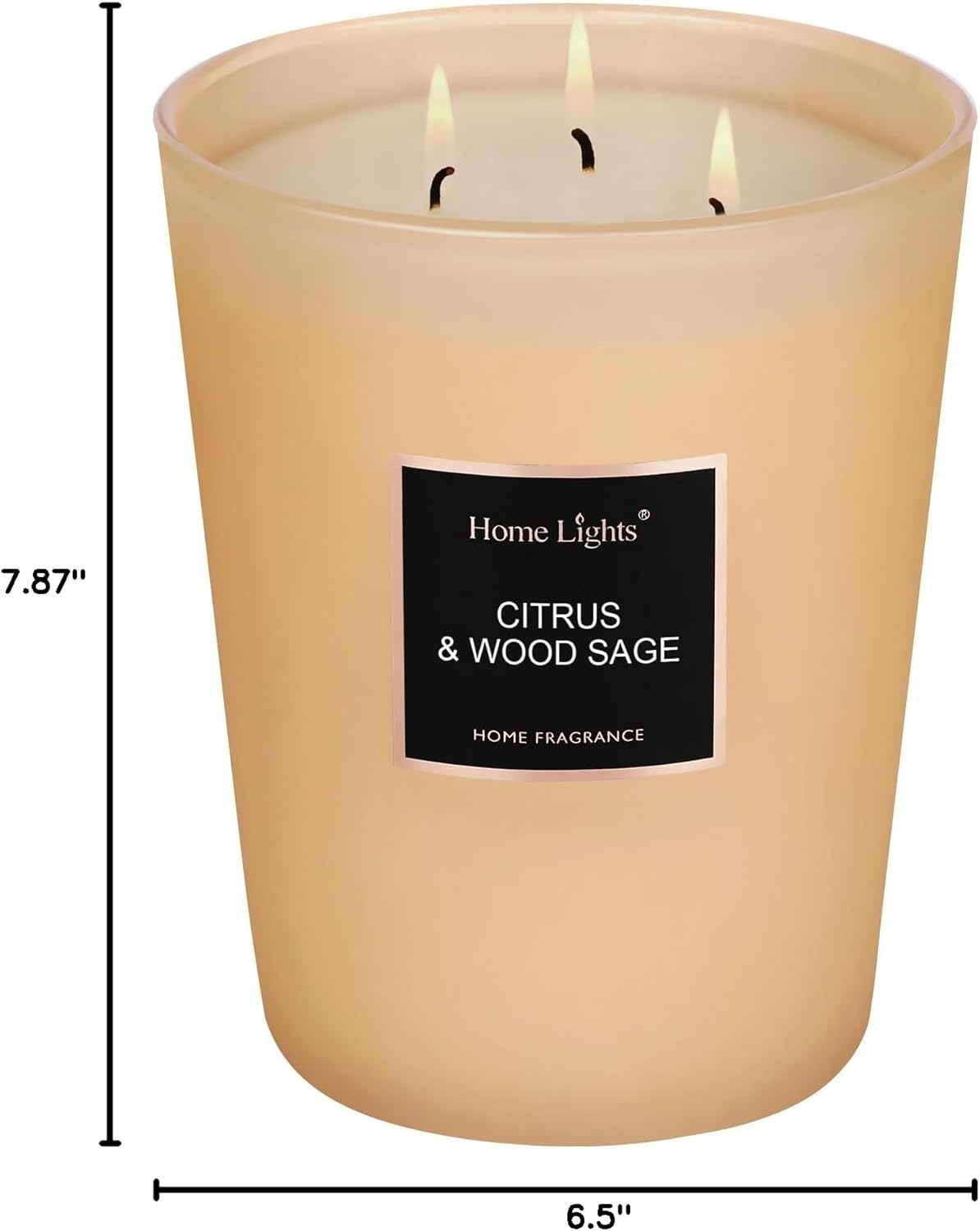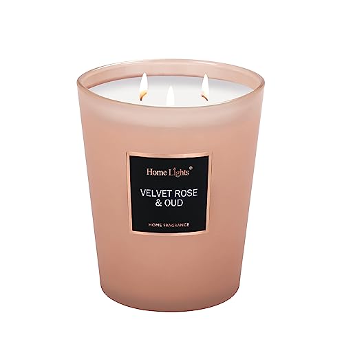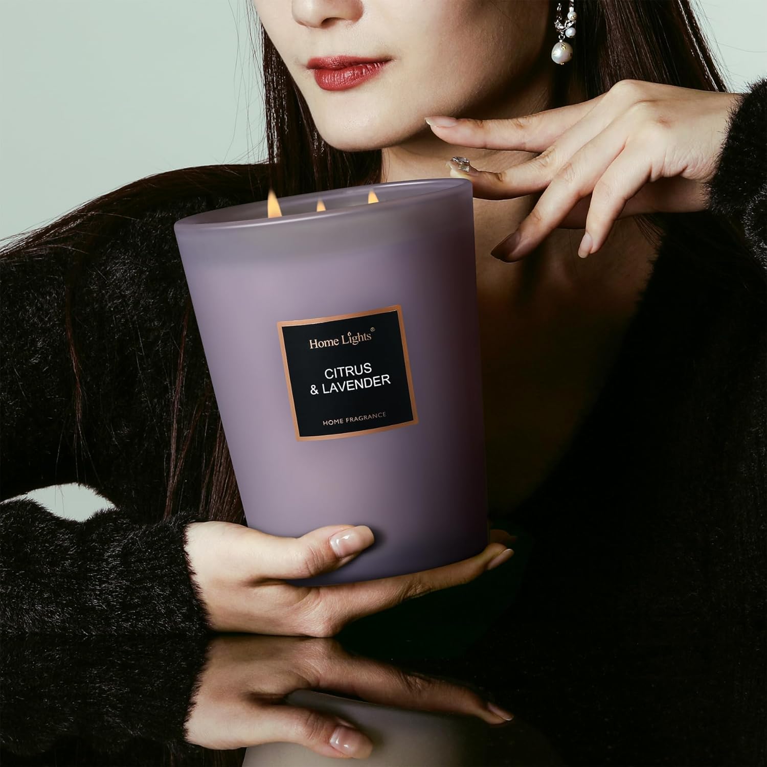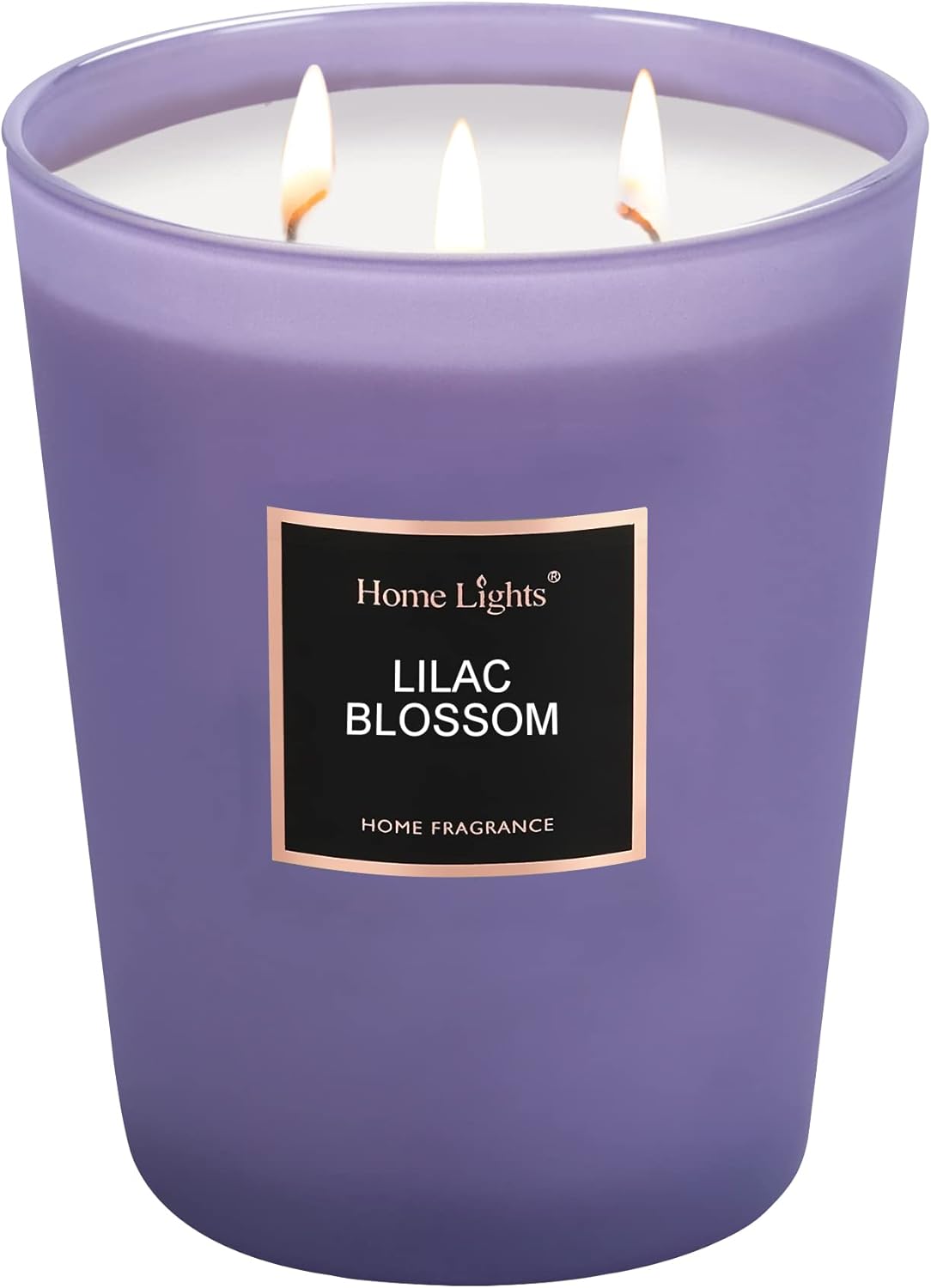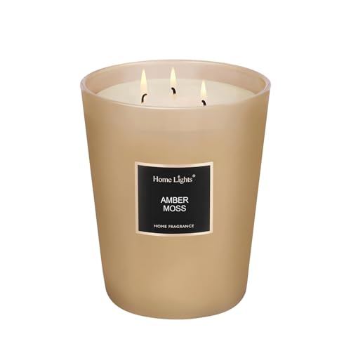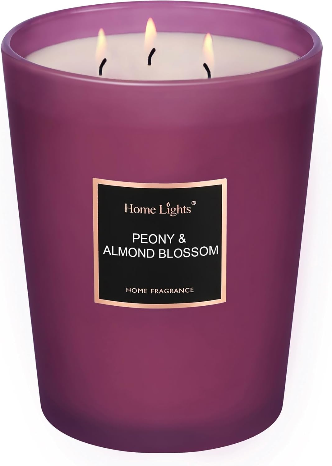 • HomeLights Scented Candles | Large Jar 33.3 Oz Natural Soy Candle | 130 hrs with 3 Cotton Wicks, Sandalwood Jasmine Home Fragrance Candles Gift