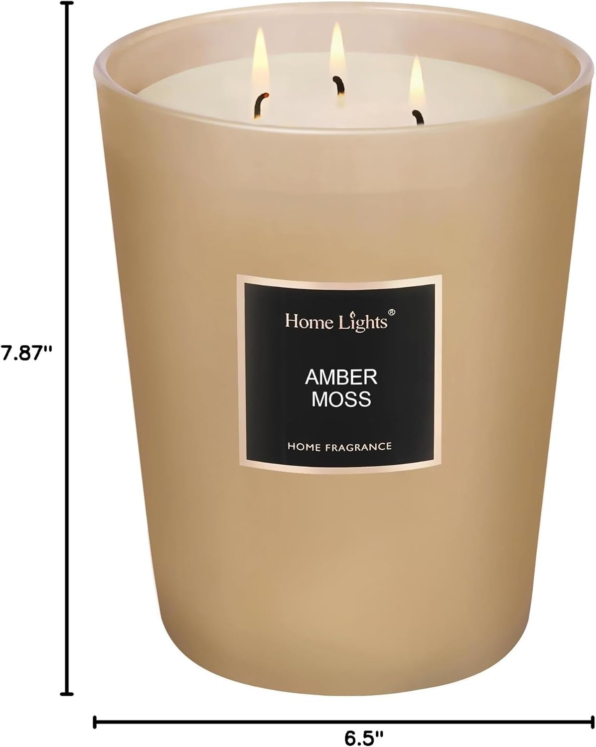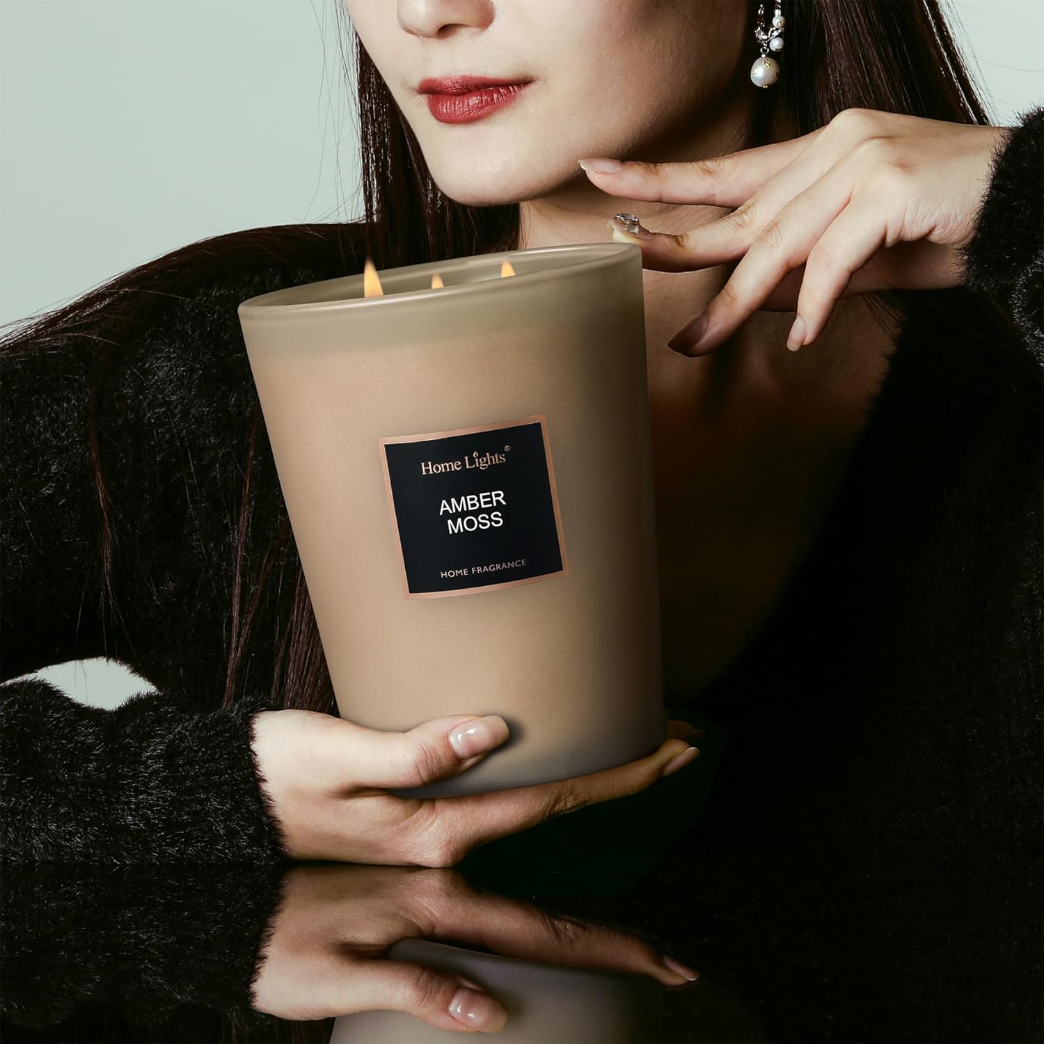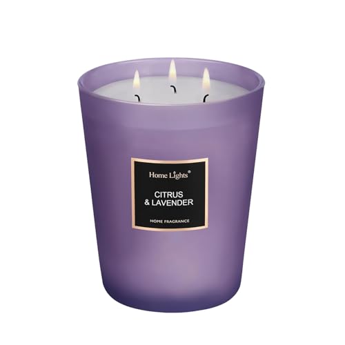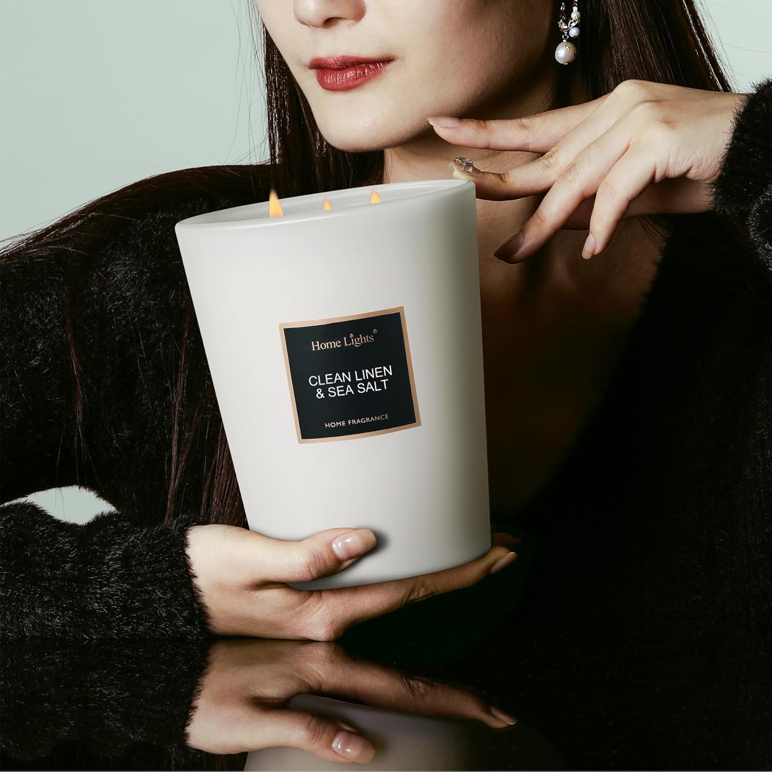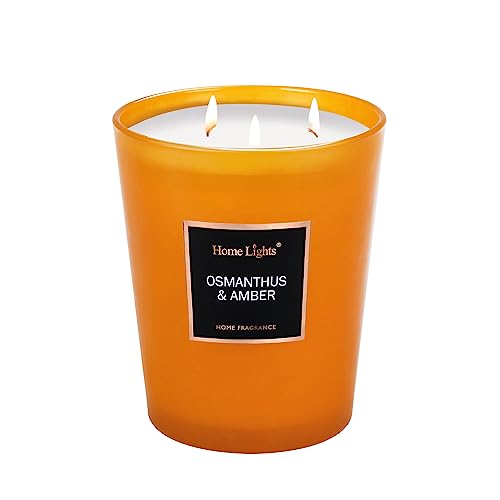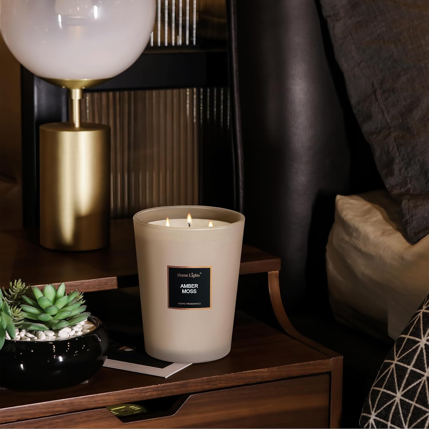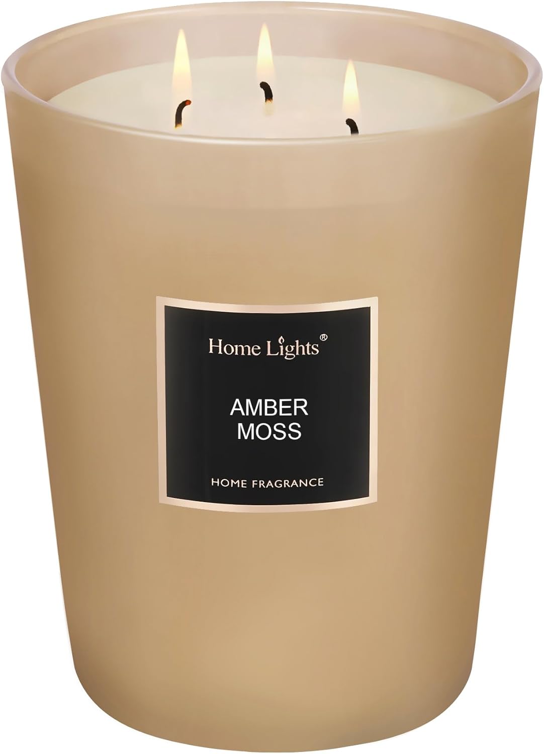 • HomeLights Scented Candles | Large Jar 33.3 Oz Natural Soy Candle | 130 hrs with 3 Cotton Wicks, Sandalwood Jasmine Home Fragrance Candles Gift