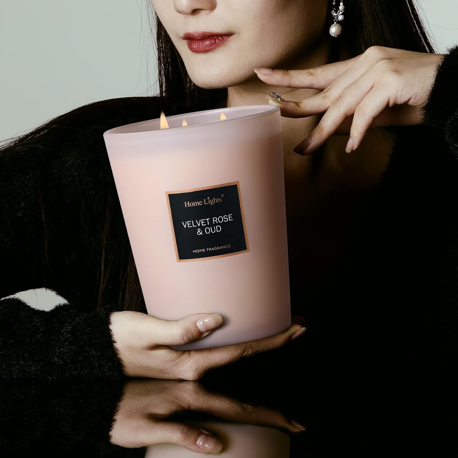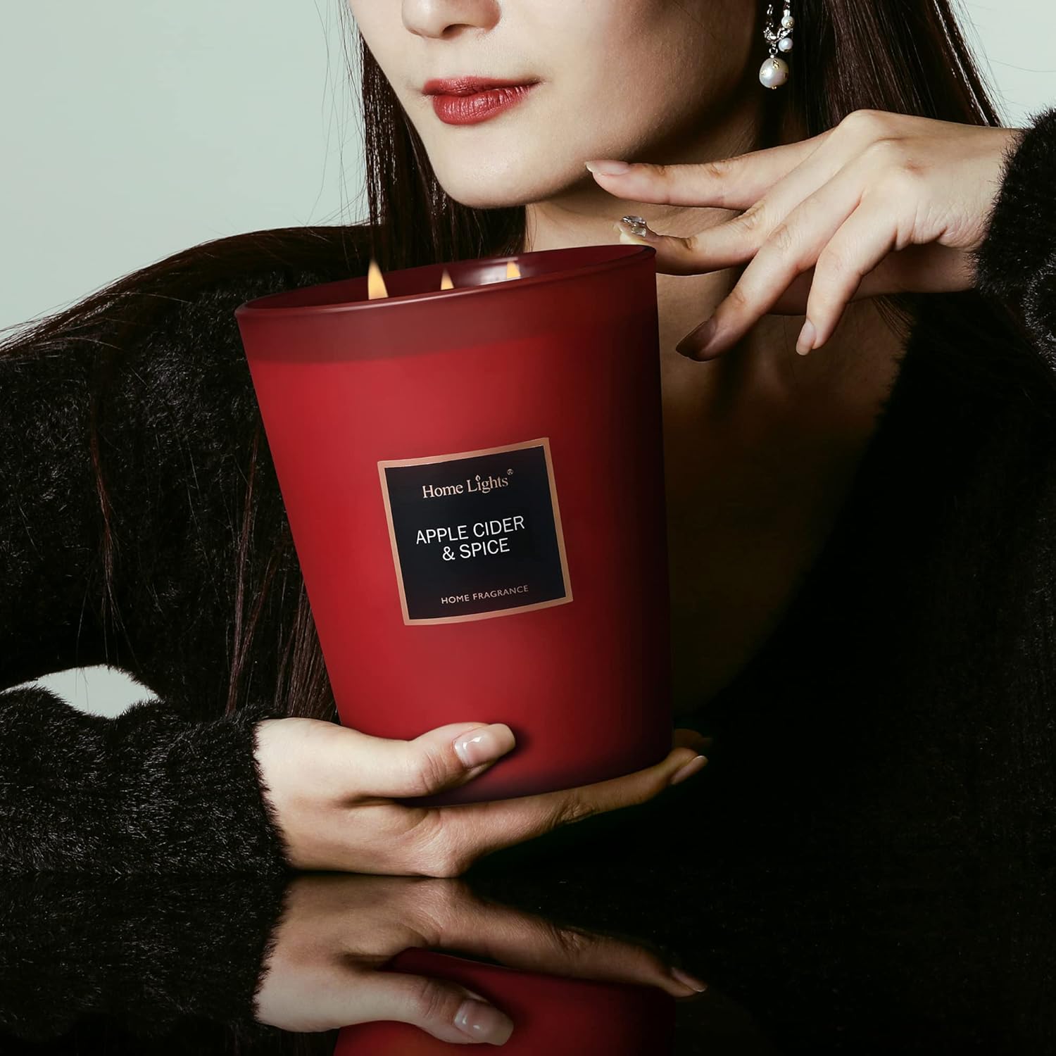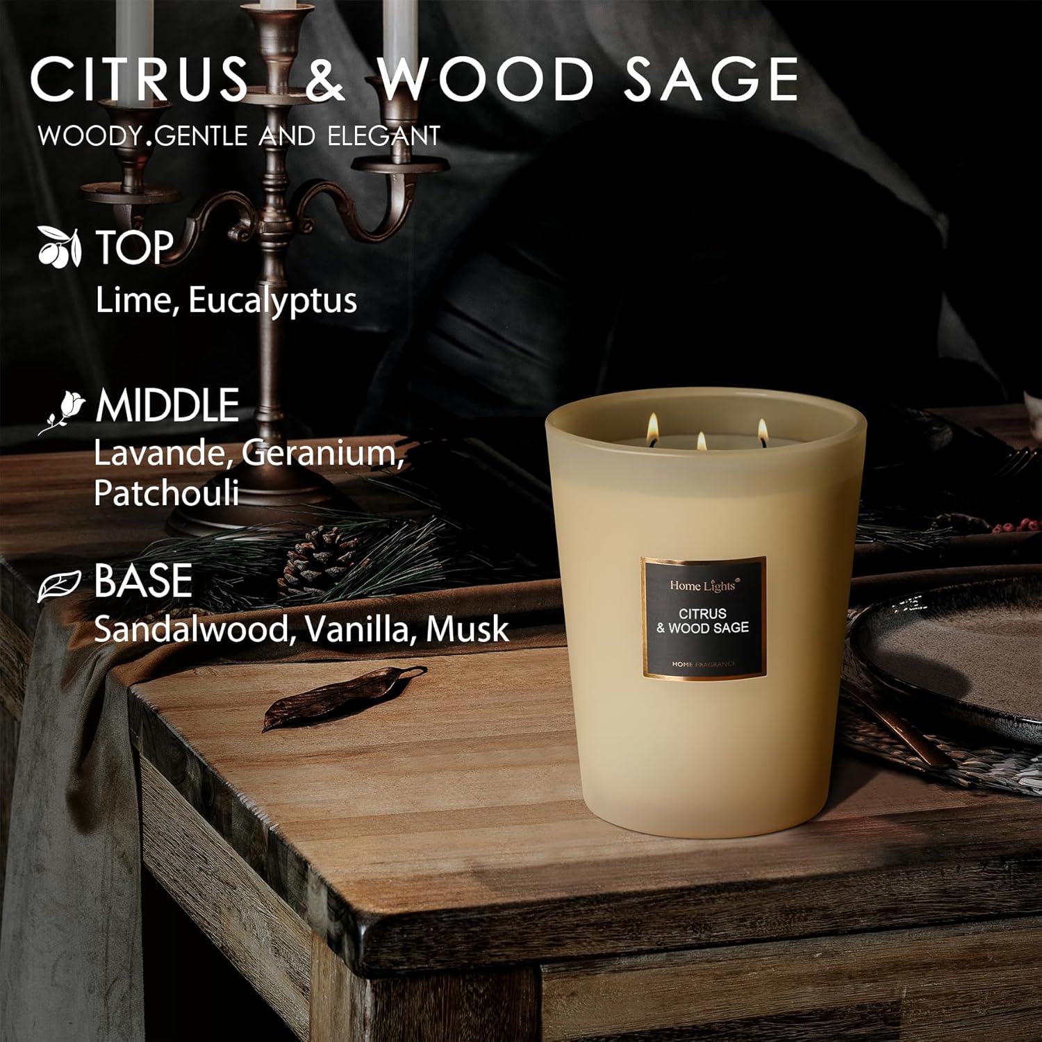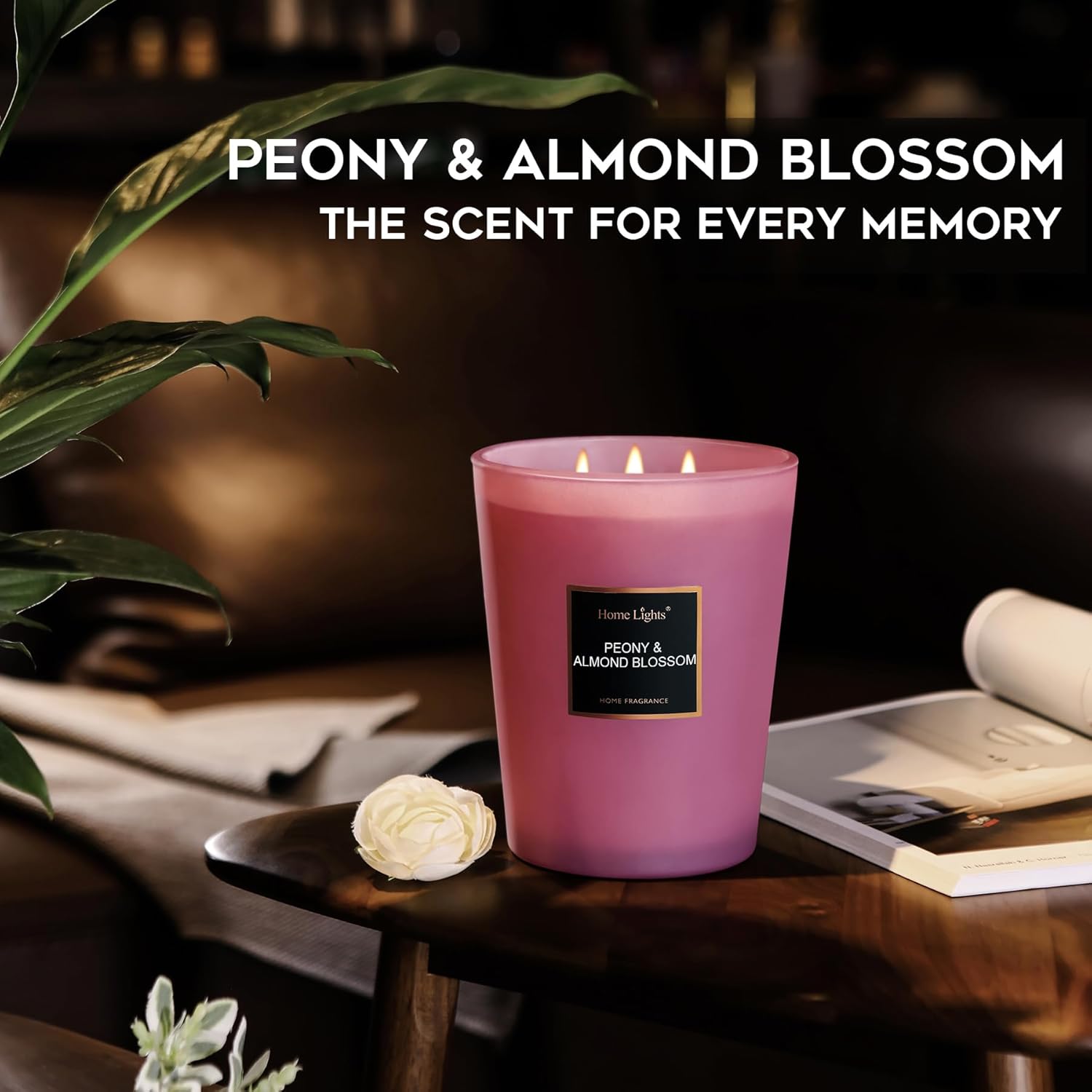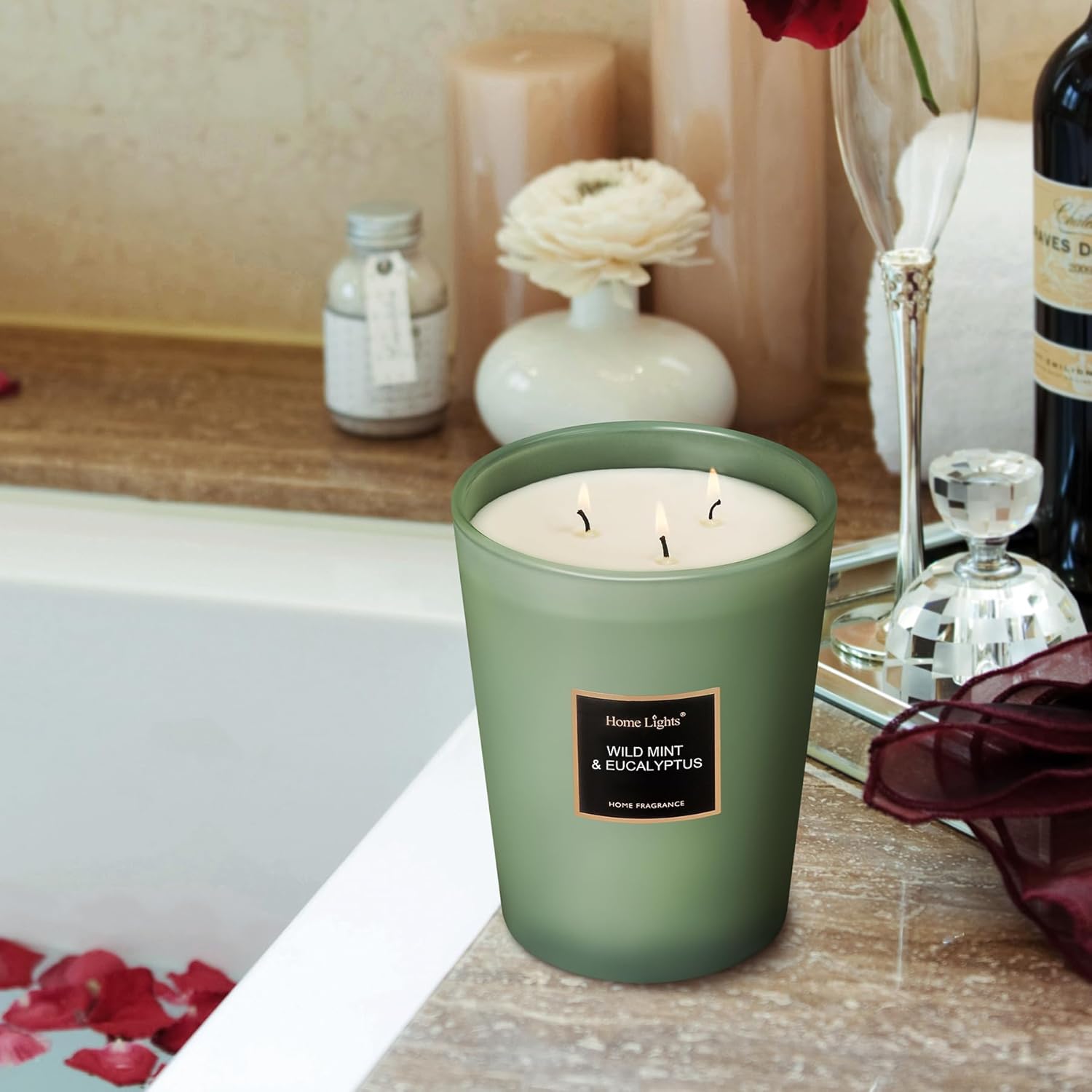 • HomeLights Scented Candles | Large Jar 33.3 Oz Natural Soy Candle | 130 hrs with 3 Cotton Wicks, Sandalwood Jasmine Home Fragrance Candles Gift