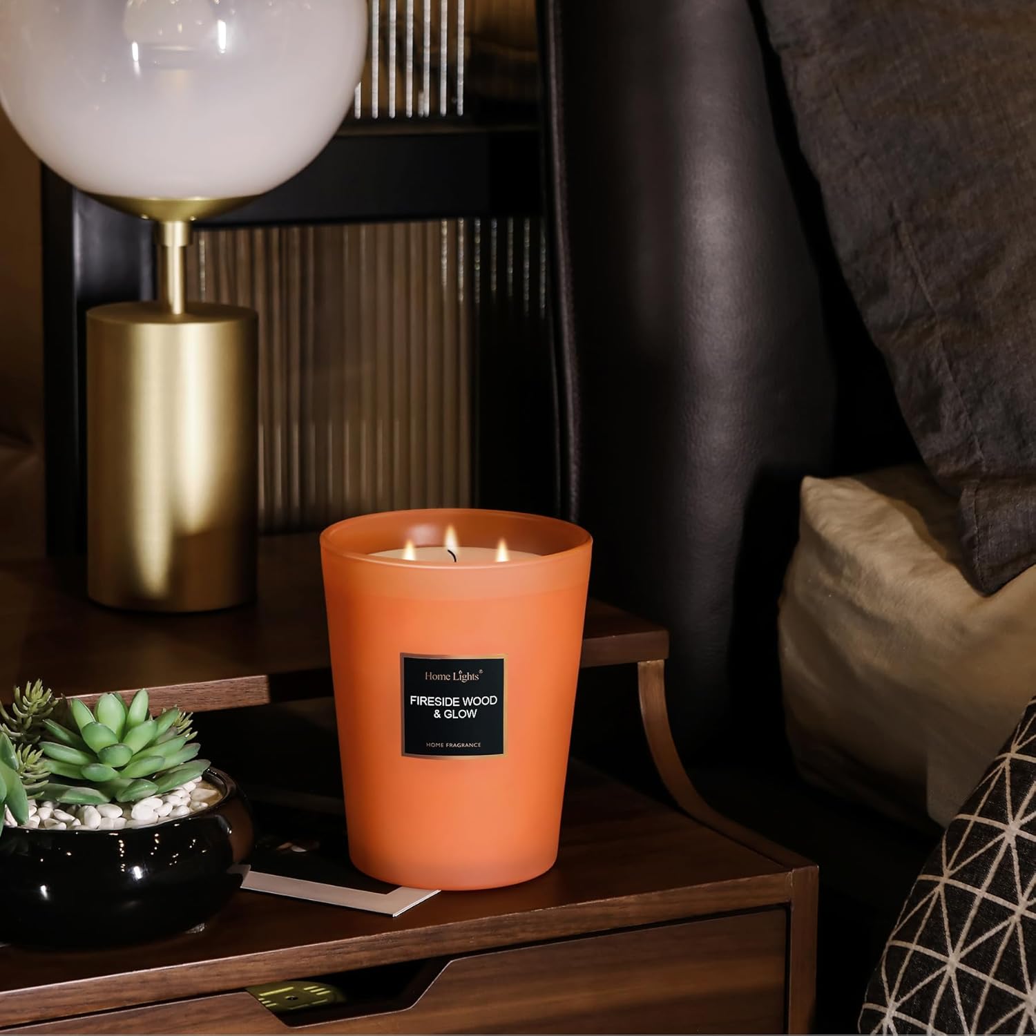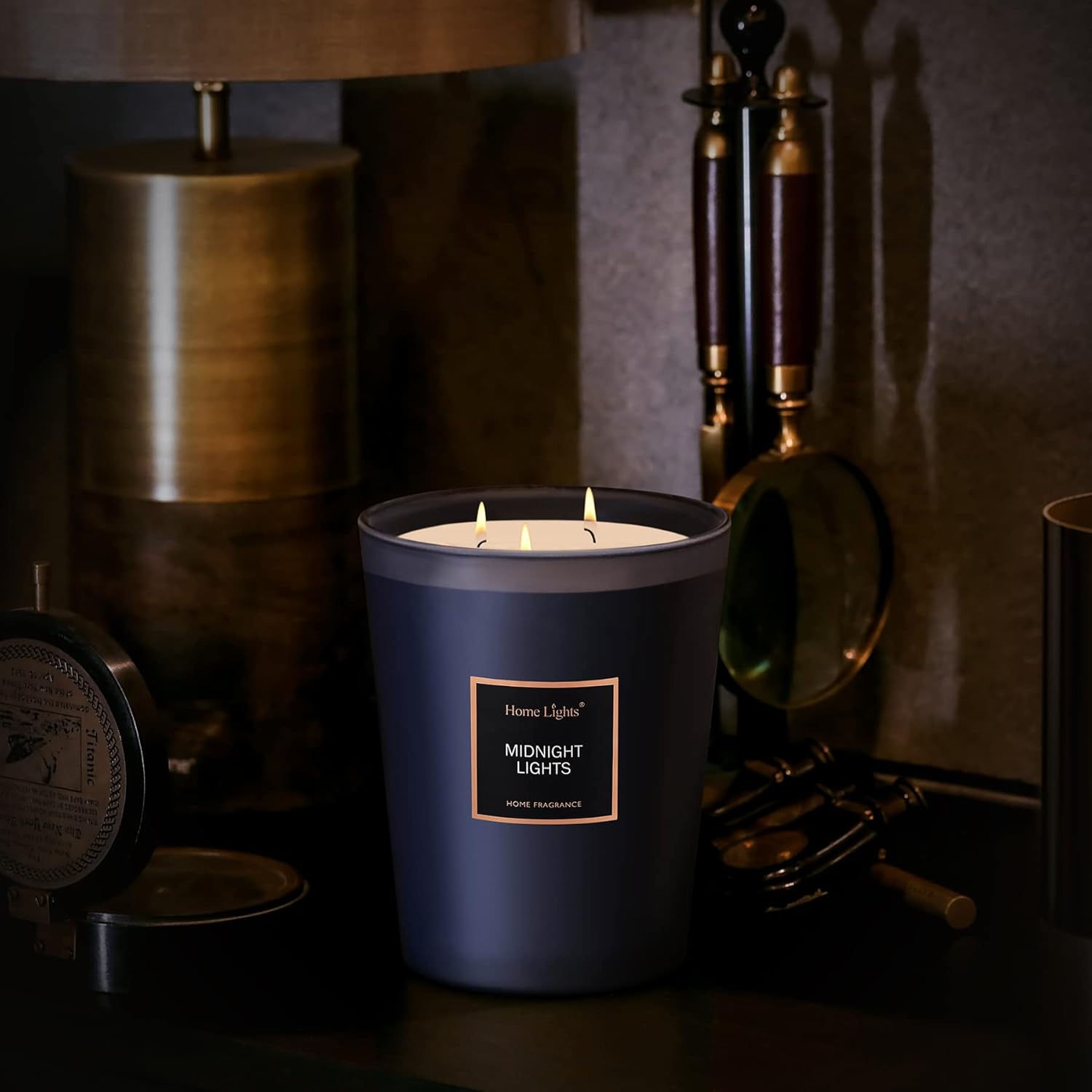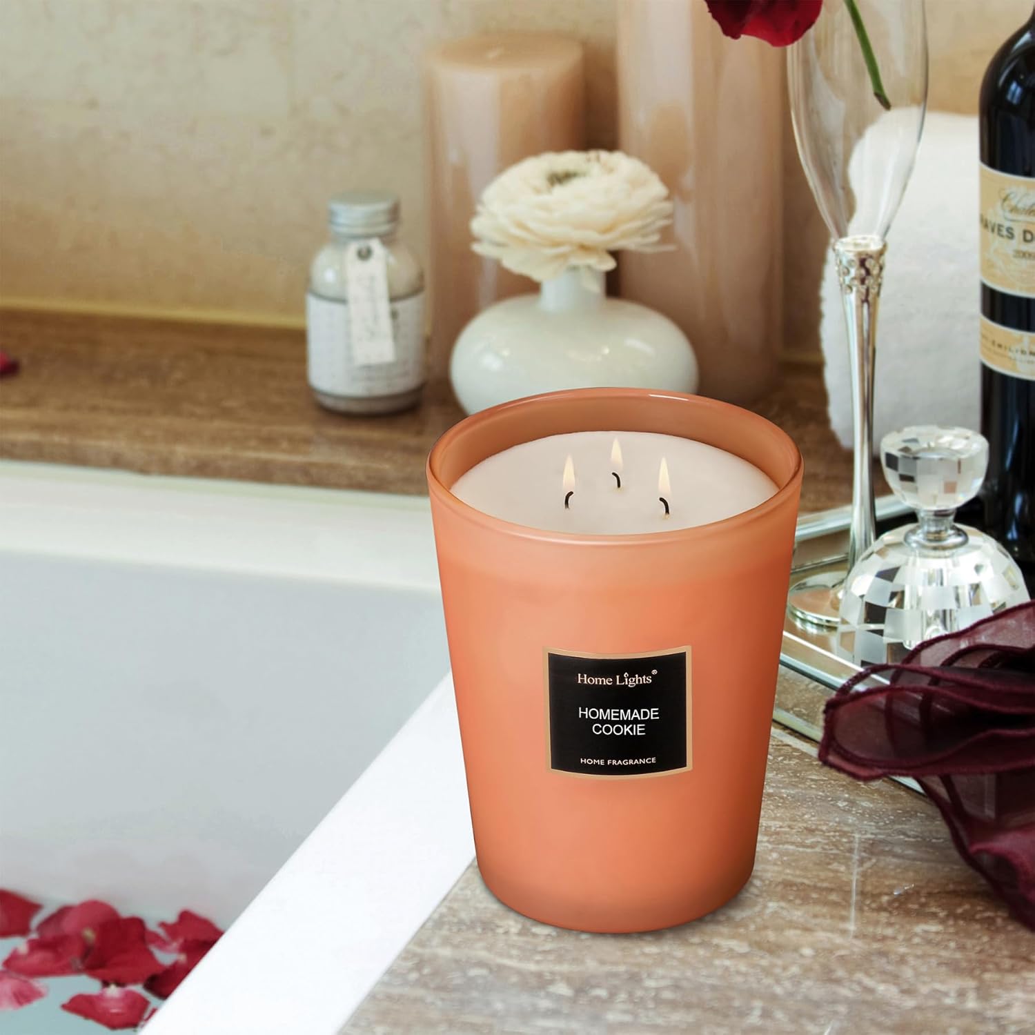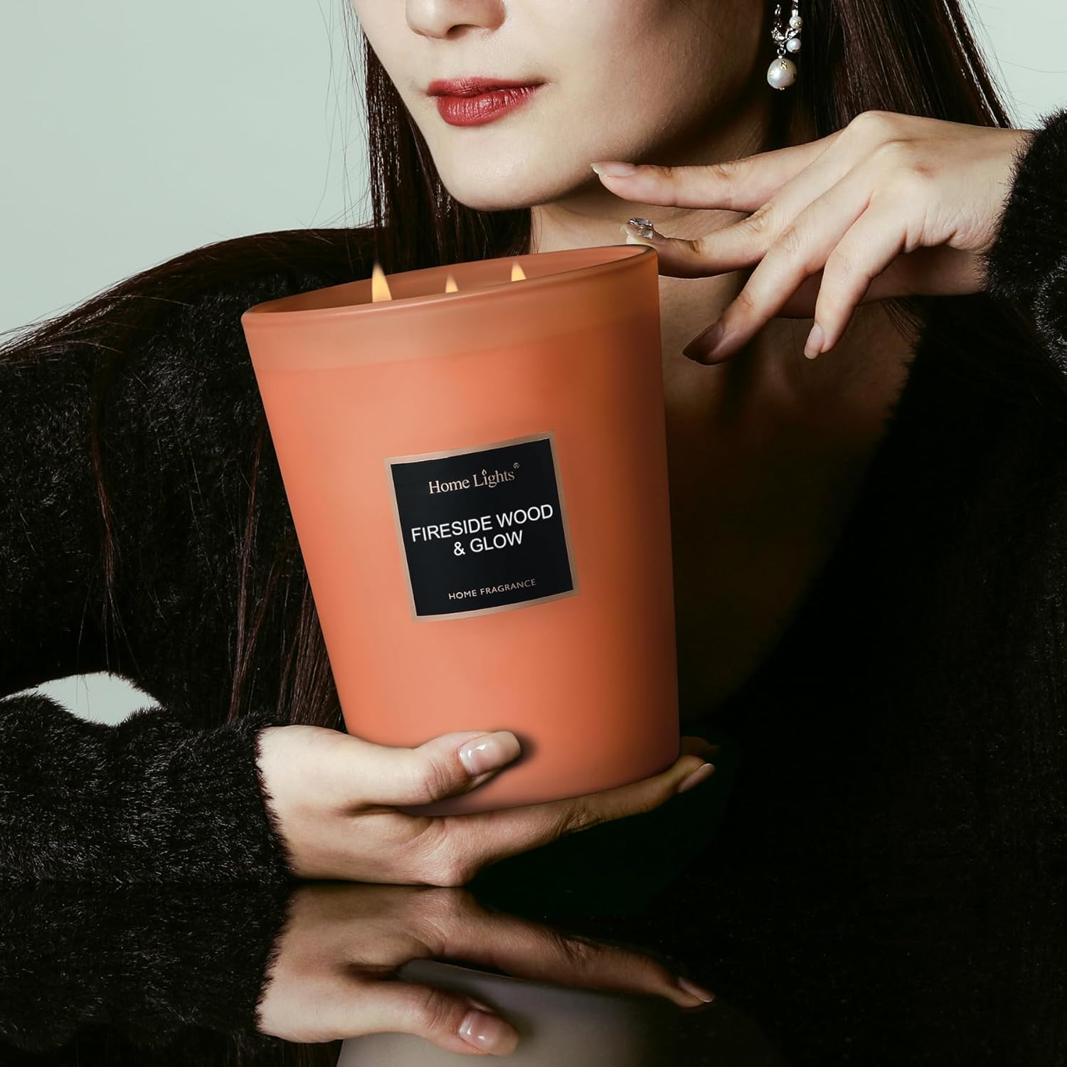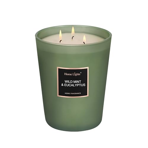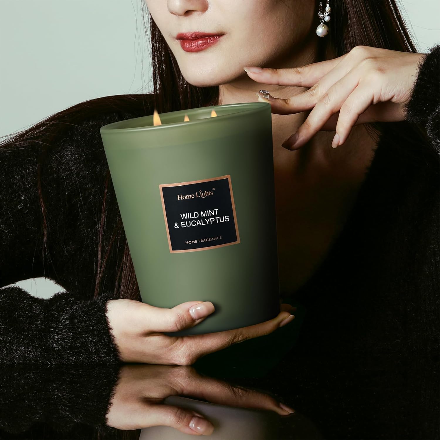 • HomeLights Scented Candles | Large Jar 33.3 Oz Natural Soy Candle | 130 hrs with 3 Cotton Wicks, Sandalwood Jasmine Home Fragrance Candles Gift