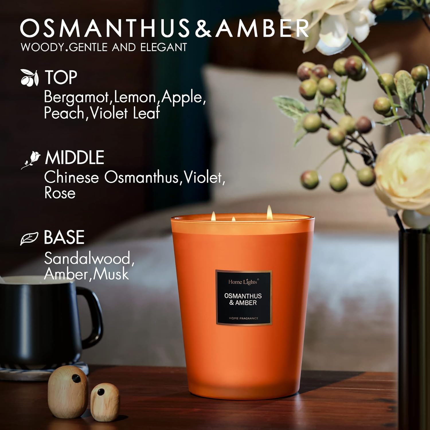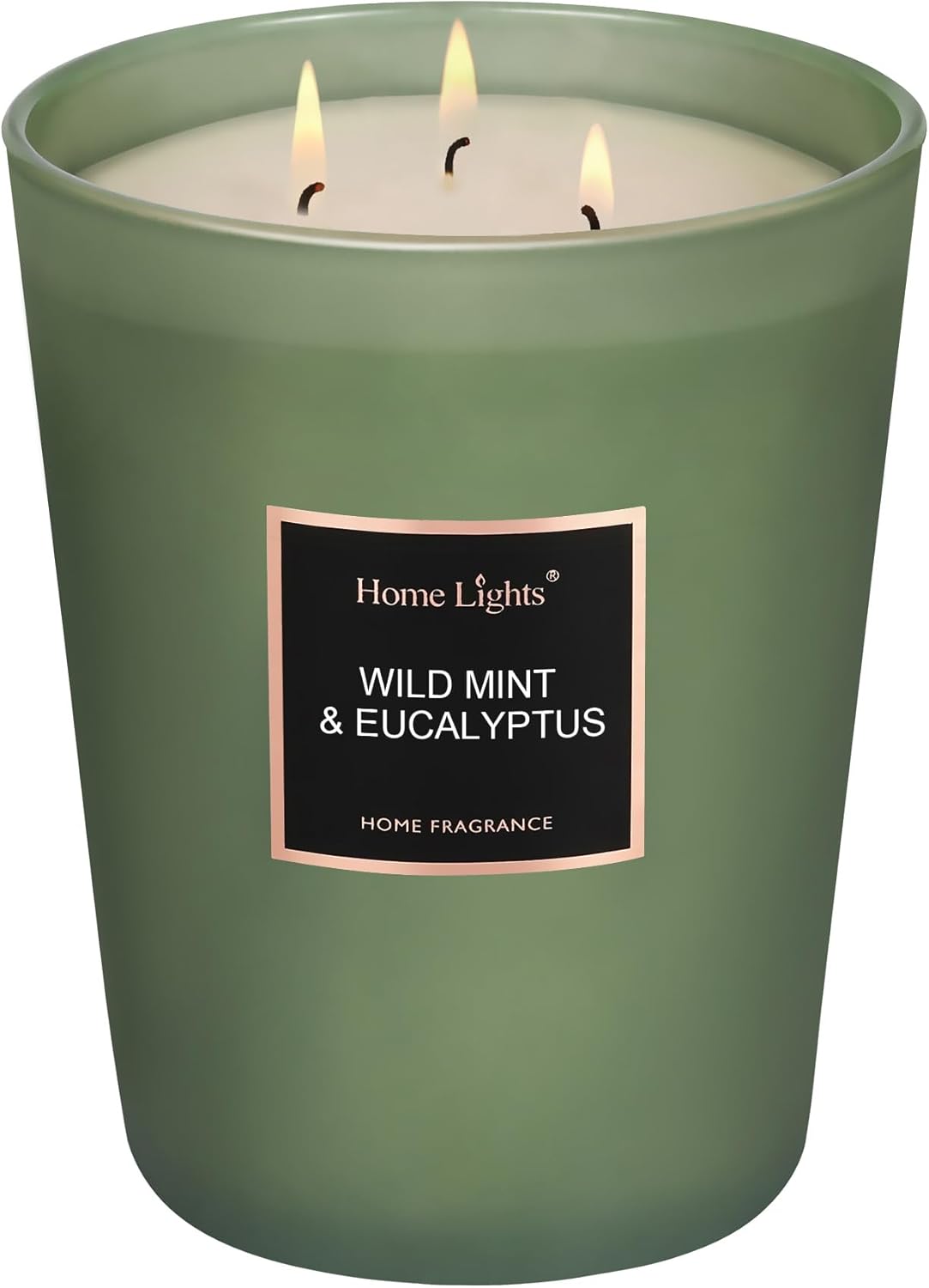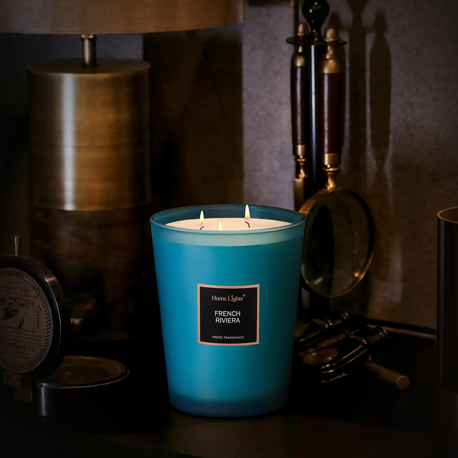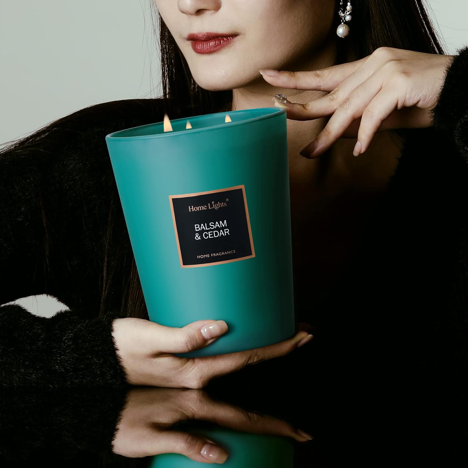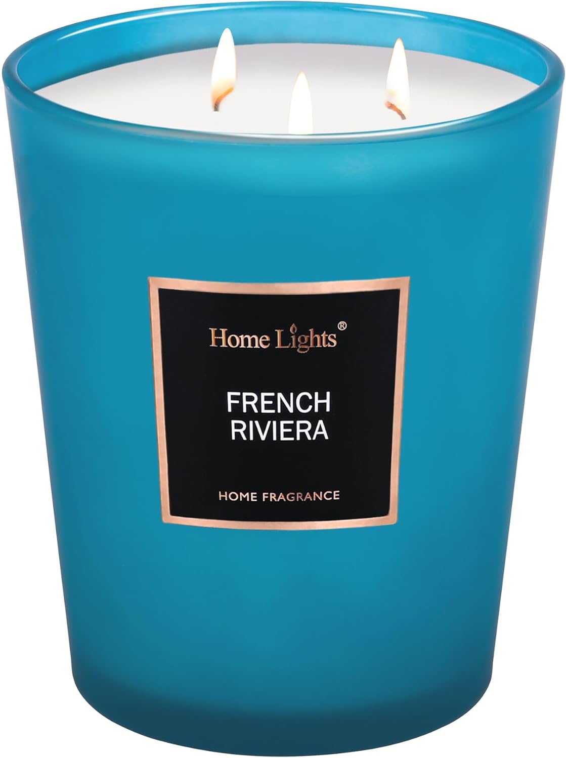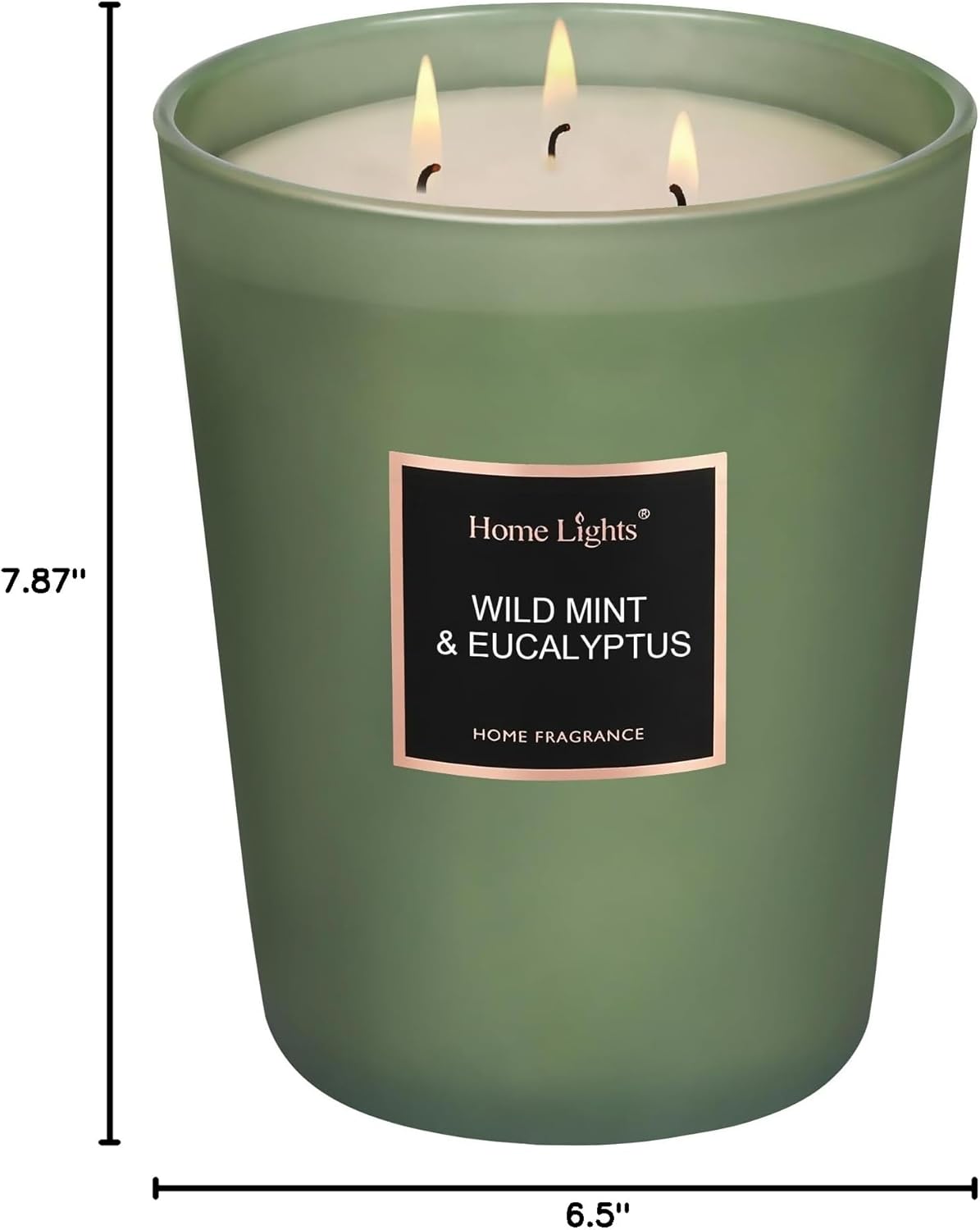 • HomeLights Scented Candles | Large Jar 33.3 Oz Natural Soy Candle | 130 hrs with 3 Cotton Wicks, Sandalwood Jasmine Home Fragrance Candles Gift