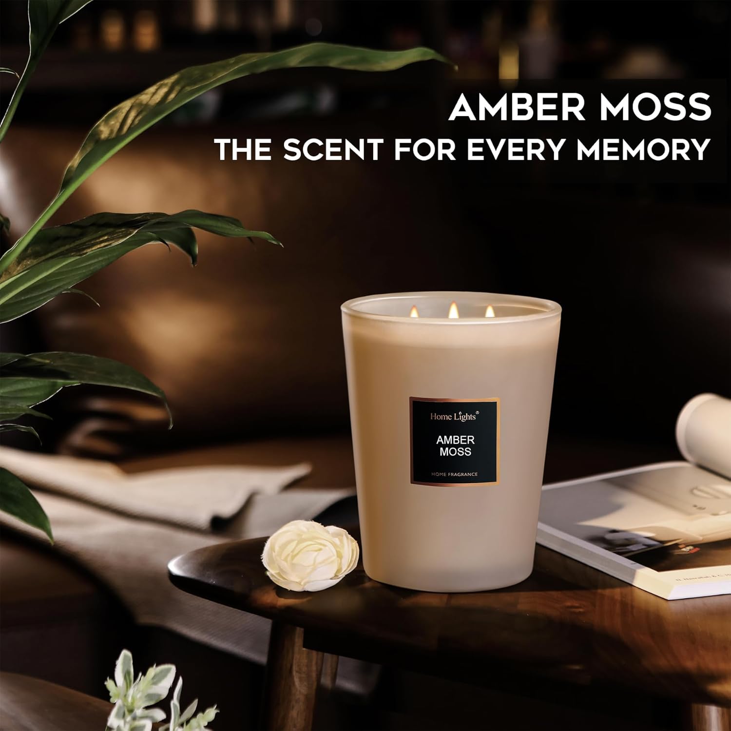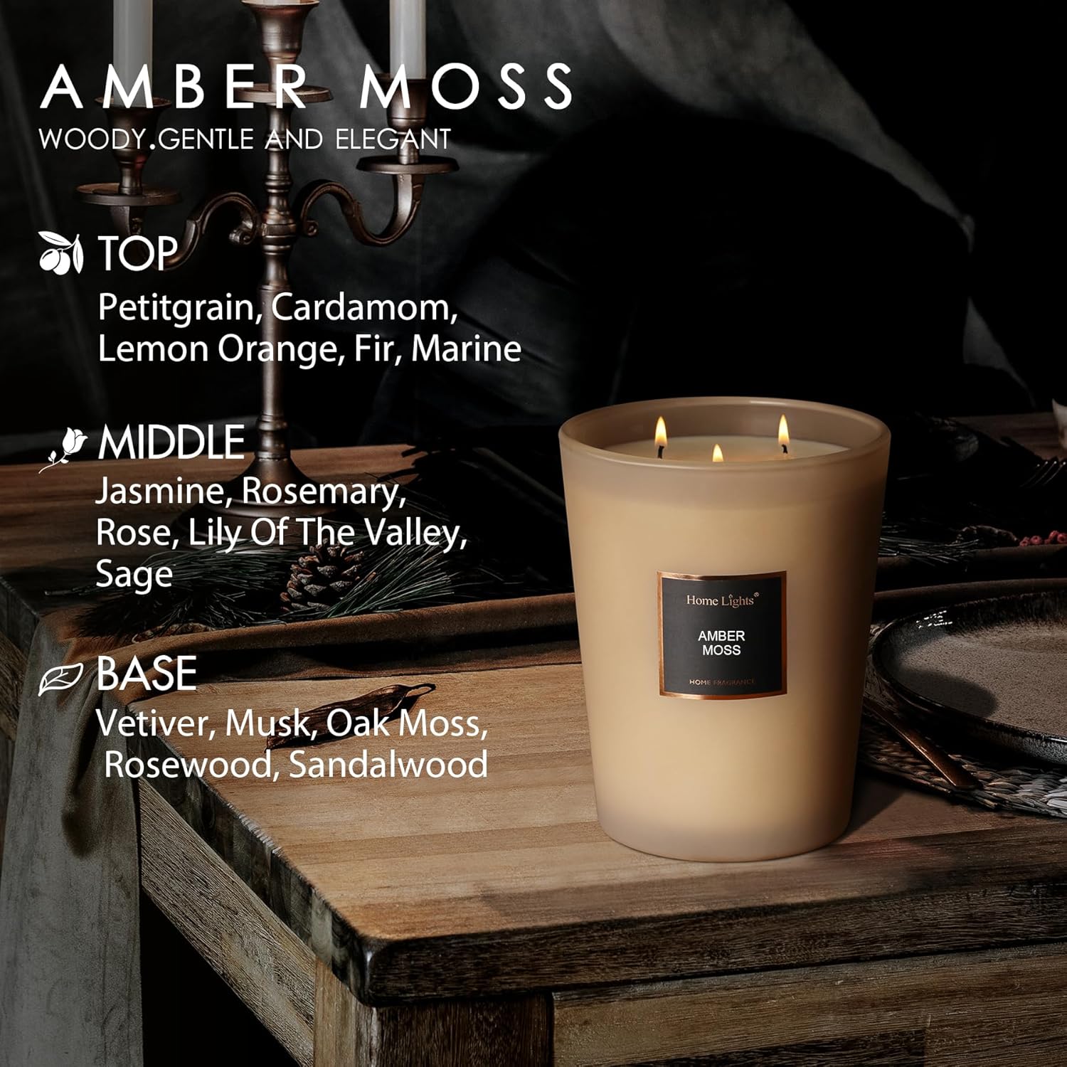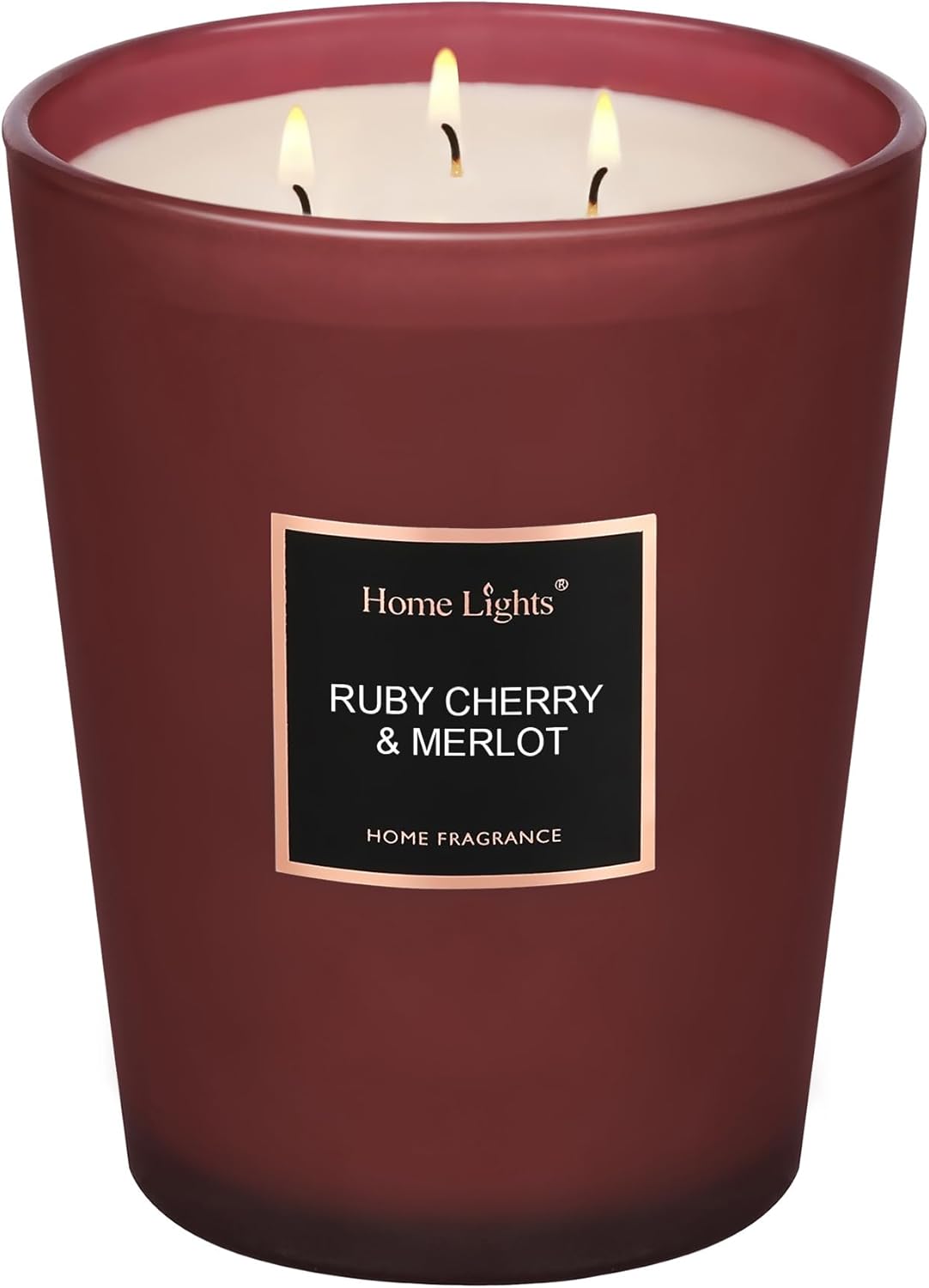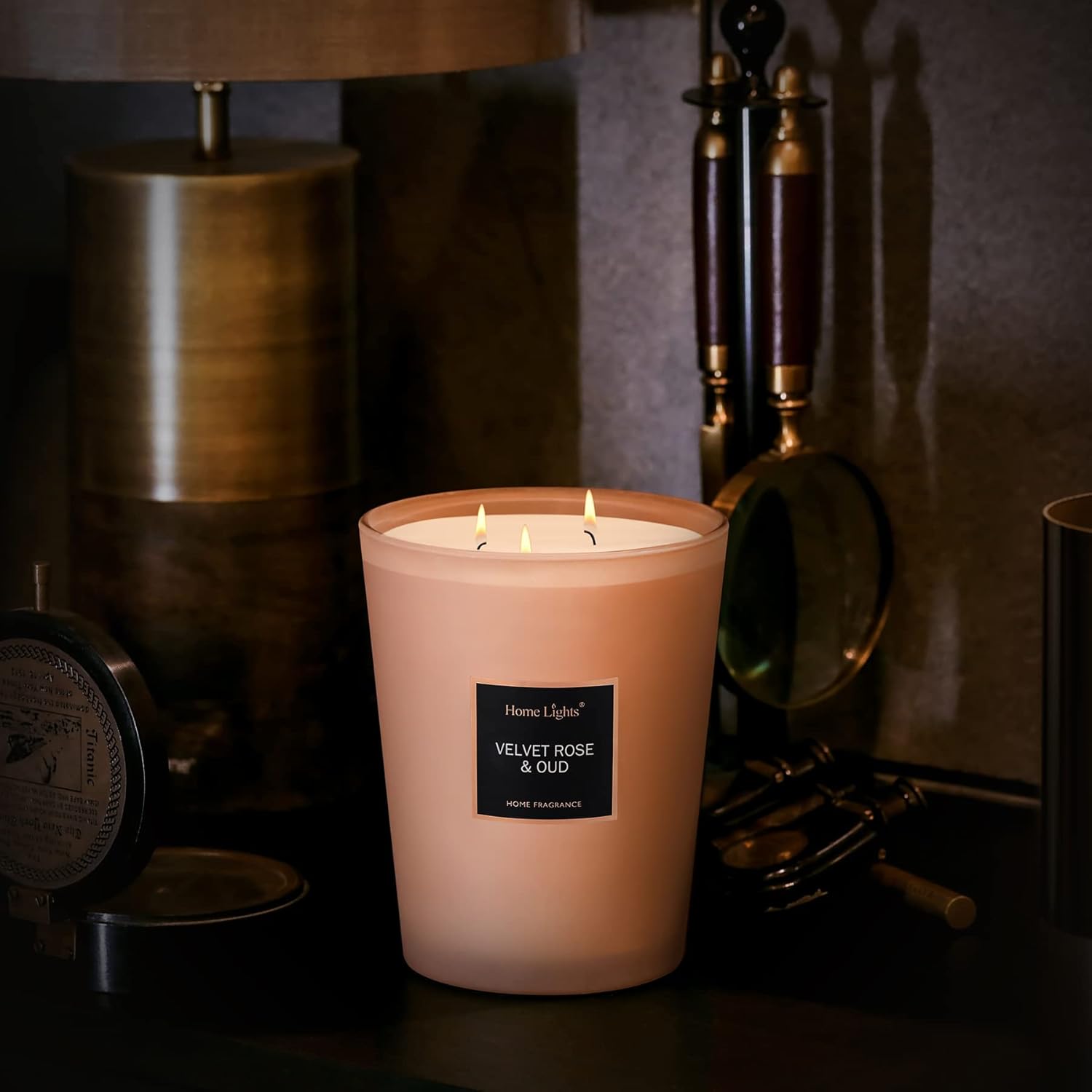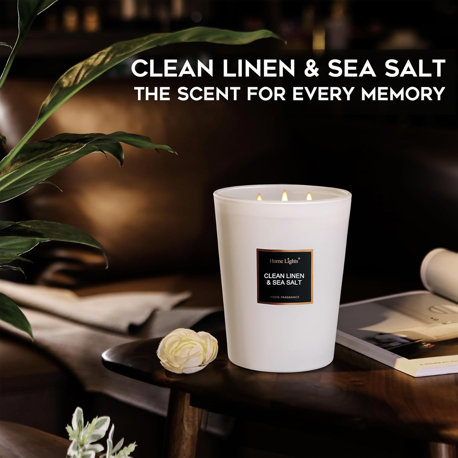 • HomeLights Scented Candles | Large Jar 33.3 Oz Natural Soy Candle | 130 hrs with 3 Cotton Wicks, Sandalwood Jasmine Home Fragrance Candles Gift