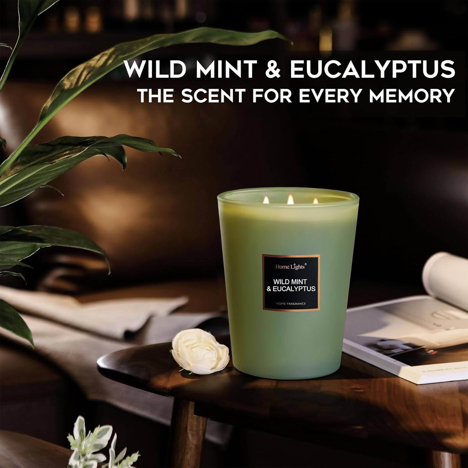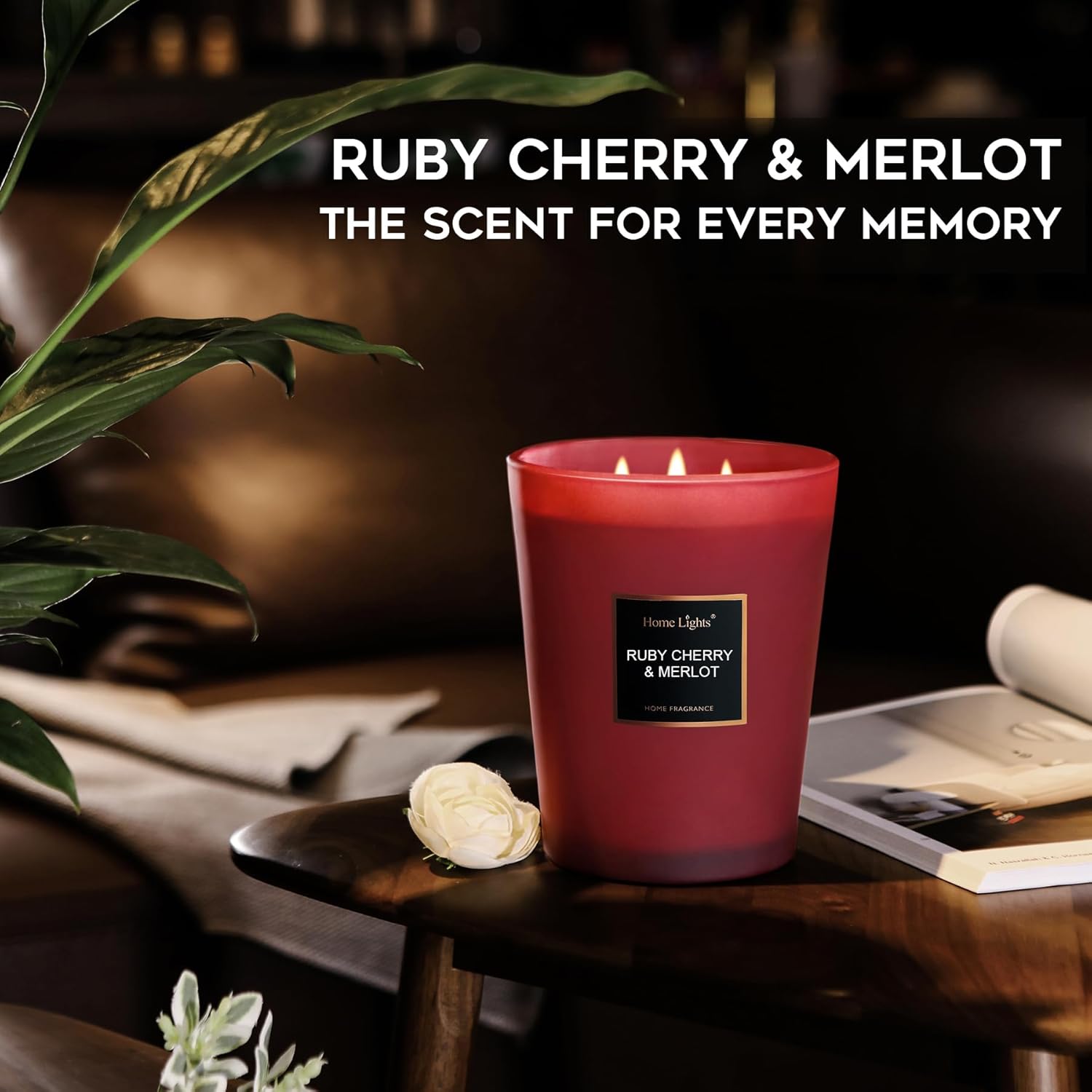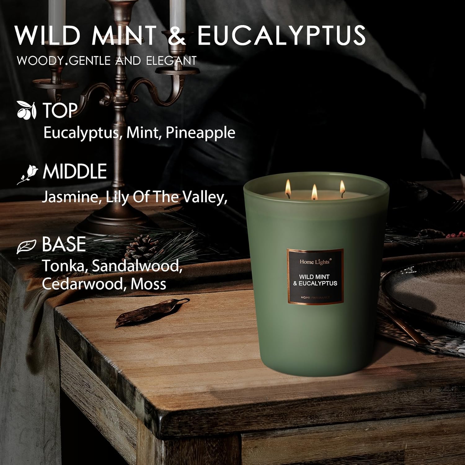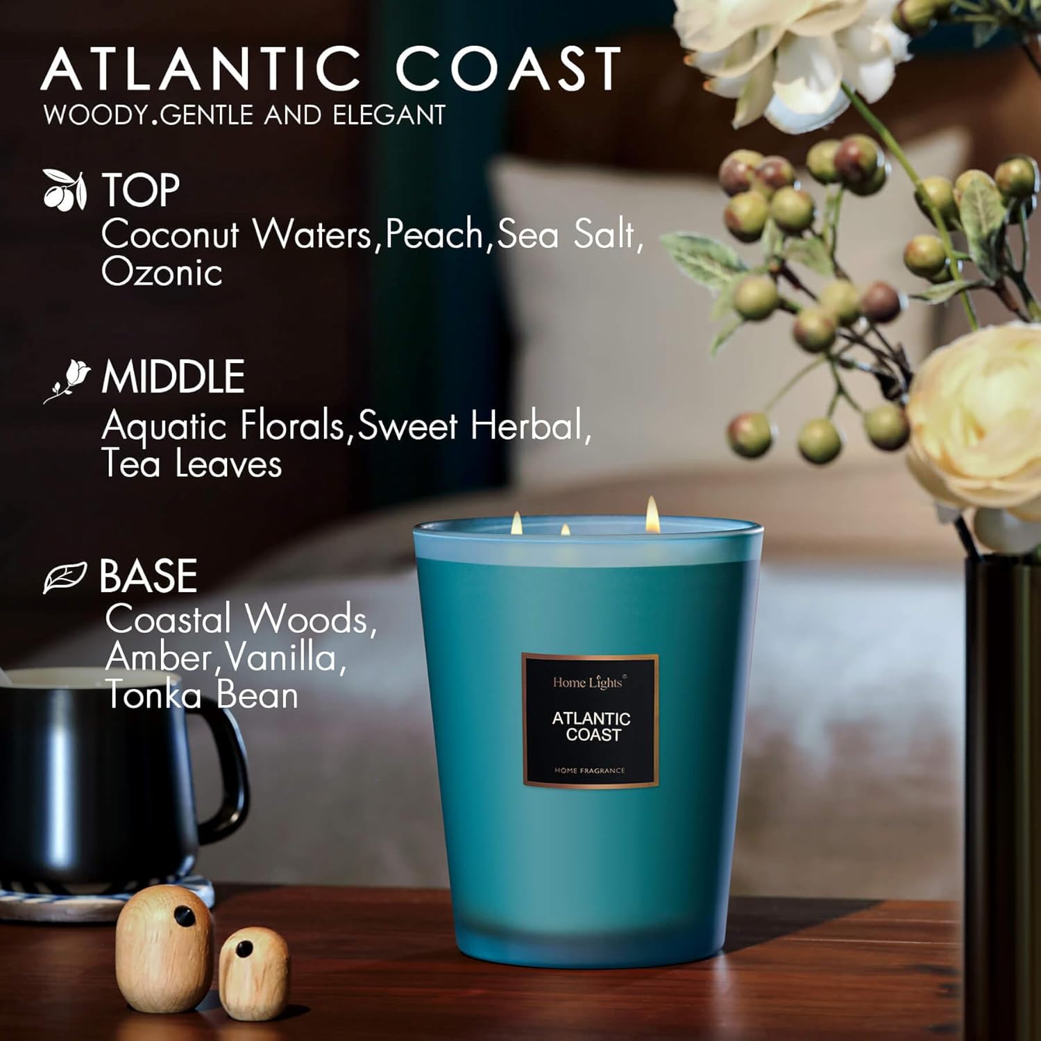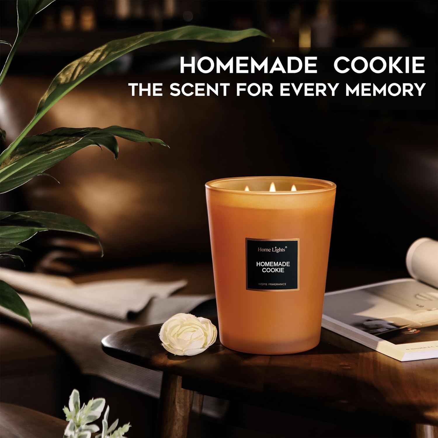 • HomeLights Scented Candles | Large Jar 33.3 Oz Natural Soy Candle | 130 hrs with 3 Cotton Wicks, Sandalwood Jasmine Home Fragrance Candles Gift