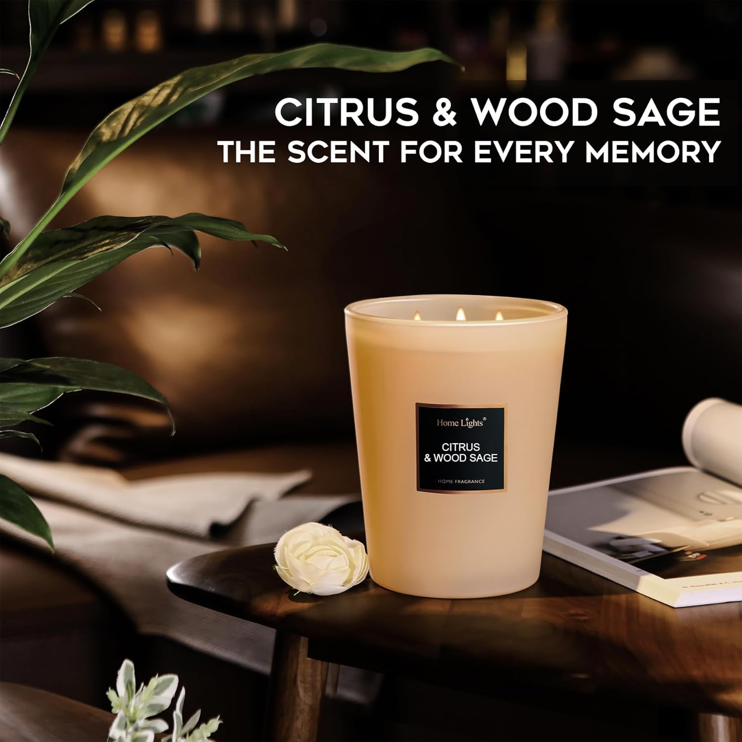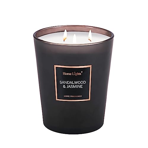 HomeLights Scented Candles | Large Jar 33.3 Oz Natural Soy Candle | 130 hrs with 3 Cotton Wicks, Sandalwood Jasmine Home Fragrance Candles Gift