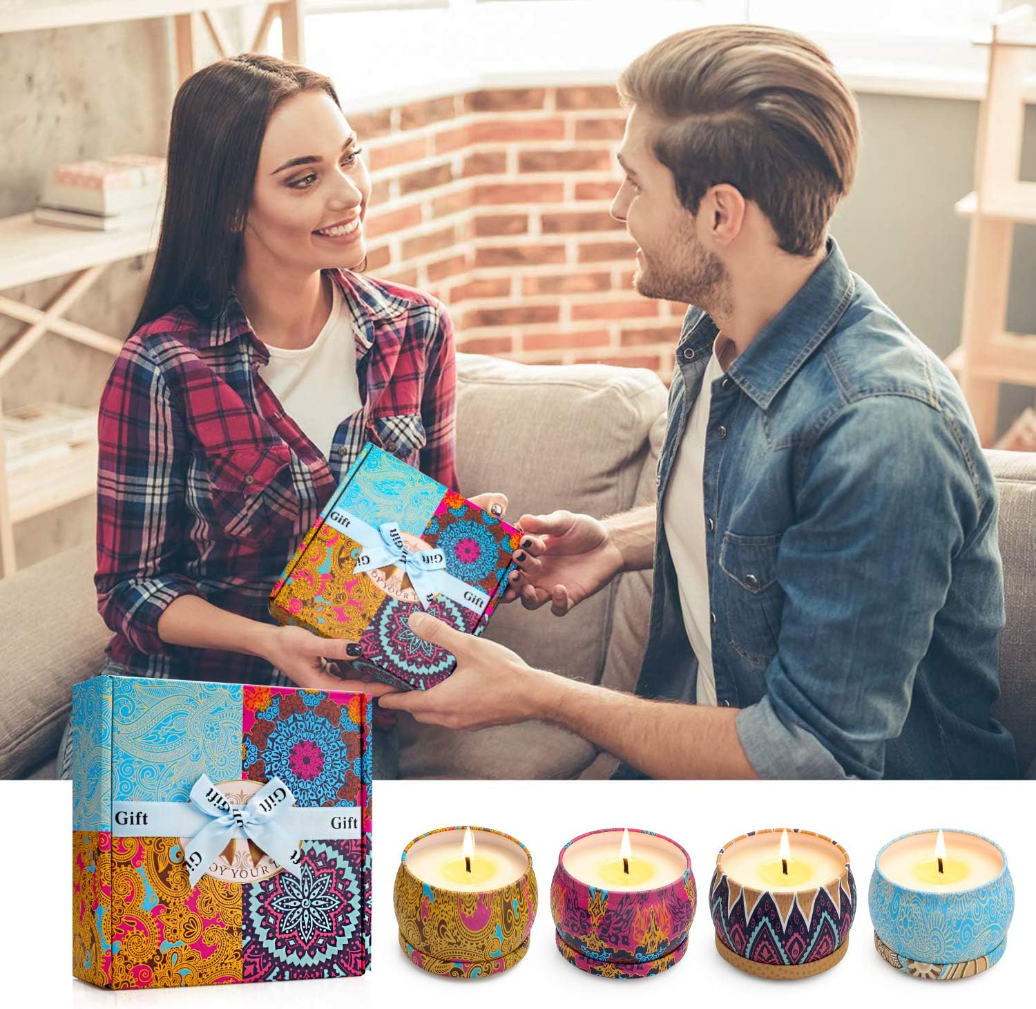 Scented Candles Gifts Set, 4 Pack Aromatherapy Candles for Home Scented, Stress Relief Gifts for Women, 120 H Lasting Burn Natural Soy Wax Candle for Birthday Valentine Mother's Christmas Day