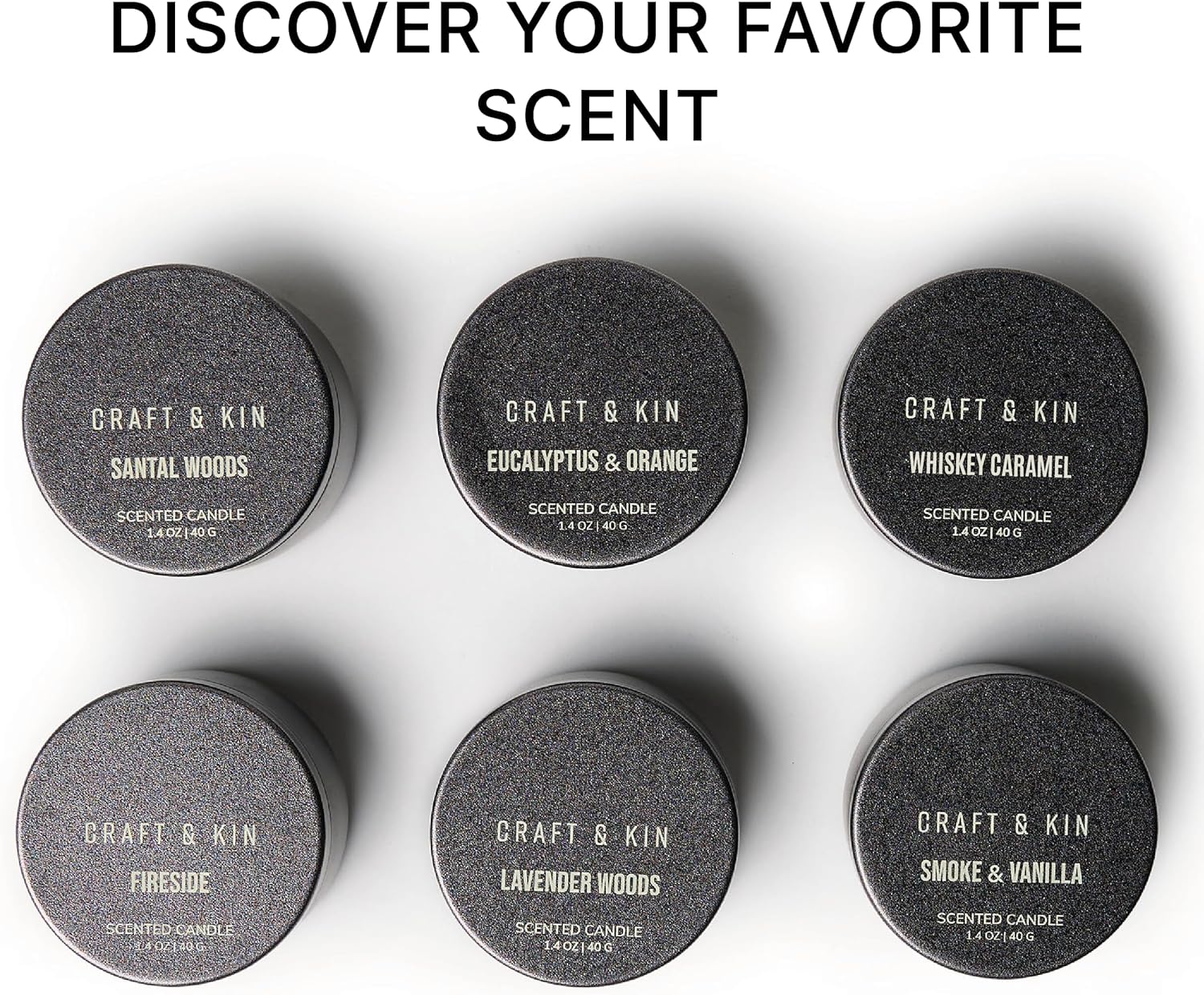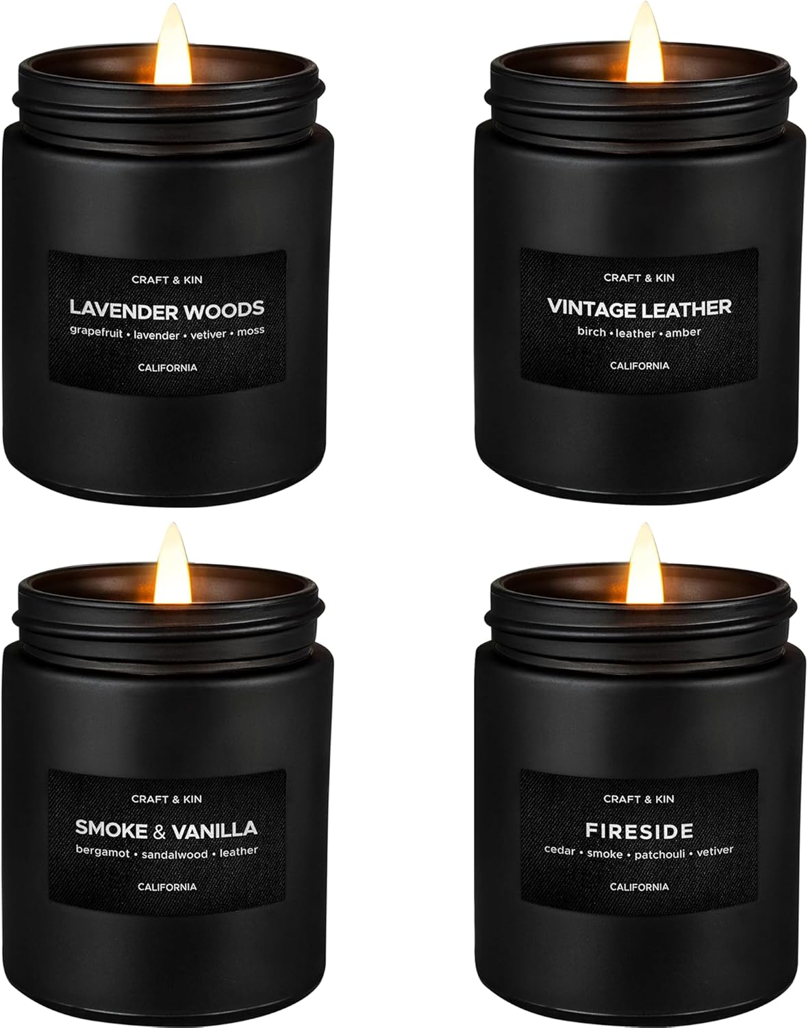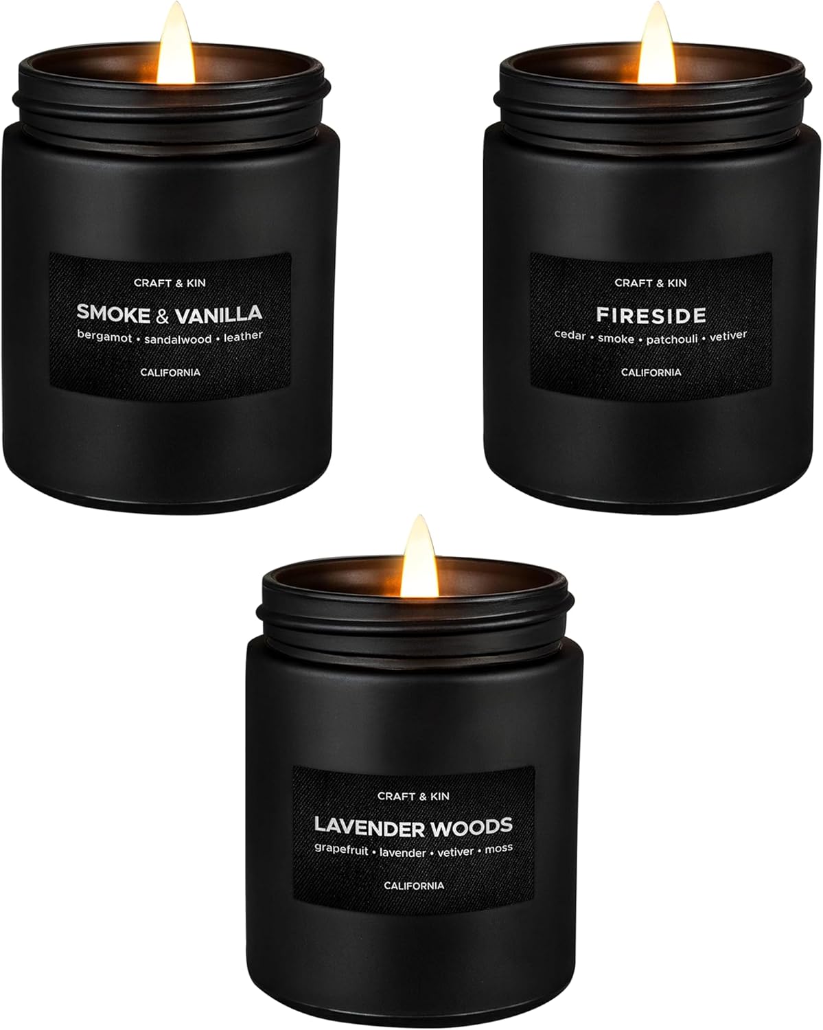 Craft & Kin Premium Smoke & Vanilla Candle | Black Scented Candles | Fathers Day Gift for Dad | Long Lasting with 45 Hour Burn Time, 7.6oz | Made with Soy Wax | Aromatherapy at Home | Gifts for Men