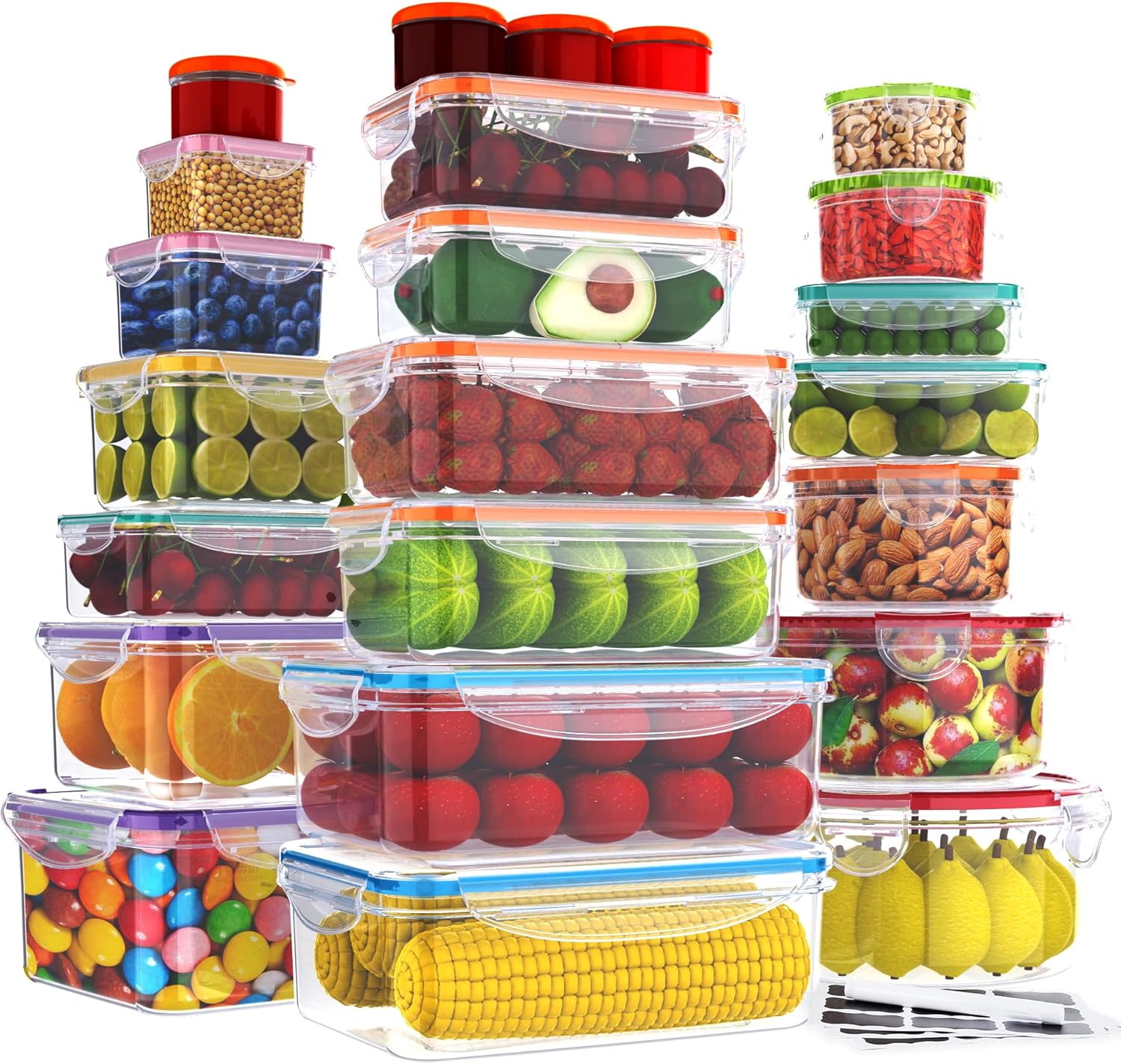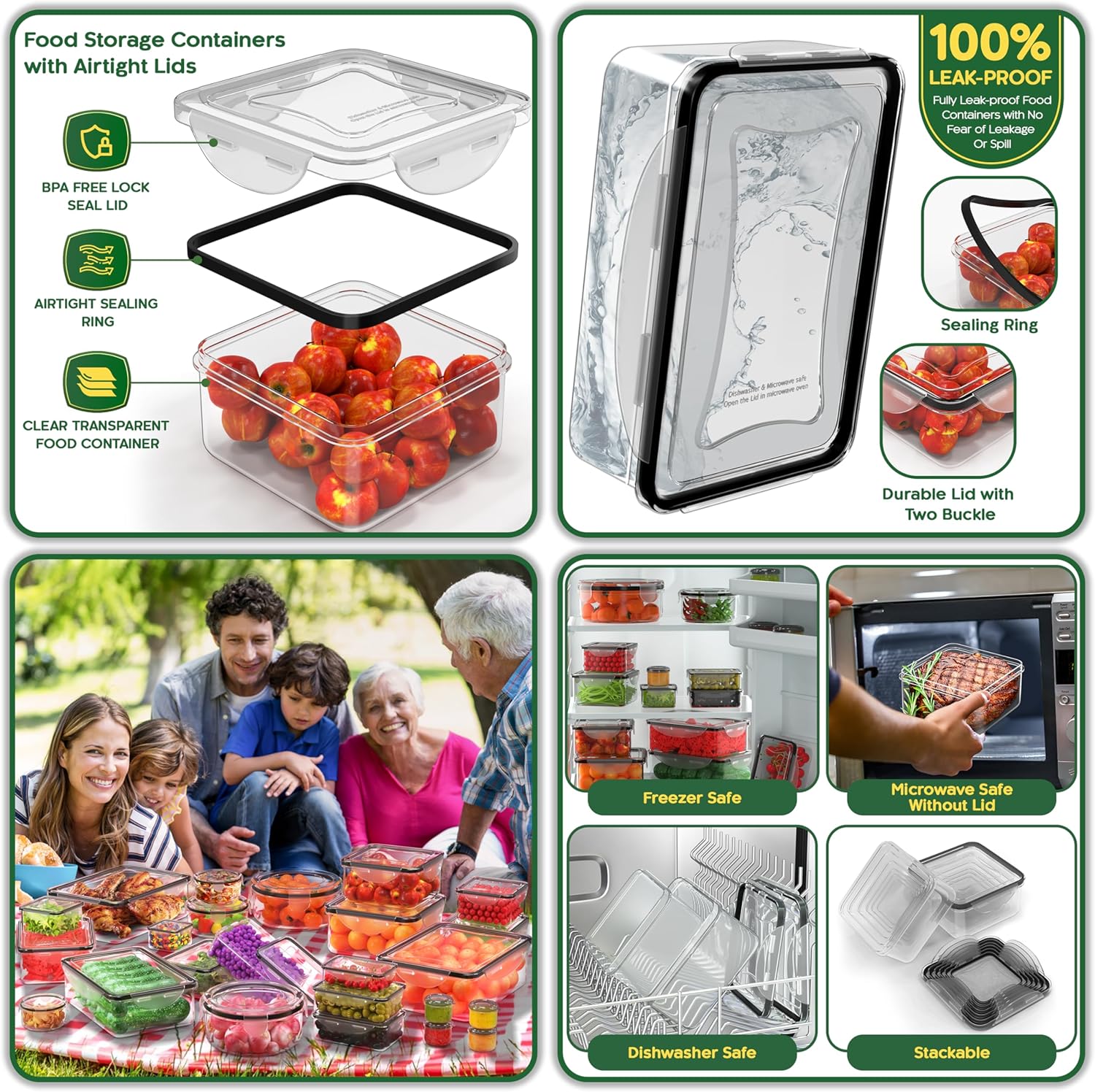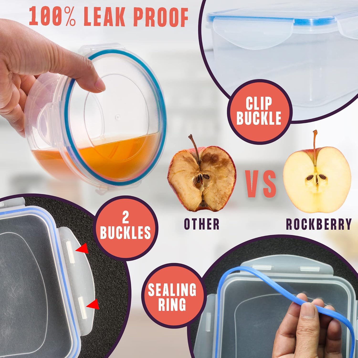RockBerry 50 Pcs Large Food Storage Containers with Lids Airtight-Total 526OZ Stackable Kitchen Set-85 OZ to small Containers-BPA Free Leak proof containers- Freezer Microwave safe
