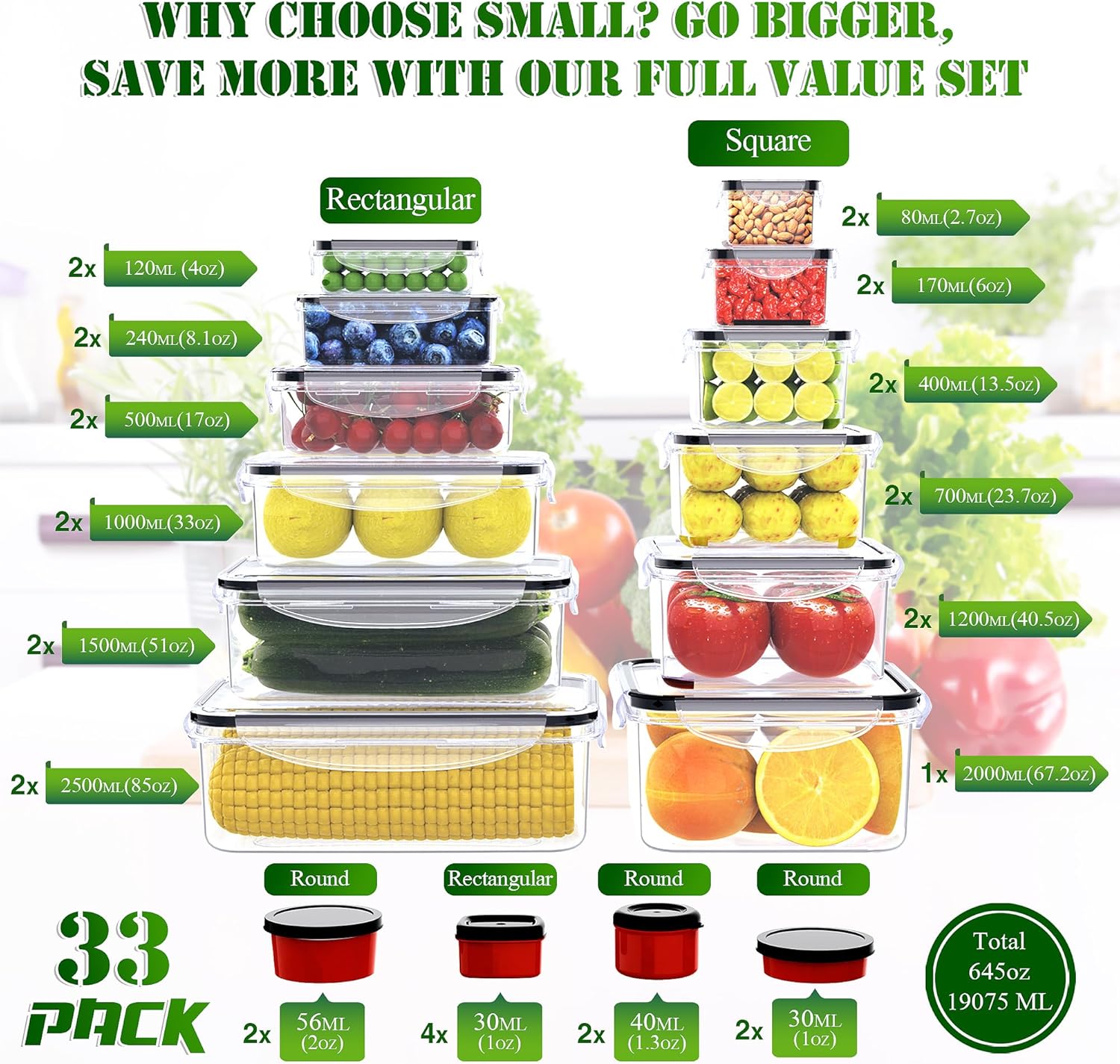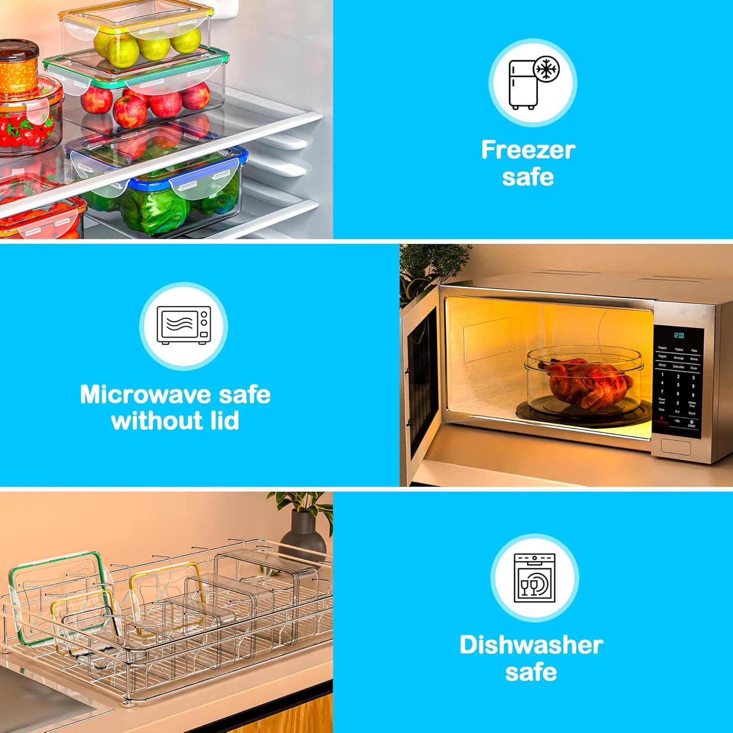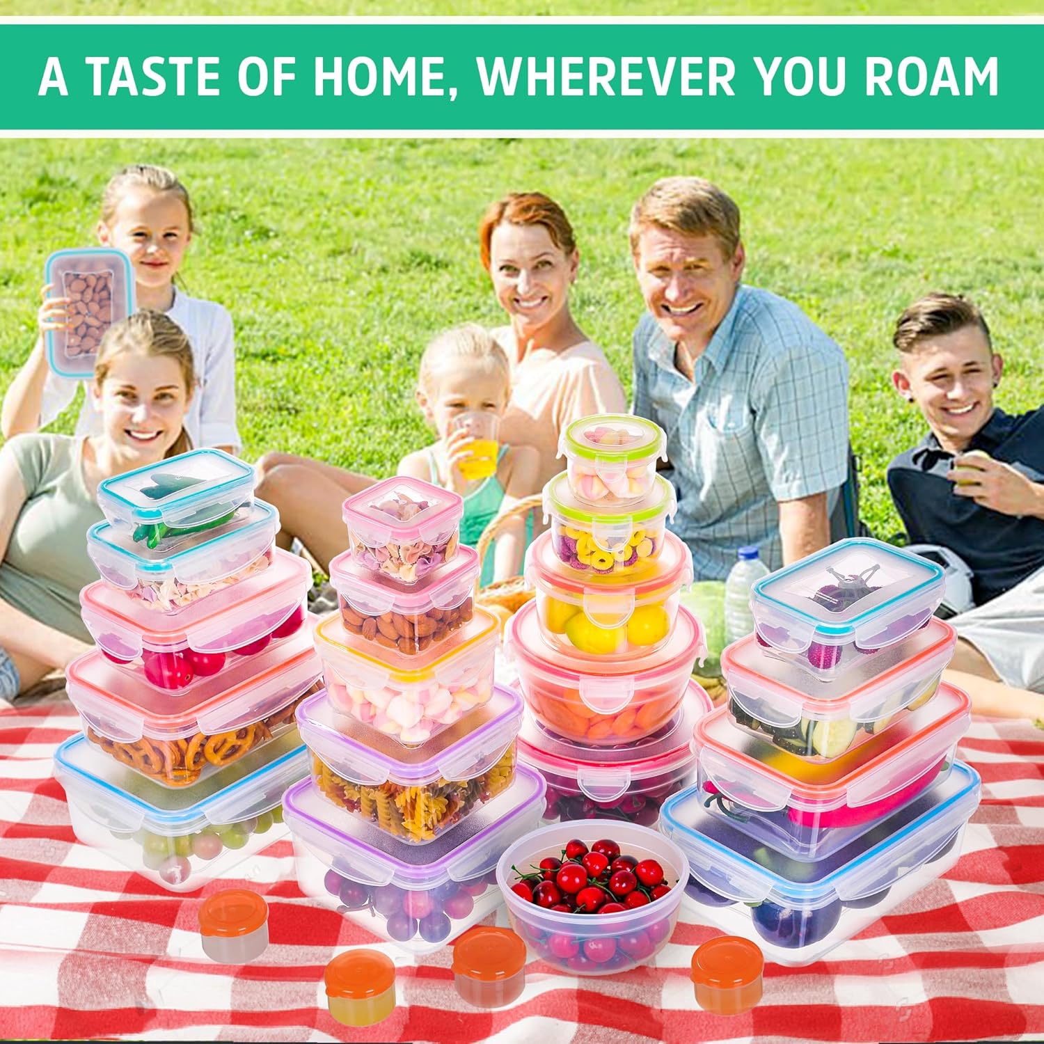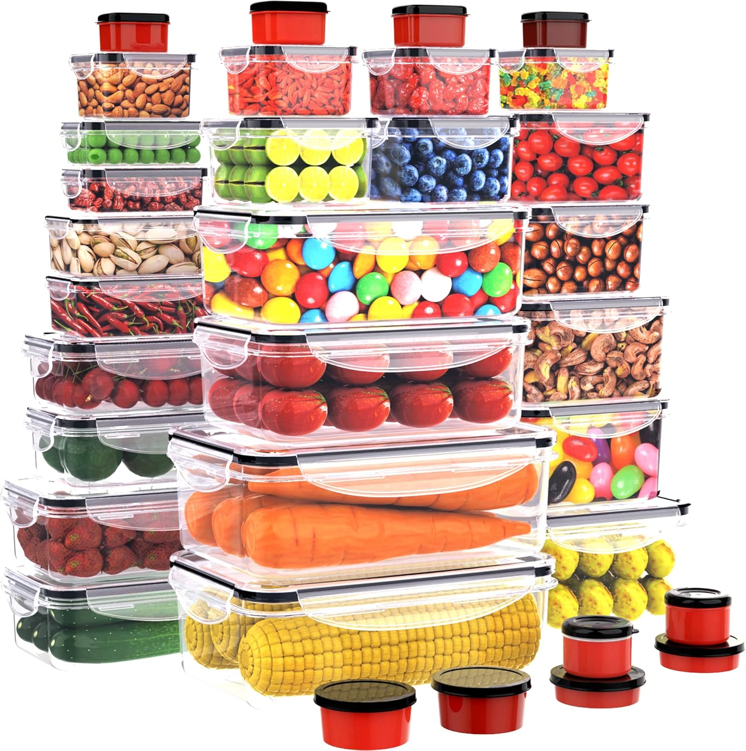 RockBerry 50 Pcs Large Food Storage Containers with Lids Airtight-Total 526OZ Stackable Kitchen Set-85 OZ to small Containers-BPA Free Leak proof containers- Freezer Microwave safe