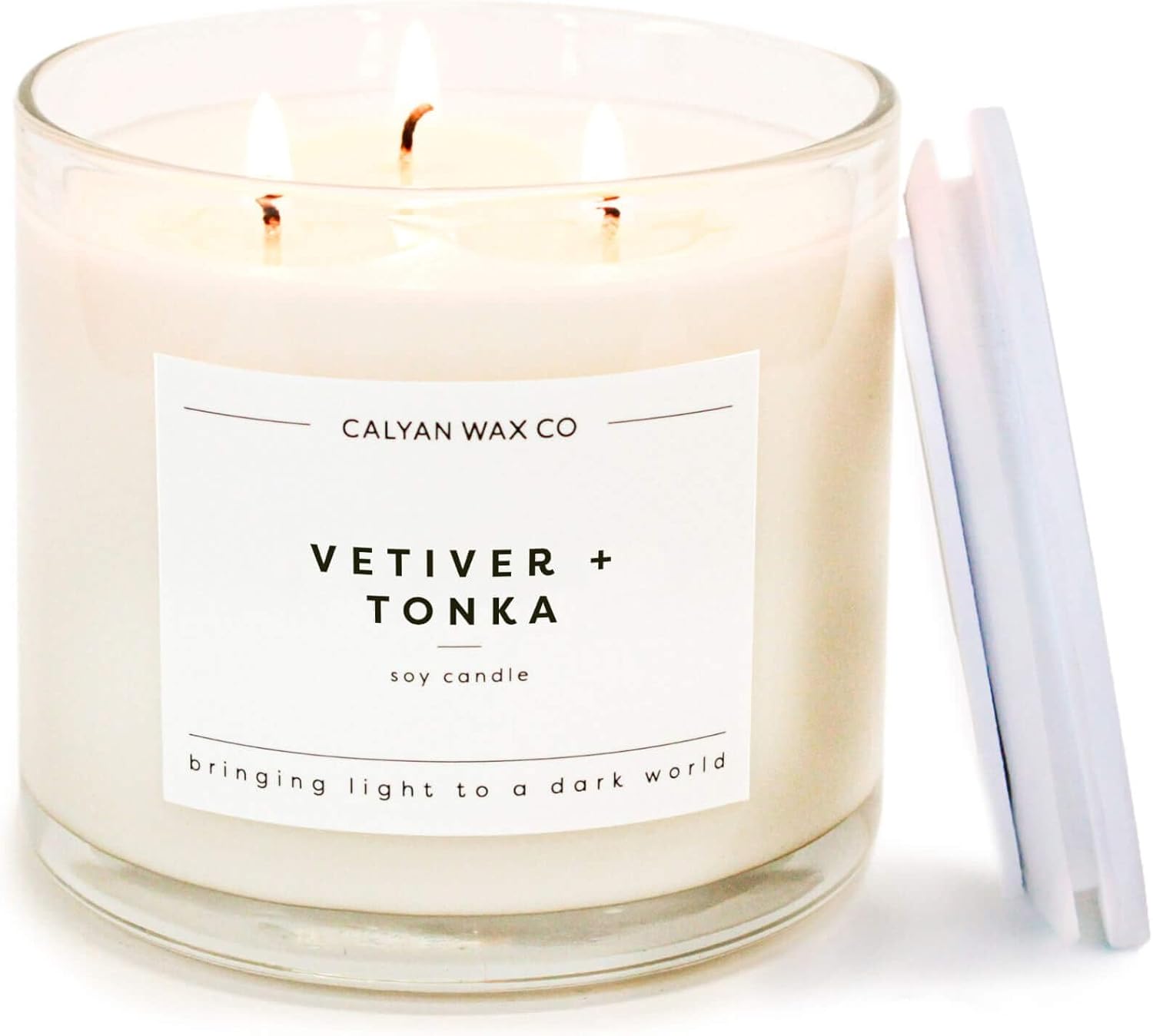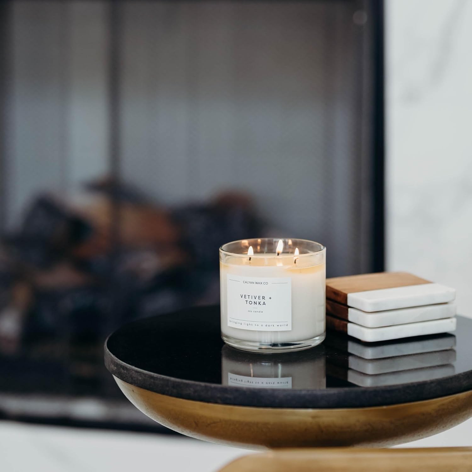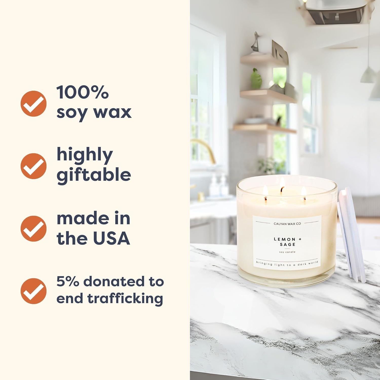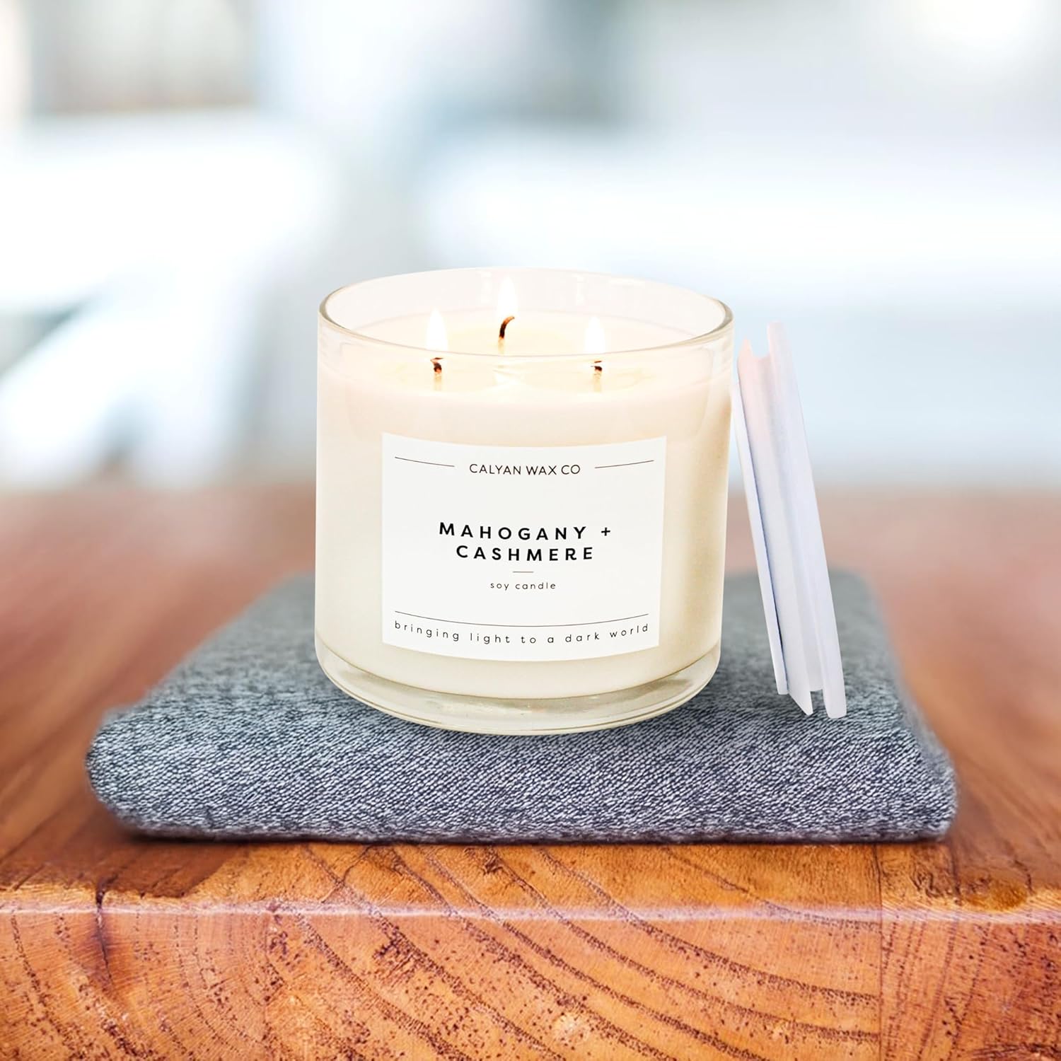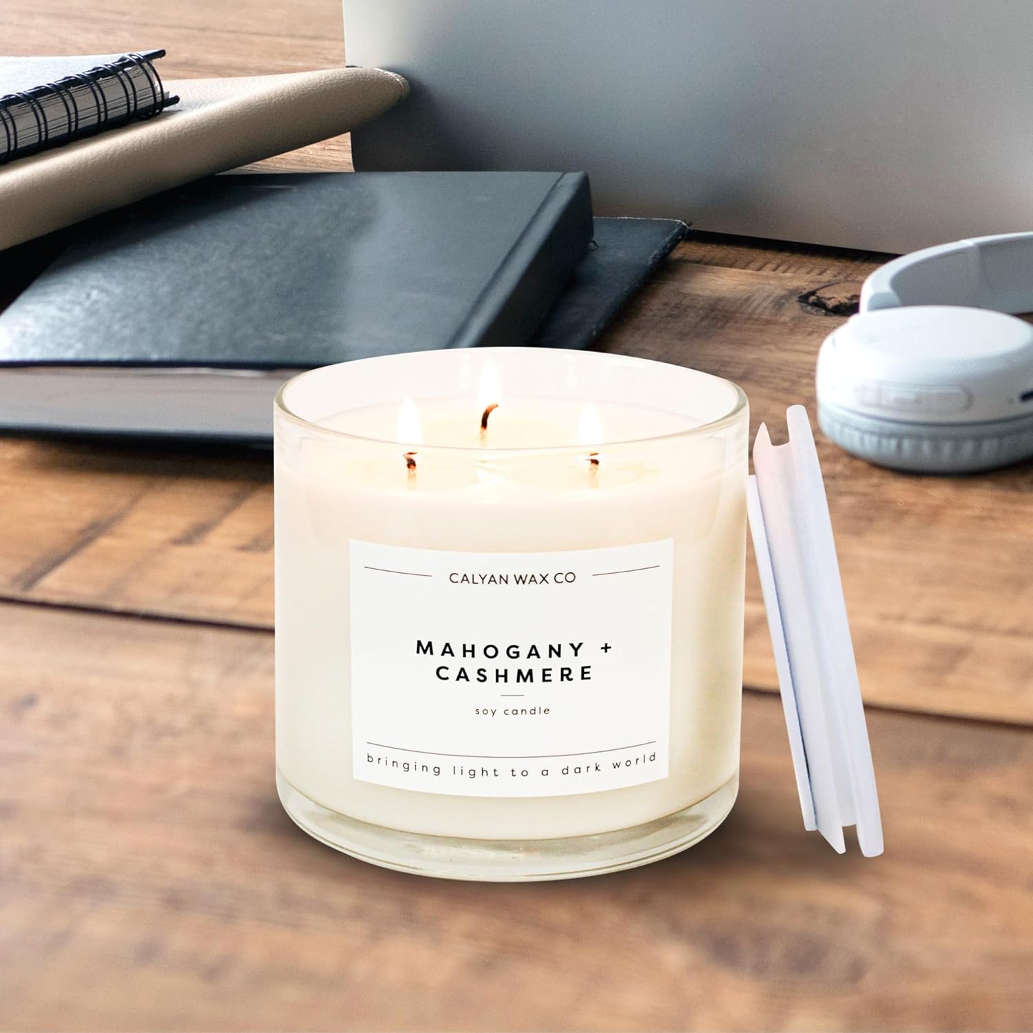 • Calyan Wax Co. 3 Wick Candle, Apples + Maple Bourbon Scented Candle, 43 Hour Burn Time, 3 Wick Soy Candles, Non Toxic & Vegan Soy Wax, Glass Jar Scented Candles, 14.9oz