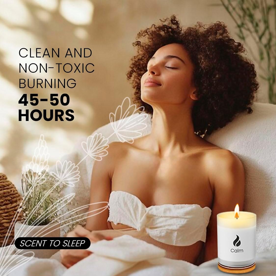 Calming Scented Candles for Home | Lavender, Basil & Jasmine Candle | Natural Non Toxic Soy Candles with Essential Oils | 50 H Long Burning | Aromatherapy Candle Jar with Lid - 8.3oz