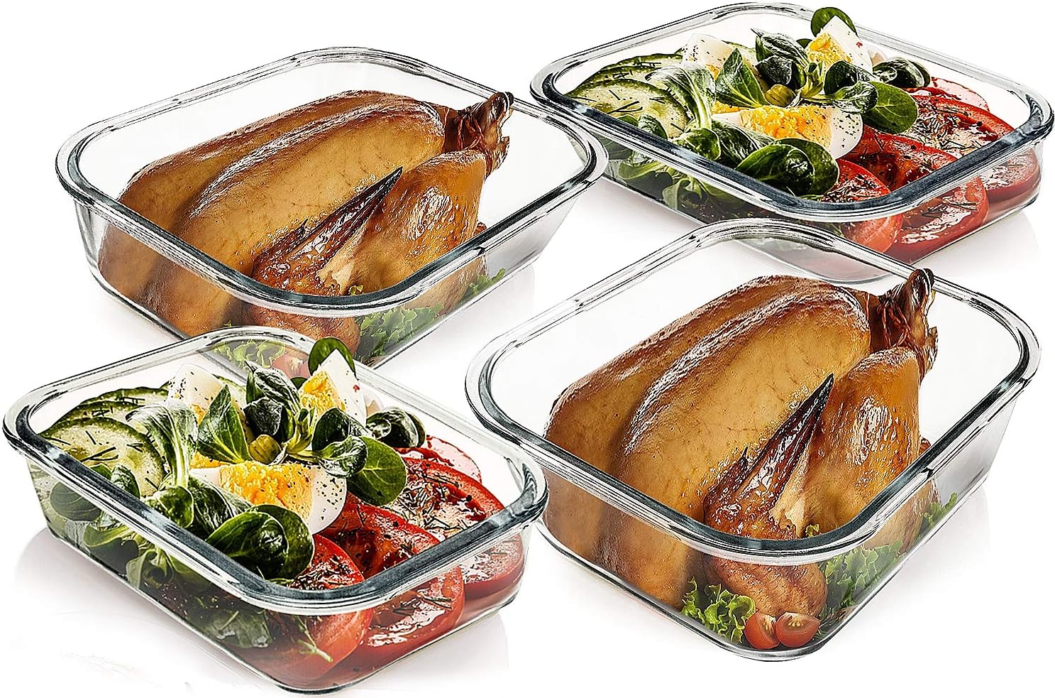 M MCIRCO [80 oz & 36 oz Extra Large Glass Food Storage/Baking Containers Set with Lids, 2 Pack 80 oz(10 cup)&2 Pack 36 oz (4.5 cup) Airtight Glass Container,Microwave,Oven,Freezer and Dishwasher