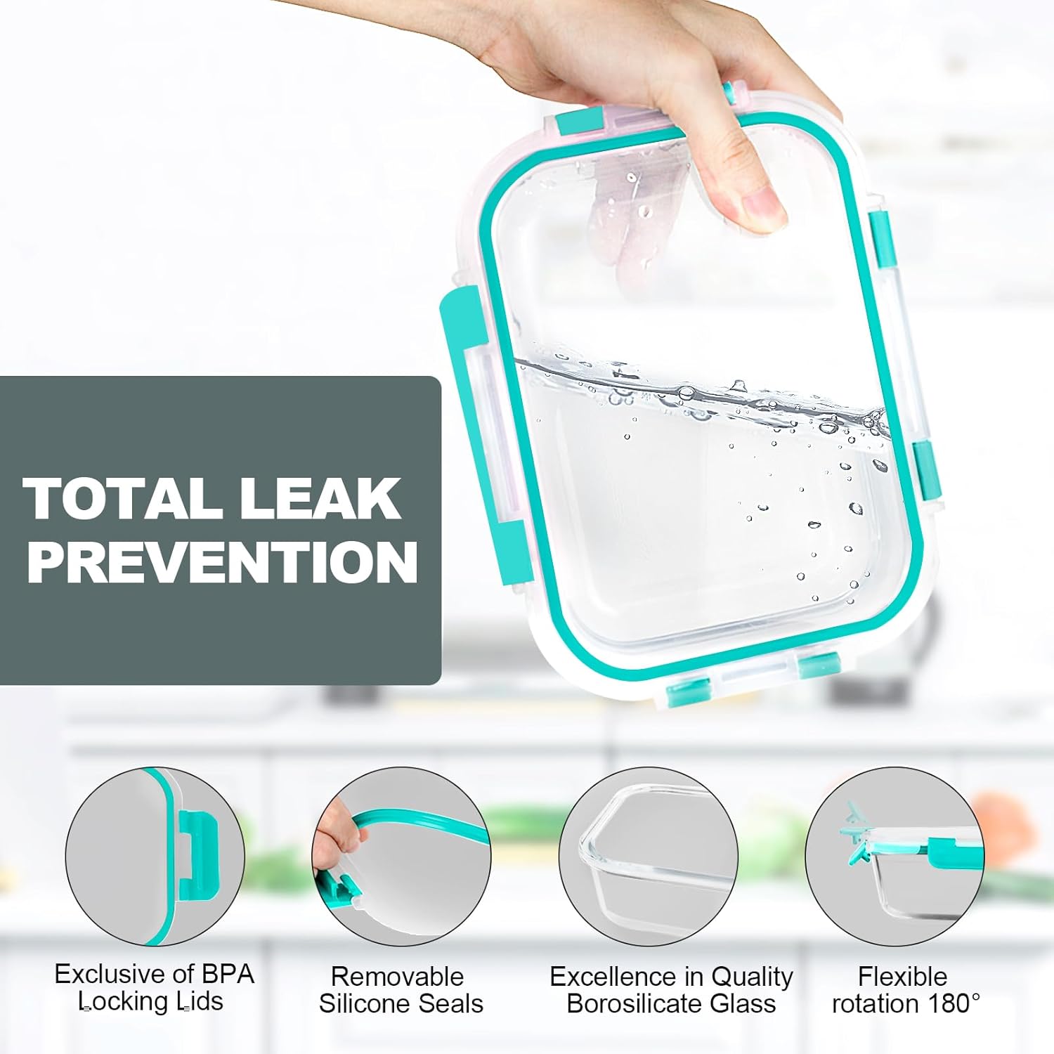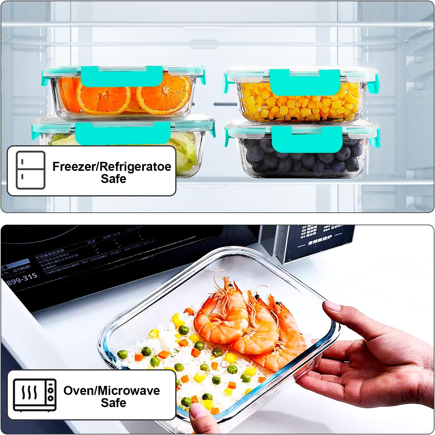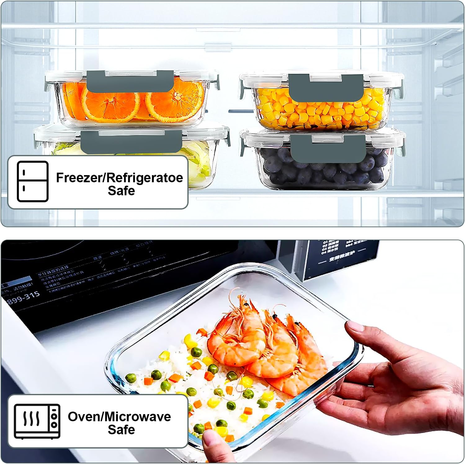 • VERONES 10 Pack Glass Meal Prep Containers, Airtight Glass Lunch Containers, Stackable Glass Food Storage Containers Set with Lids,Exclusive of BPA,for Microwave, Oven, Freezer & Dishwasher,Grey