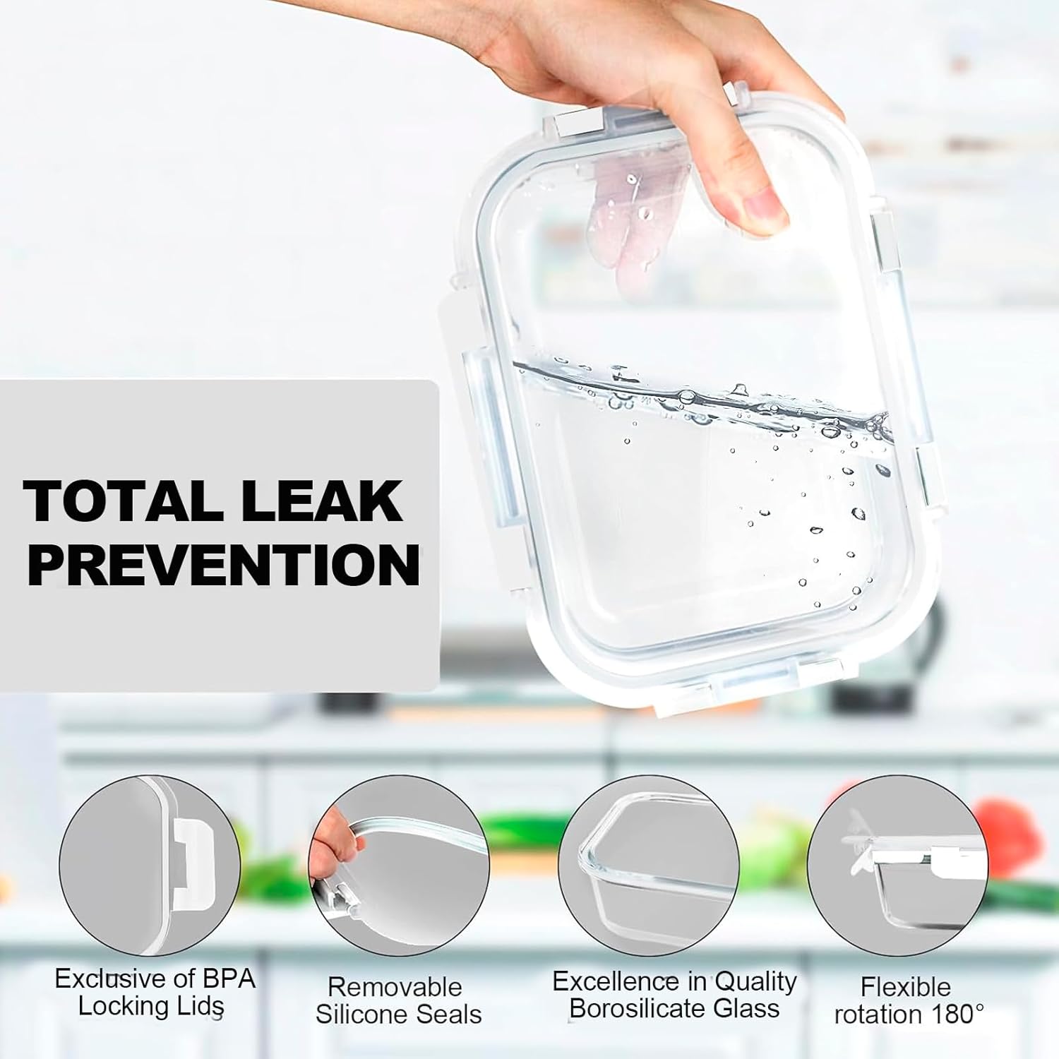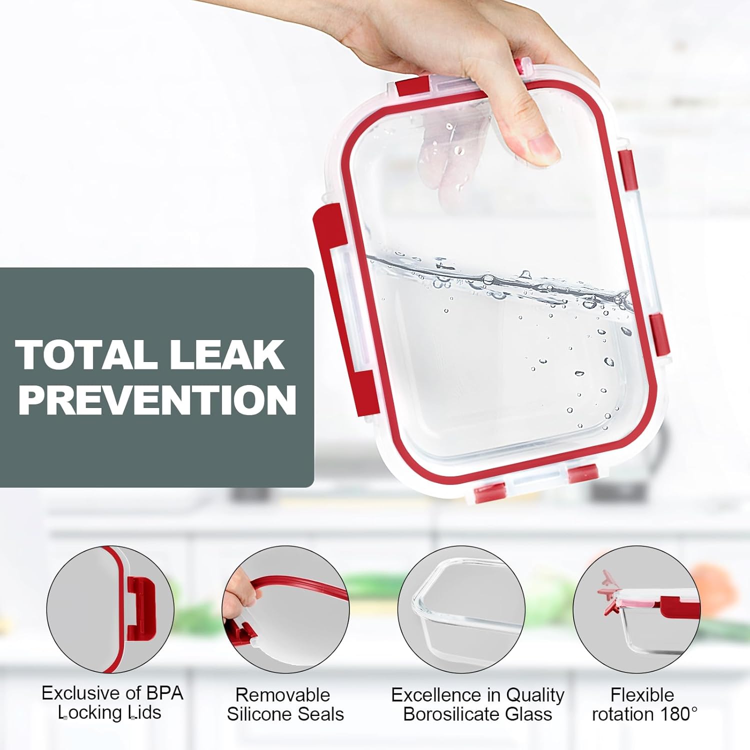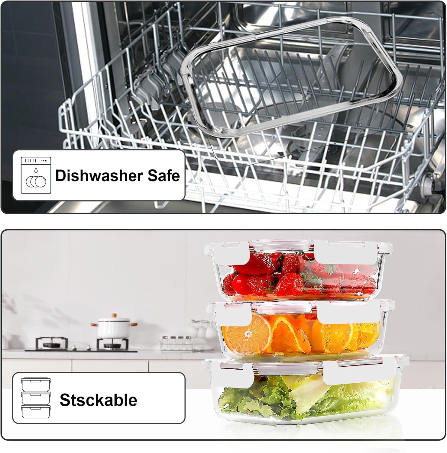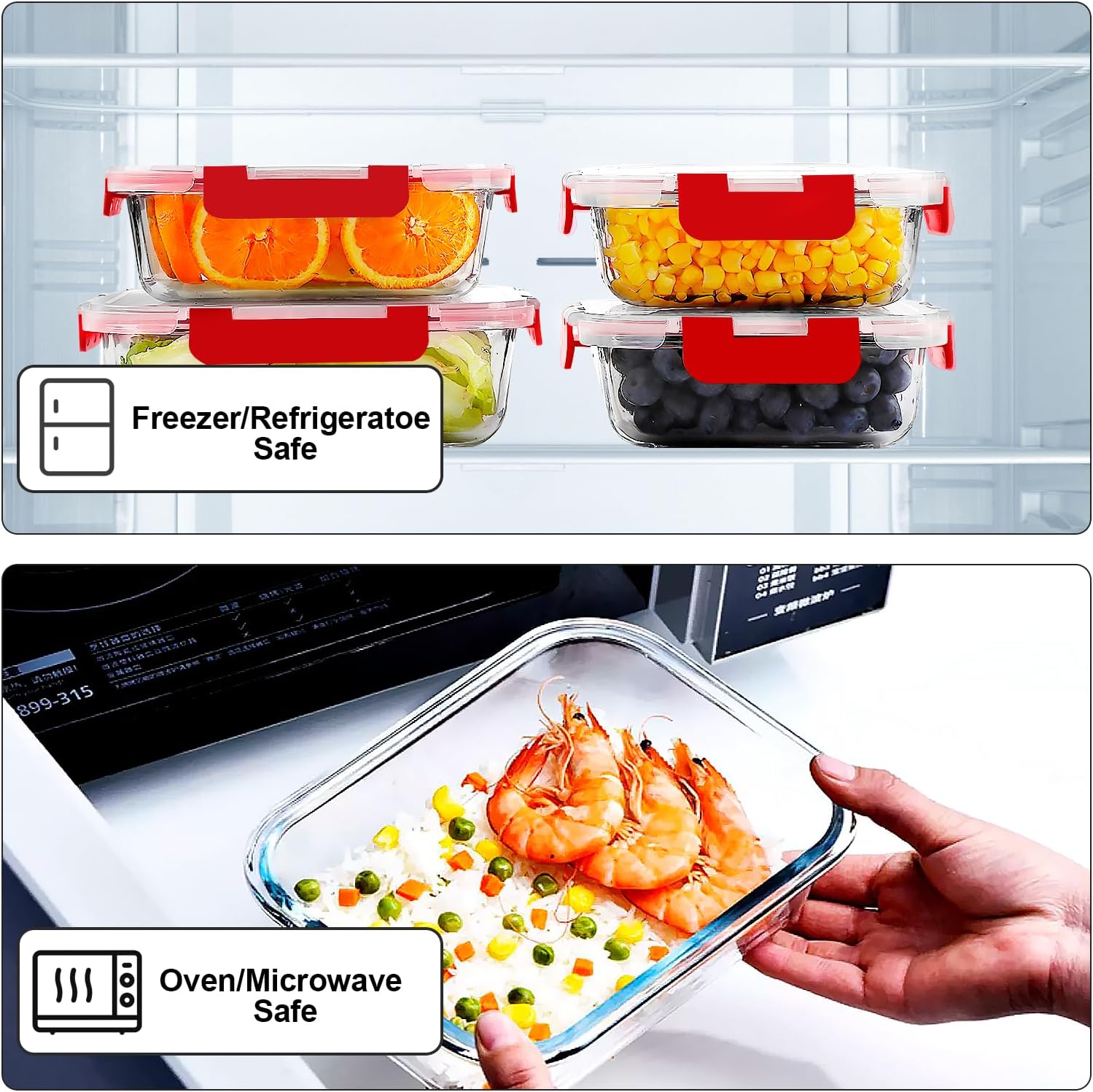 • VERONES 10 Pack Glass Meal Prep Containers, Airtight Glass Lunch Containers, Stackable Glass Food Storage Containers Set with Lids,Exclusive of BPA,for Microwave, Oven, Freezer & Dishwasher,Grey
