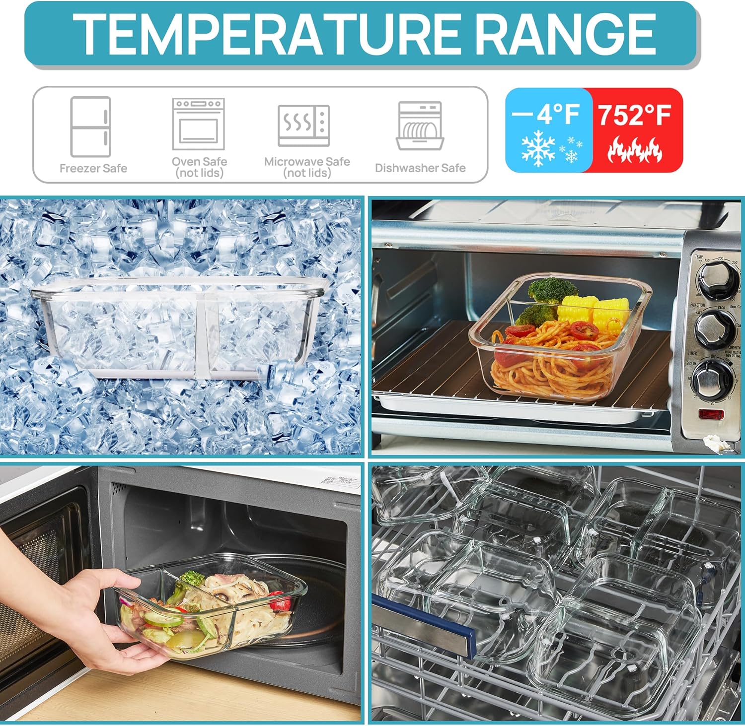 • Vtopmart 5Pack 33oz Glass Food Storage Containers with Lids, Meal Prep Containers 2 Compartments, Airtight Lunch Containers with Snap Locking Lids for Microwave, Oven, Freezer