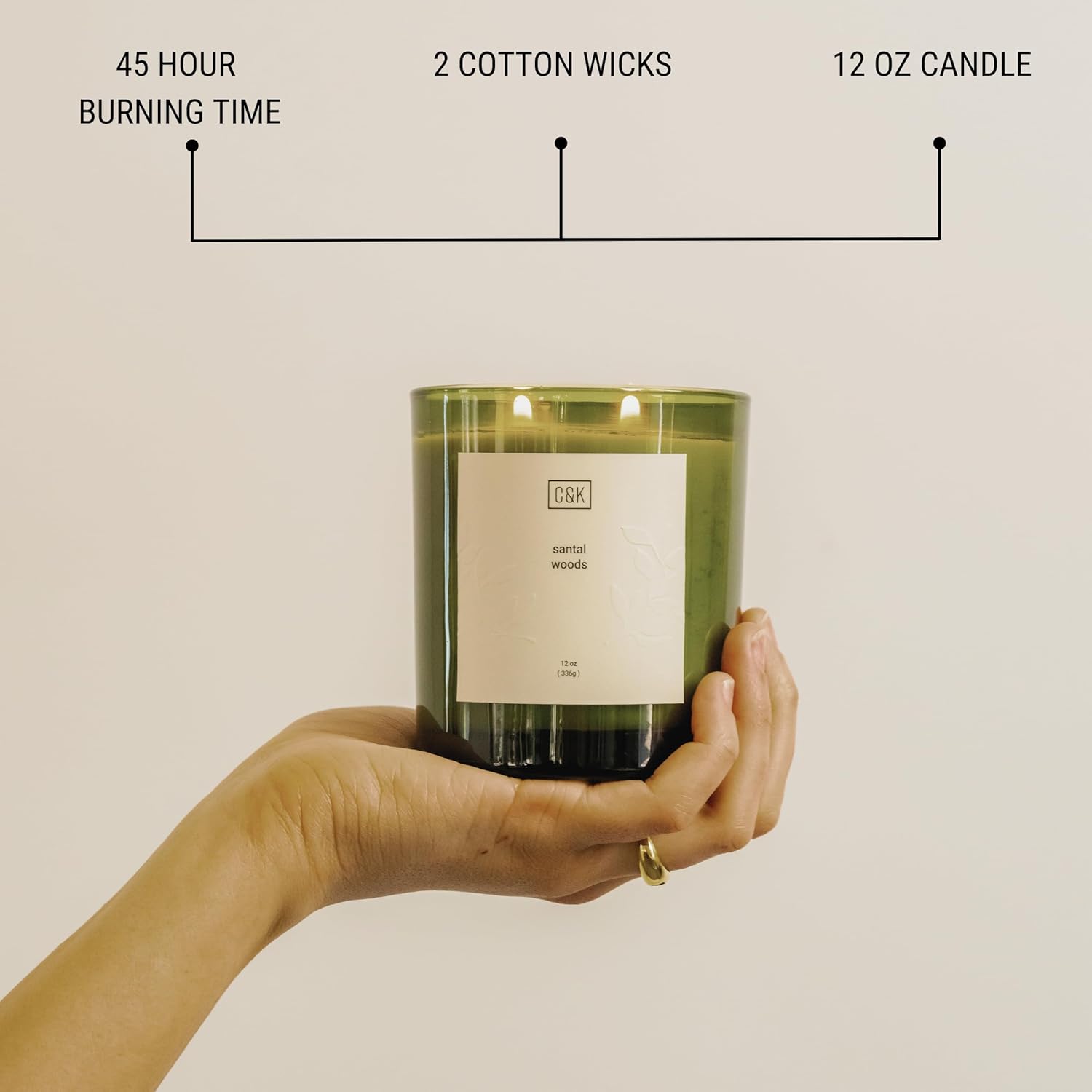 Craft & Kin 12oz Santal Woods Candle for Home | Premium Green Spring Scented Candles for Men | Made with Natural Soy | Gifts for Men and Women | Nature Collection