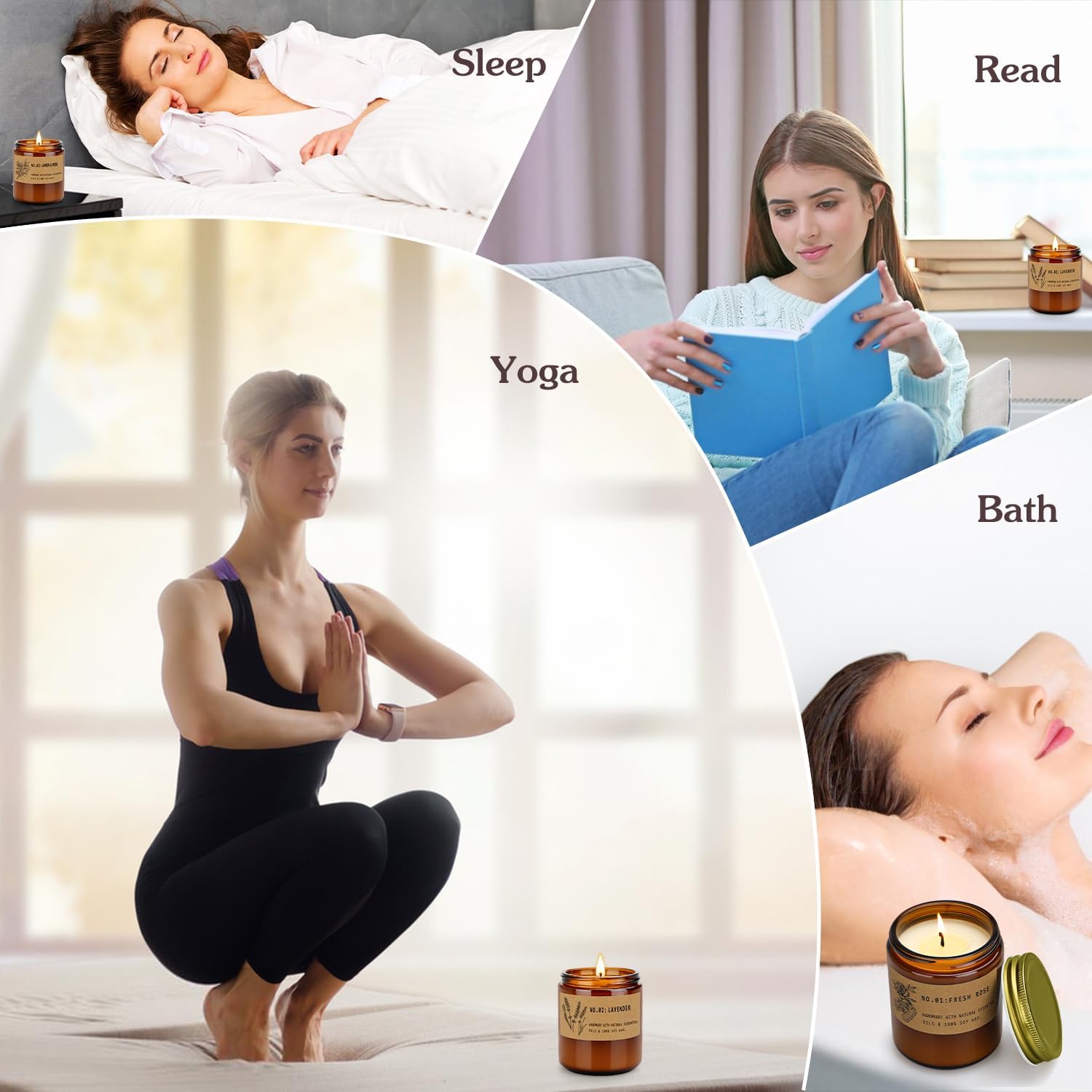 Candles for Home Scented, 4 Pack Candle Gifts for Woman, Large Lavender Rose Amber Aromatherapy Scented Candles, 220H Long Lasting Soy Wax Candle Set for Mother's Day, Birthday, Anniversary, Men