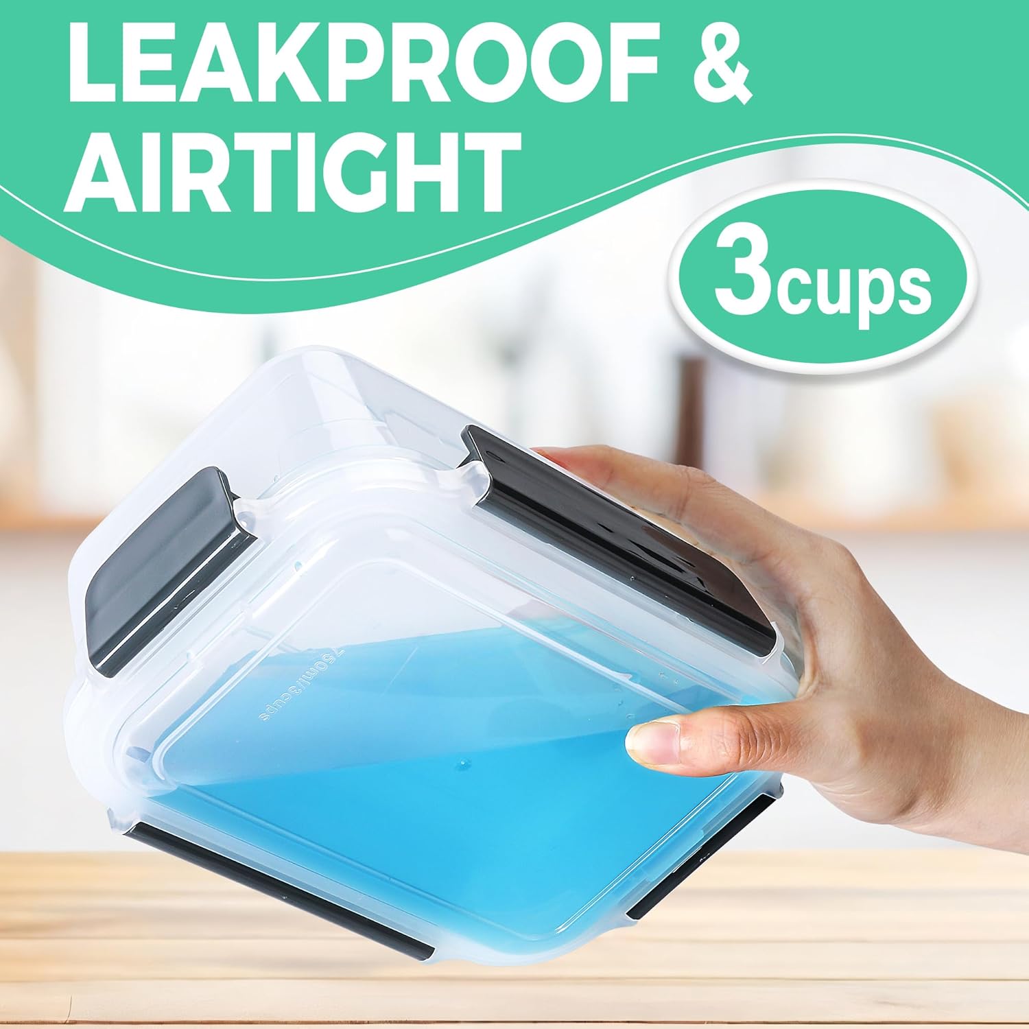 • YORY 3 cup Plastic Food Storage Containers with Lids Nestable Freezer Dishwasher Safe Rectangle Container Set,5-Pack