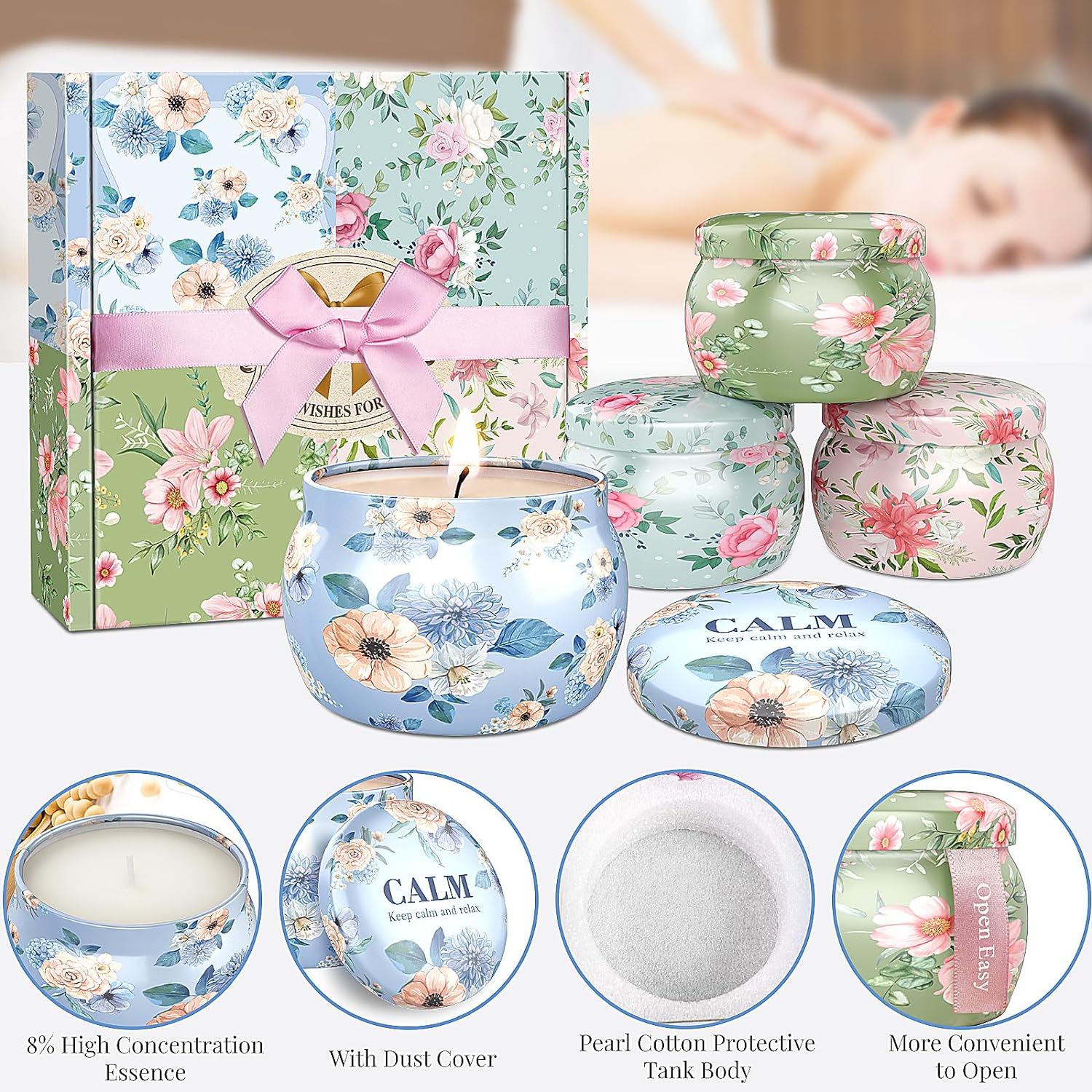 • Scented Candles Set, 17.6 oz 4 Pack Home Scented Candles, 100-120 Hours Candle Present for Men and Women,Candles for Birthday, Fathers Day Presents