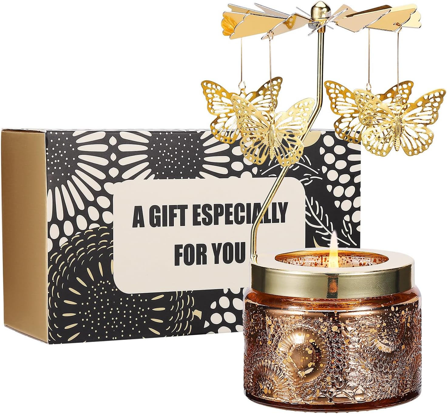 Butterfly Gifts for Women, Birthday Gifts for Mom Daughter Sister Wife, Unique Gift for Friend Women Rotatable Scented Candles Gift for Anniversary Christmas Mothers Day