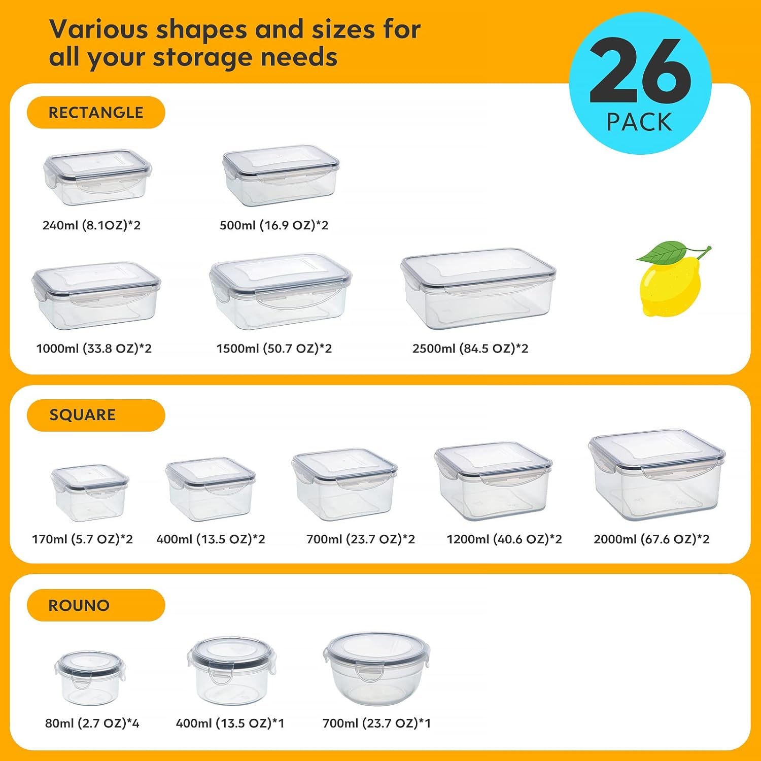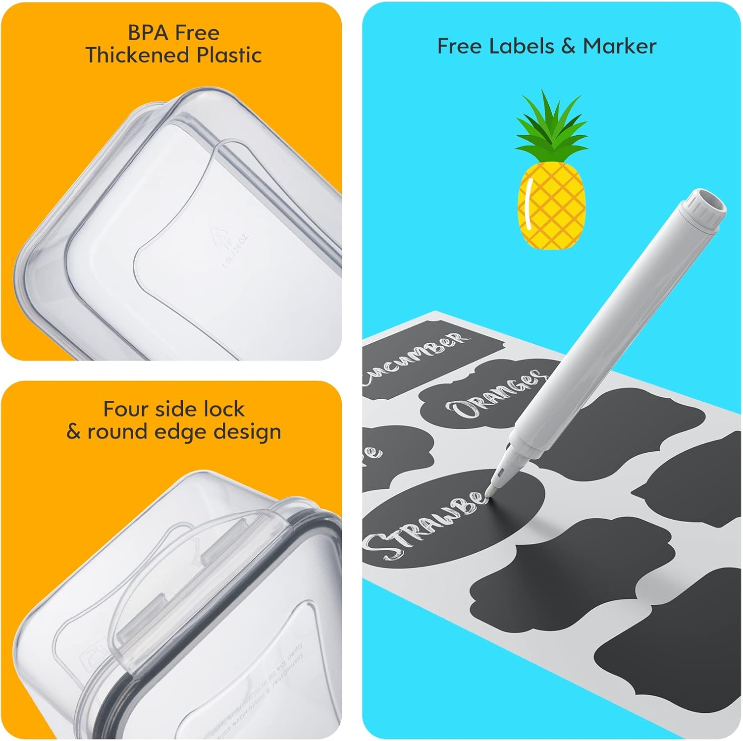 • 40 PCS Food Storage Containers with Lids Airtight (20 Lids &20 Containers) - Leakproof Meal-Prep Containers for Kitchen Storage Reusable Plastic Microwave/Dishwasher Safe with Labels & Pen