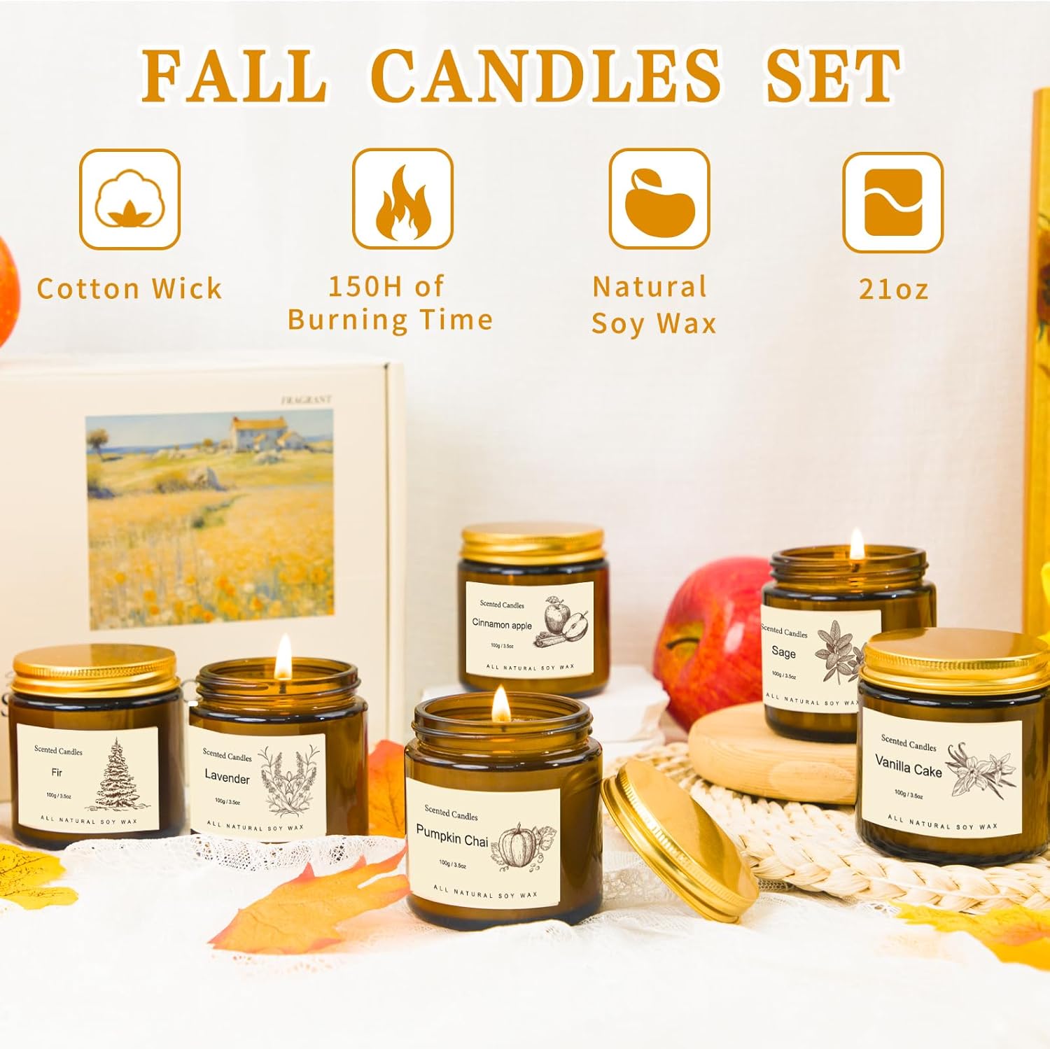 8 Pack Candles for Home Scented, Aromatherapy Jar Candle Gifts for Women, Natural Soy Wax Amber Candle Set, Scented Candles Set for Birthday Valentine Mother's Christmas Day Present
