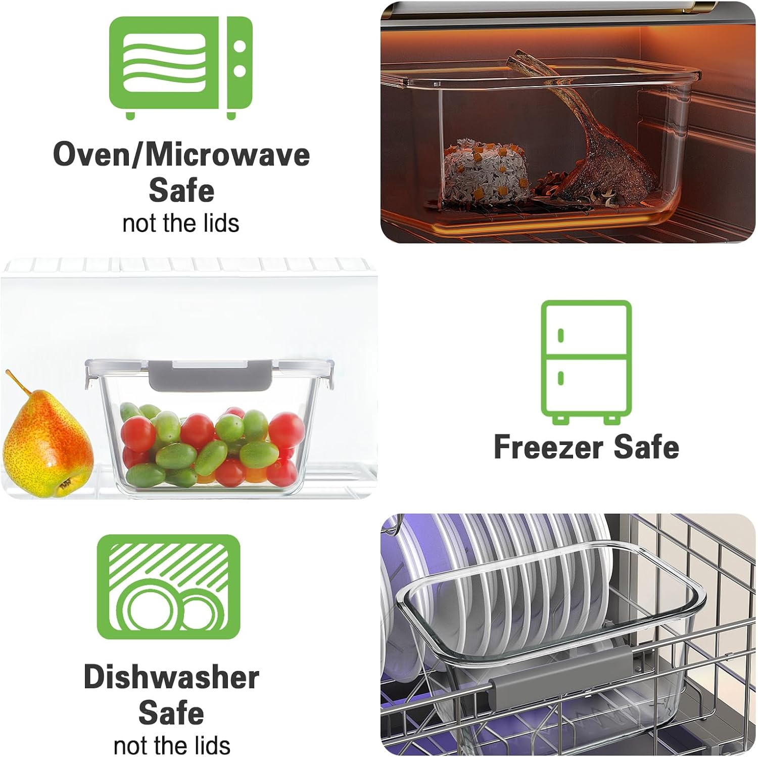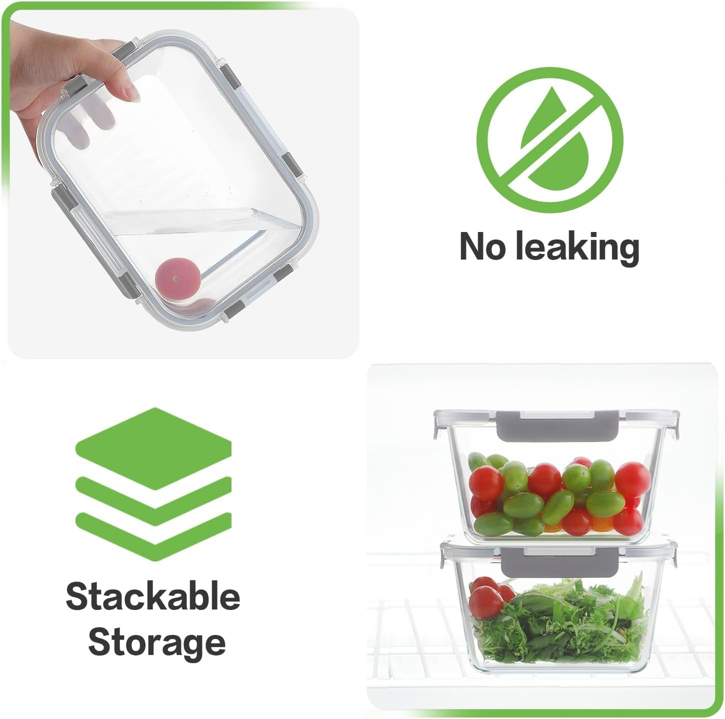 • HOMBERKING 4 Pieces 63oz/8cup Large Glass Food Storage Containers with Lids, Meal Prep Containers, Airtight Bento Boxes with Leak Proof Locking (2 Containers + 2 Lids) - Microwave, Oven Safe