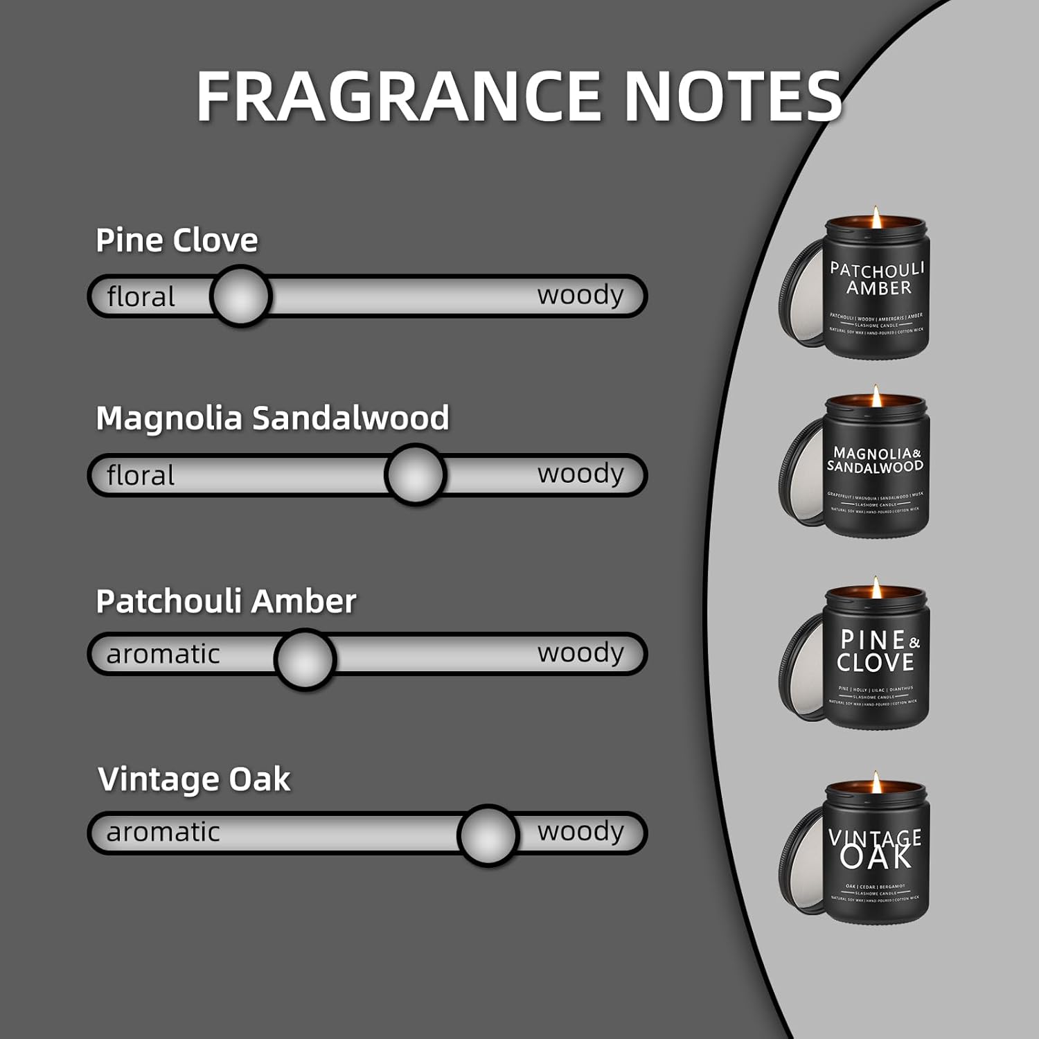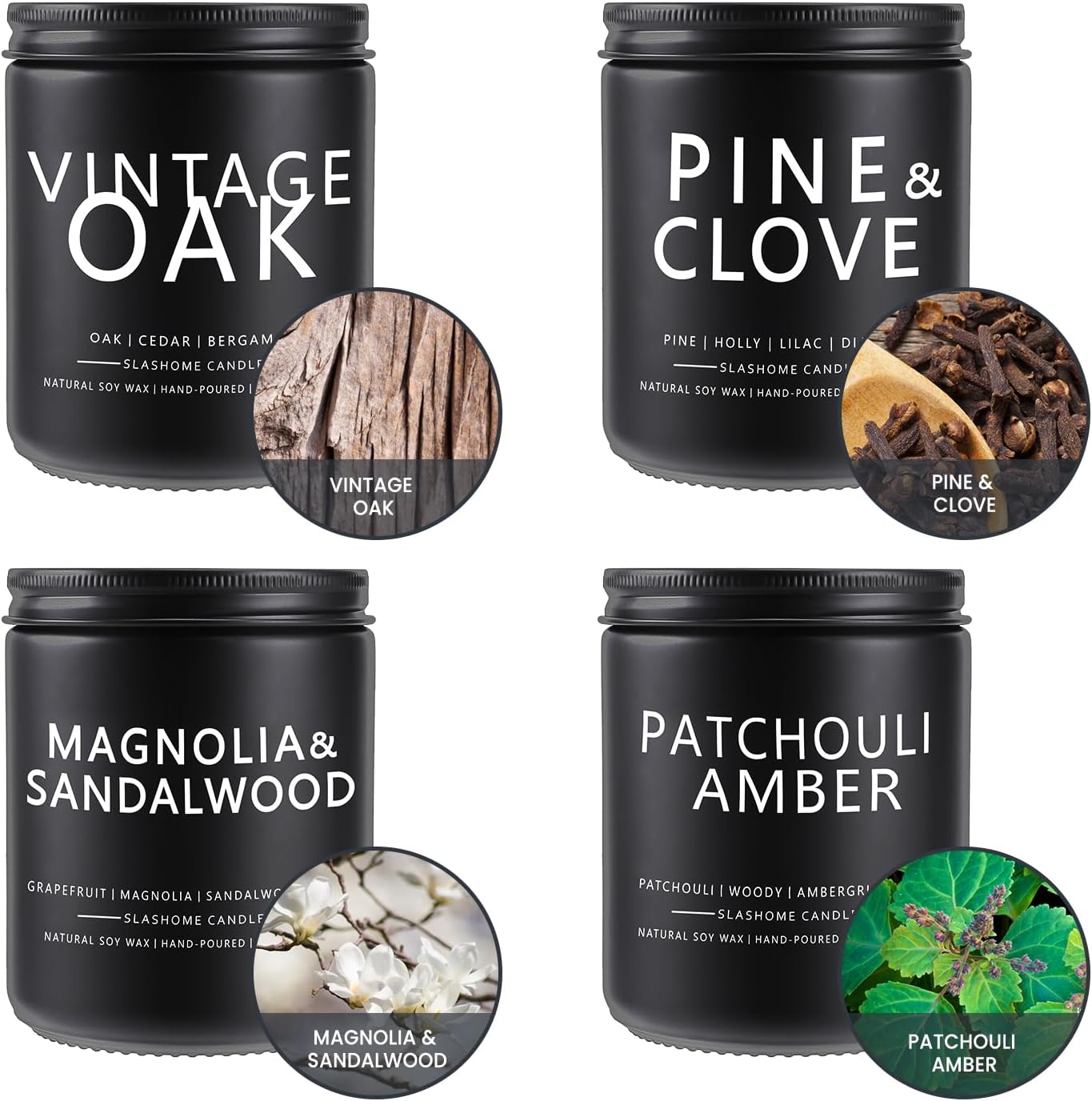 • Candles for Men, 4 Pack Scented Candles, Gifts for Father Dad Day, 50 Hours Long Burning Soy Candles for Home Scented (Pine/Sandalwood/Patchouli/Oak)