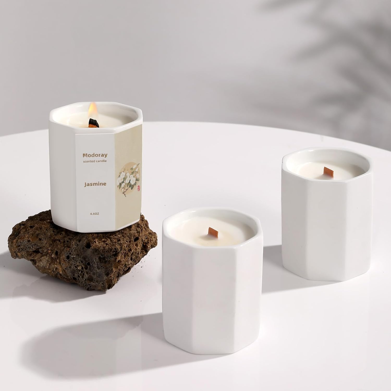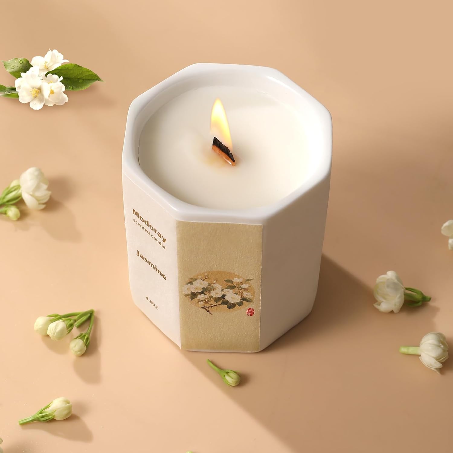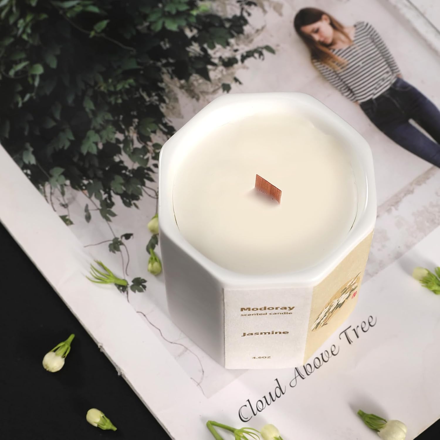 Scented Candle,Jasmine Scented Candle,Candles for Home Scented, Soy & Coconute Wax, Wood Wick Candle,Crackling Candle,Gift for Woman Man, White, jasmine00