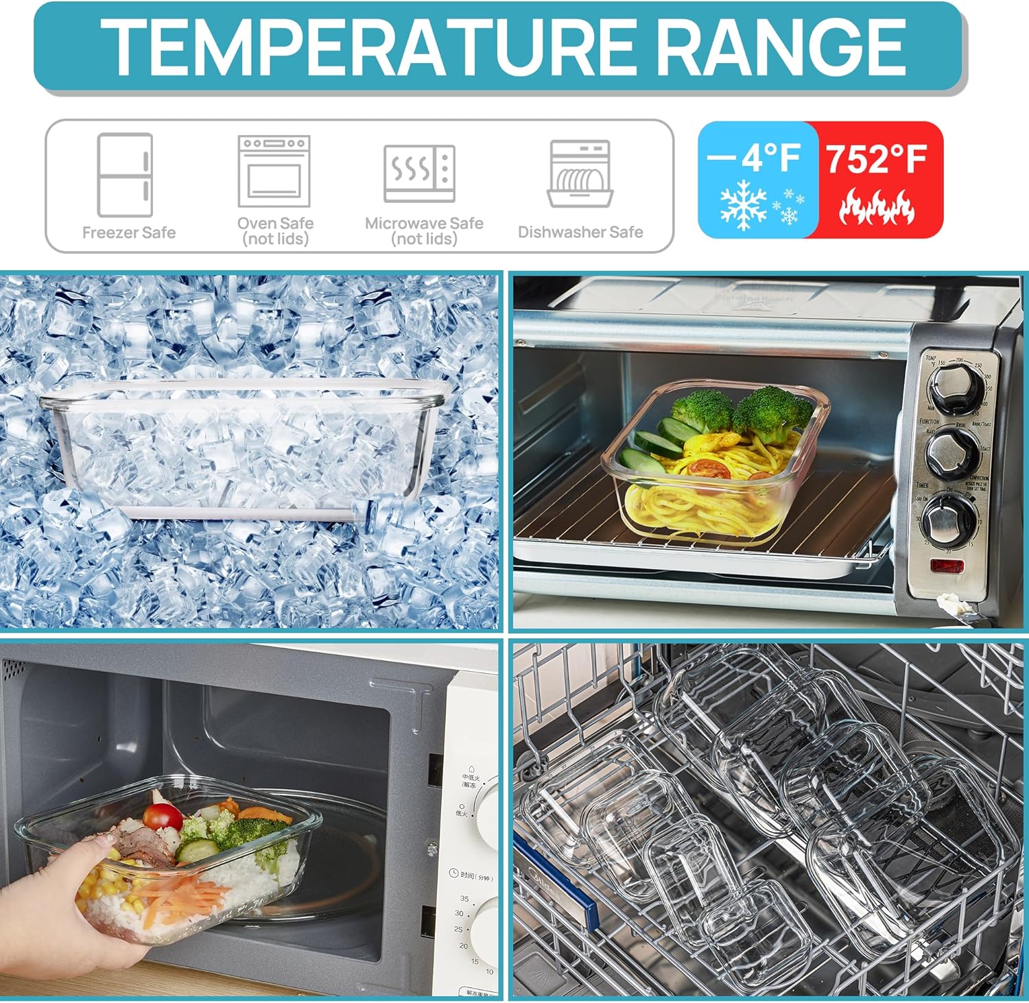 • Vtopmart 5 Pack 35oz Glass Food Storage Containers with Lids, Meal Prep Containers, Airtight Reusable Lunch Container Set, Safe for Oven, Microwave, Freezer, and Dishwasher