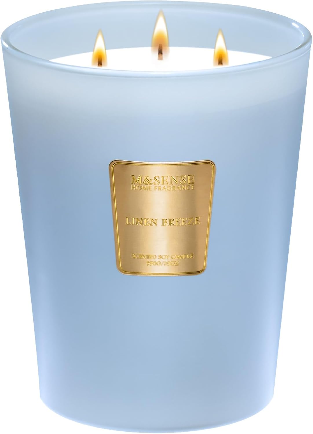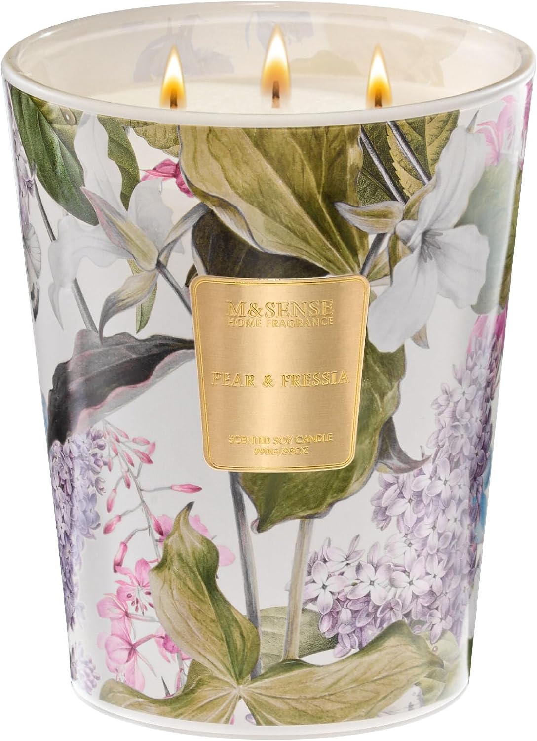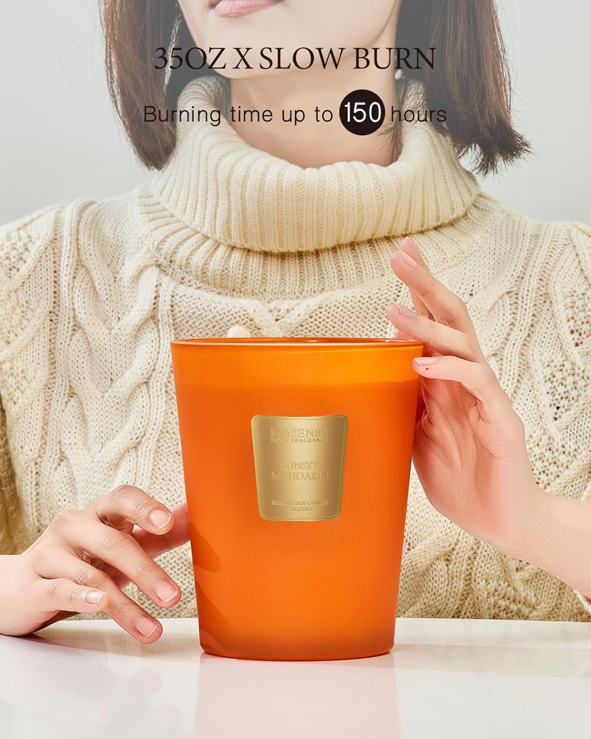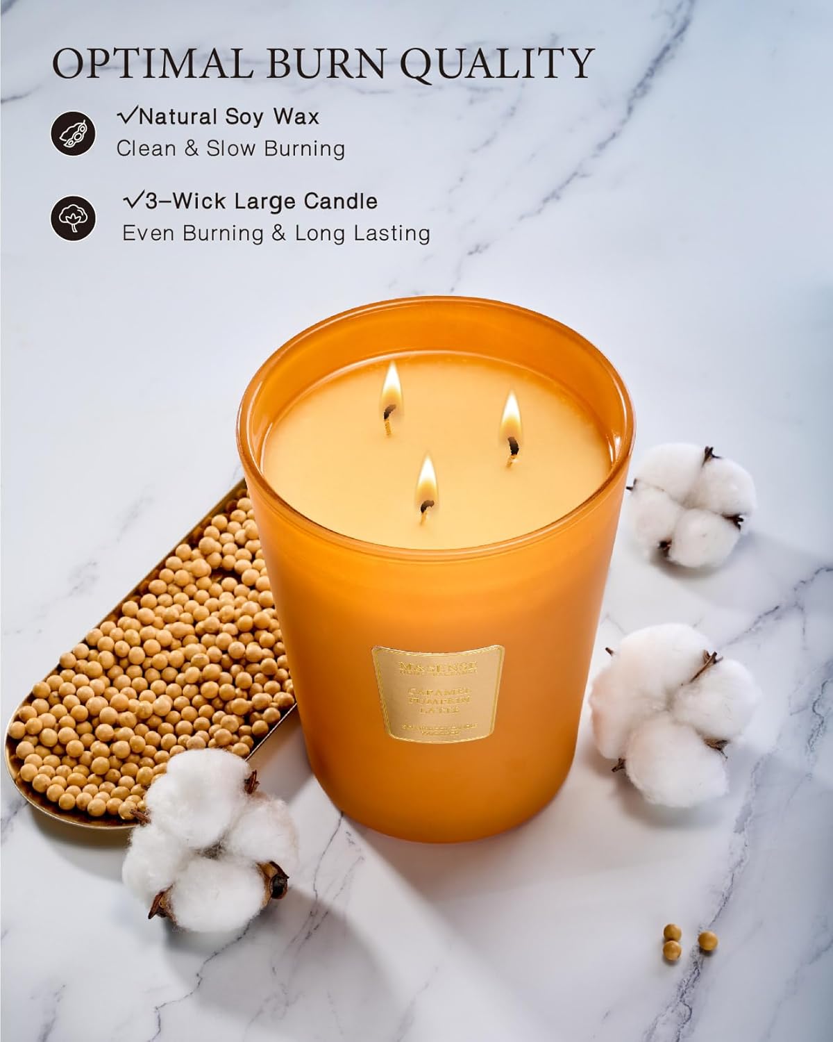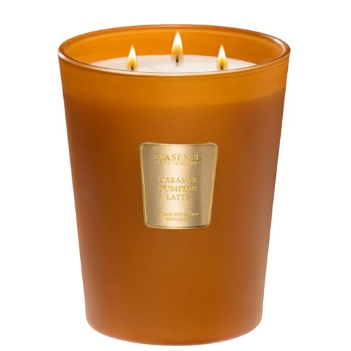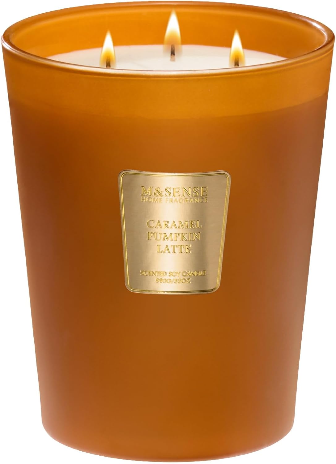 M&SENSE Large Candles Caramel Pumpkin Latte Scented, 3 Wick Natural Soy Candles for Home Scented, 150H Long Lasting Slow Burn Jar Candle 35oz, No Toxic Aromatherapy Candle for Stress Relief