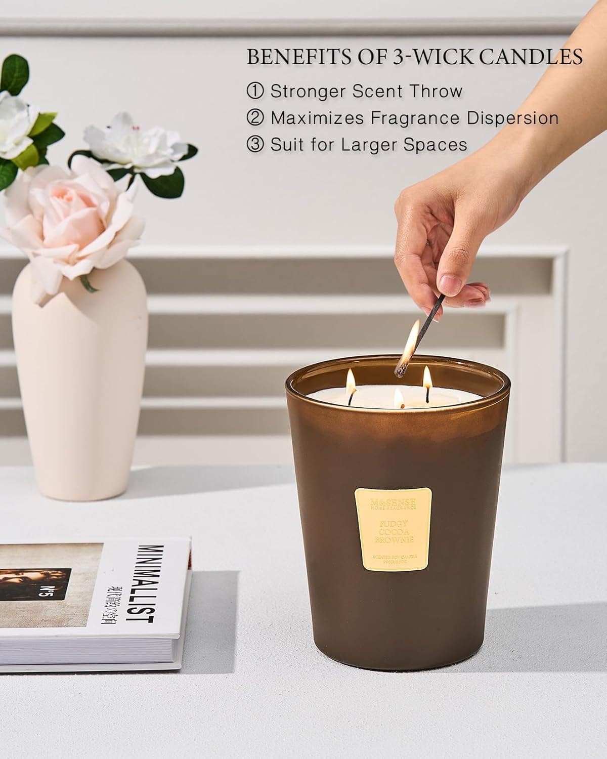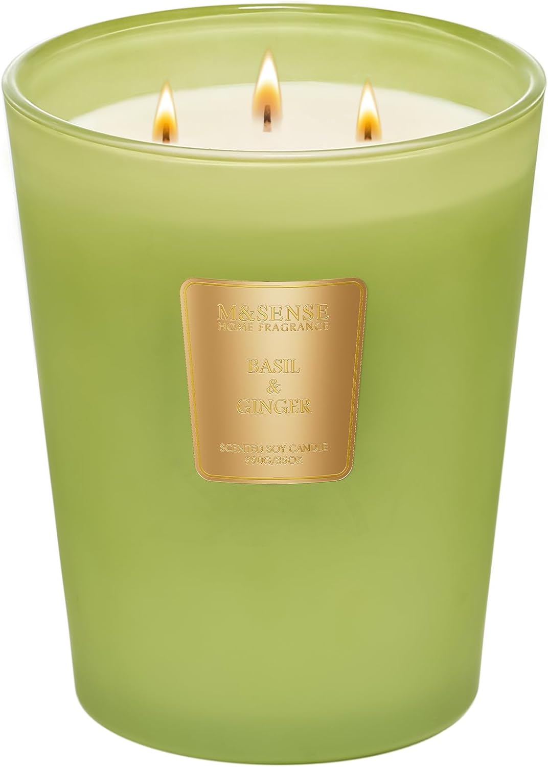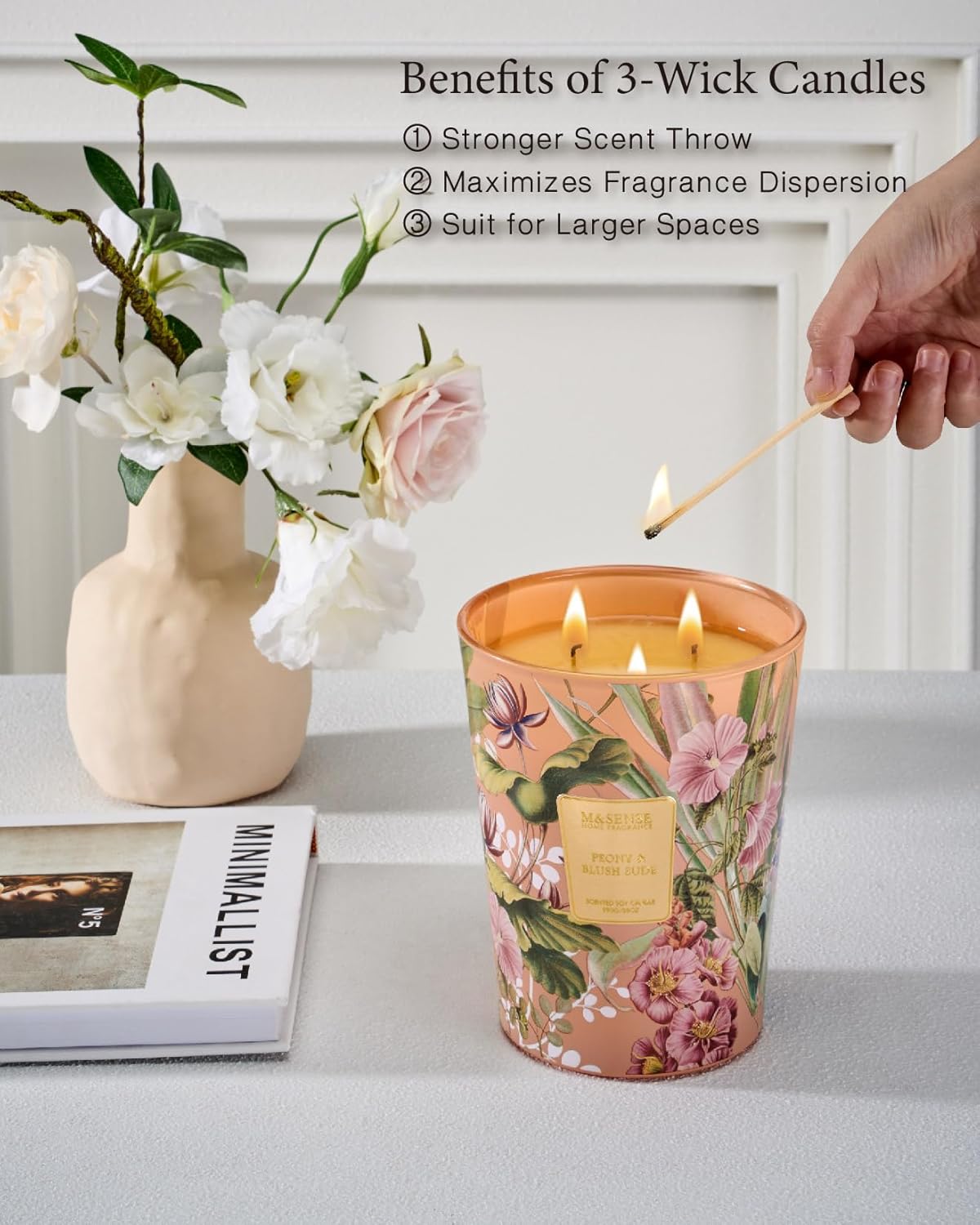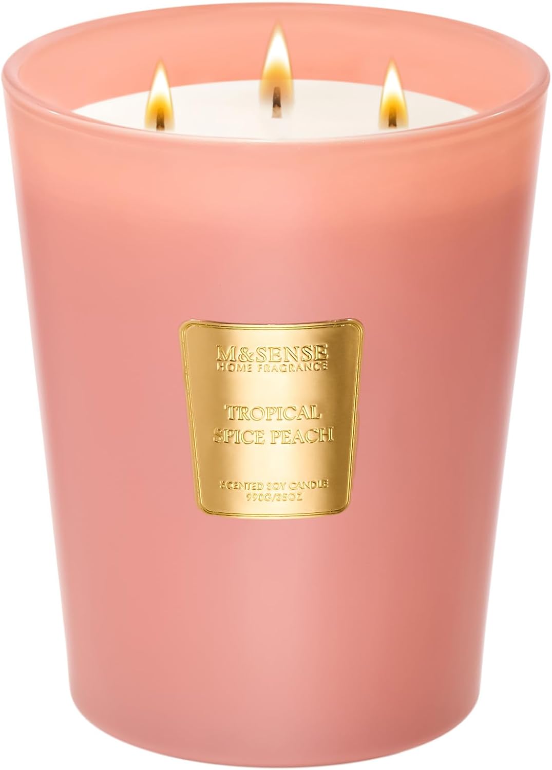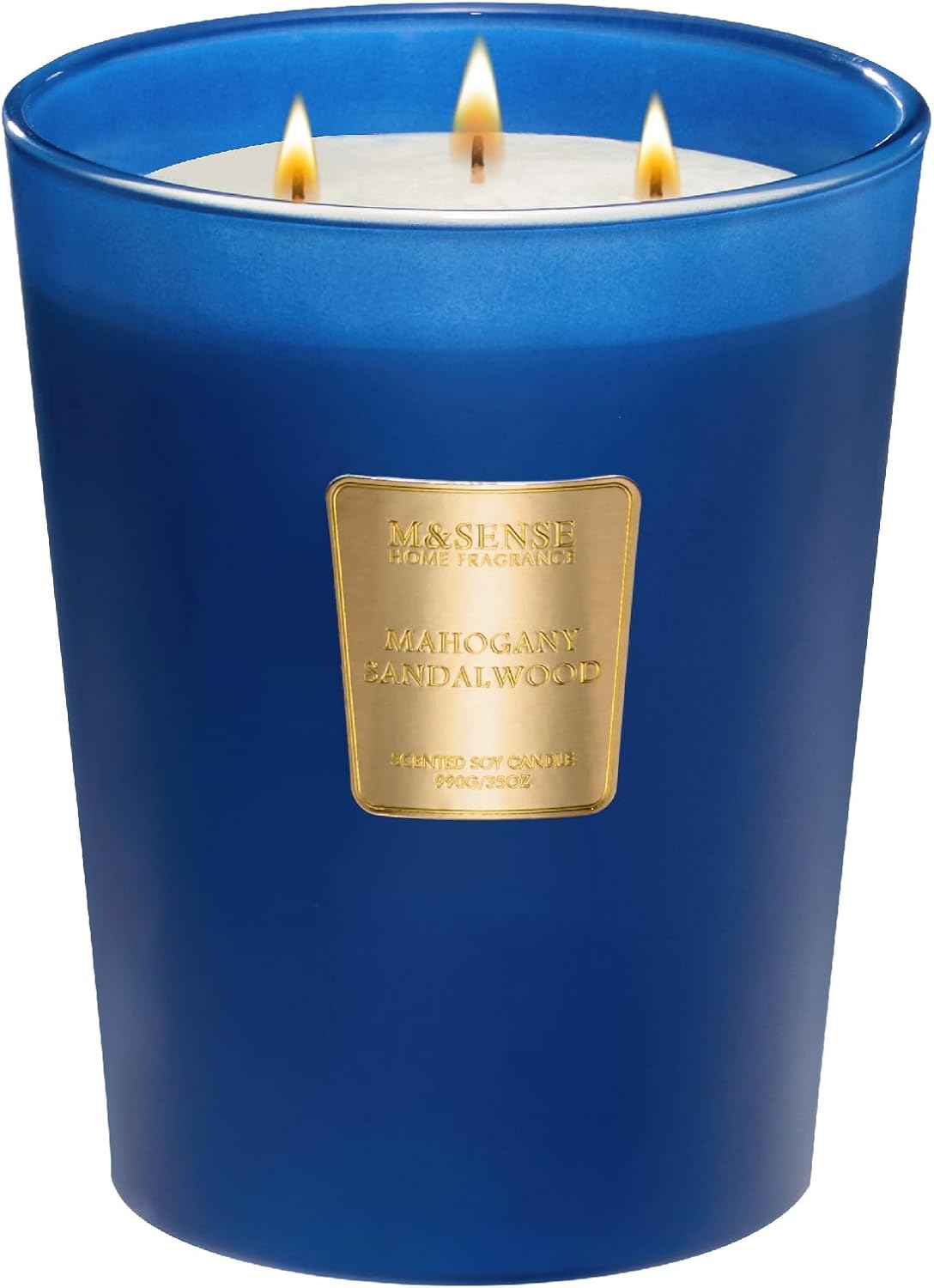 M&SENSE Large Candles Caramel Pumpkin Latte Scented, 3 Wick Natural Soy Candles for Home Scented, 150H Long Lasting Slow Burn Jar Candle 35oz, No Toxic Aromatherapy Candle for Stress Relief