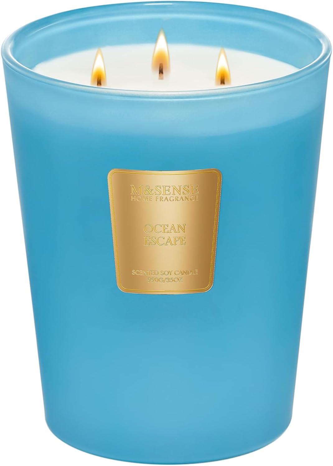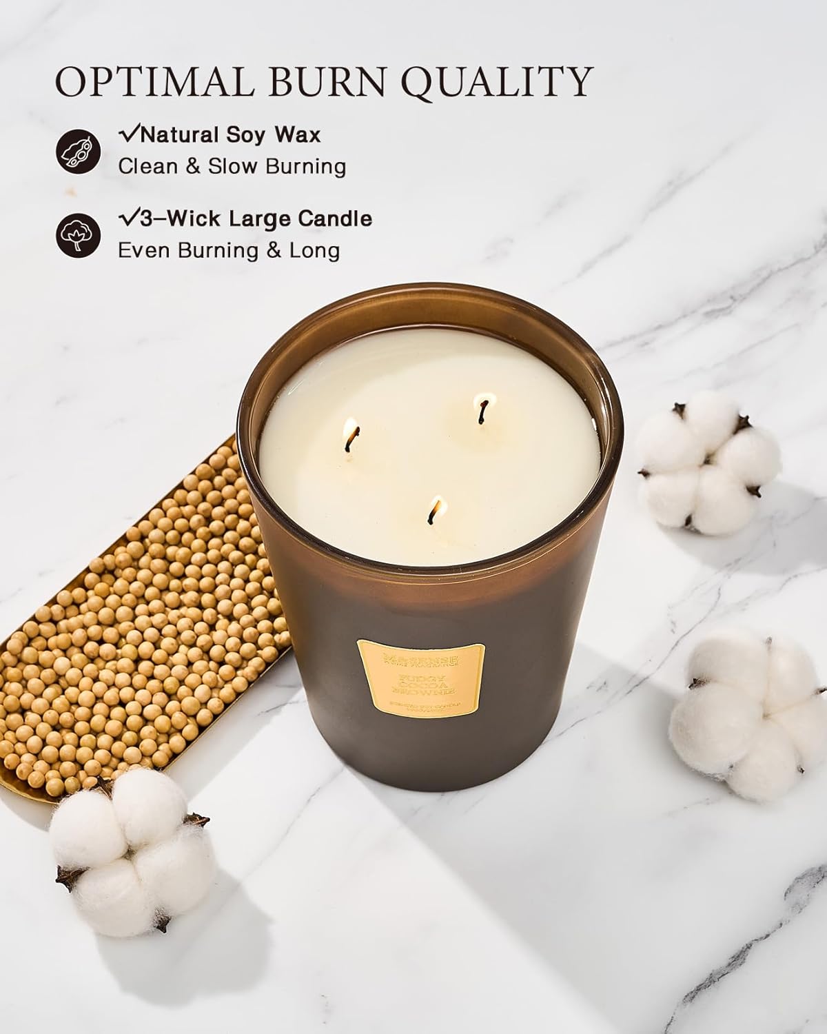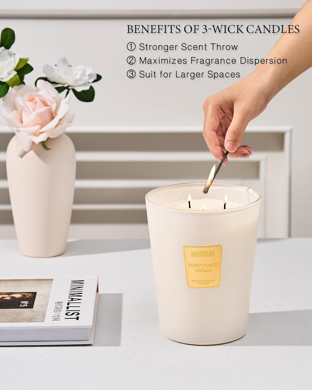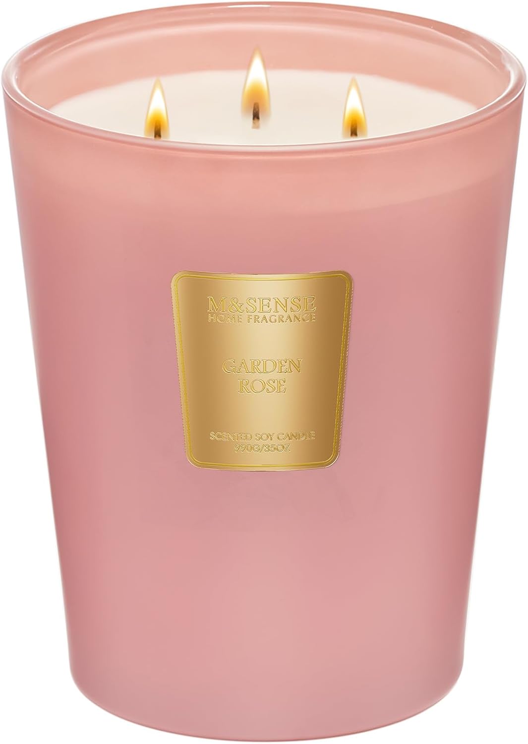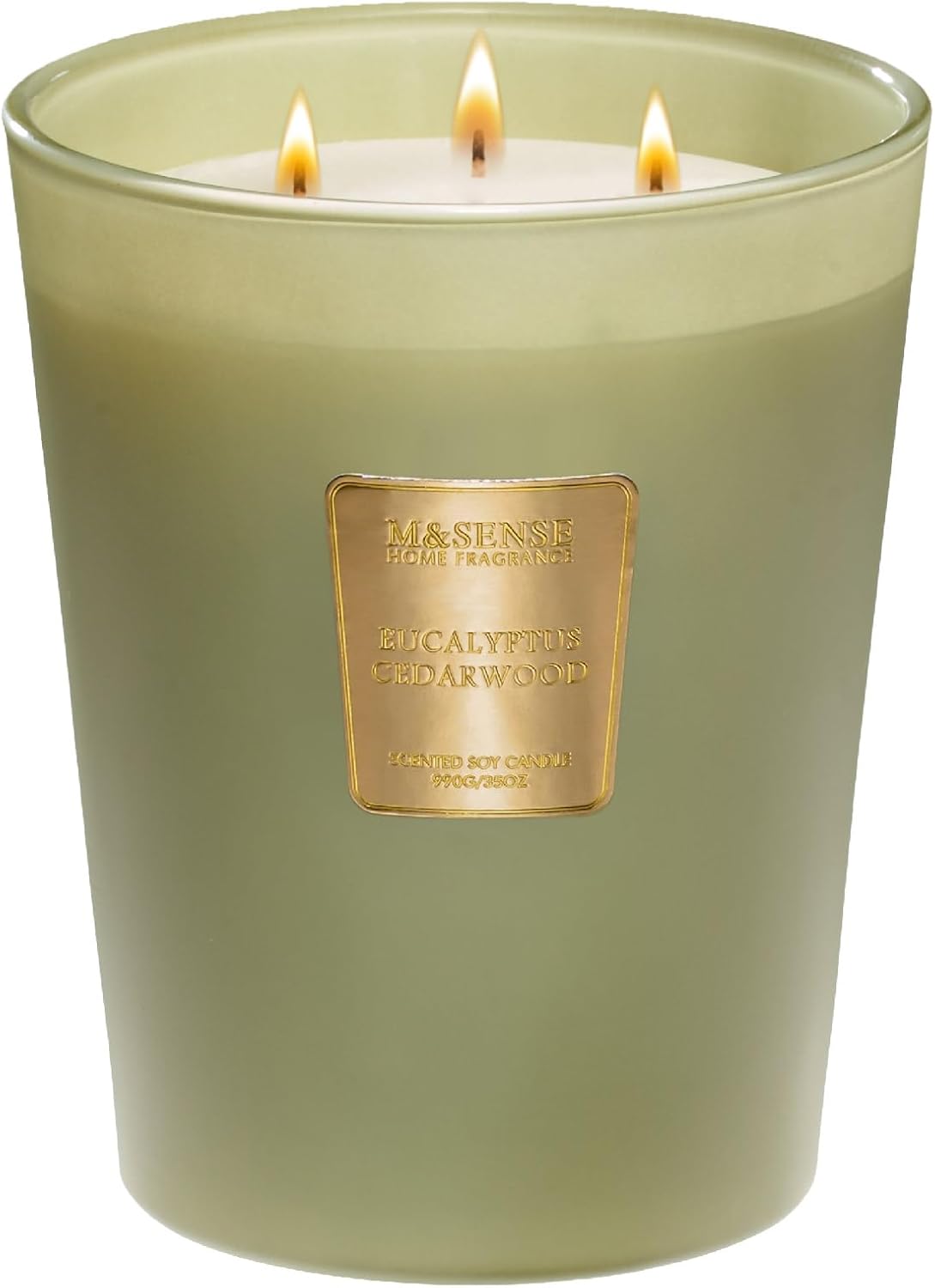 M&SENSE Large Candles Caramel Pumpkin Latte Scented, 3 Wick Natural Soy Candles for Home Scented, 150H Long Lasting Slow Burn Jar Candle 35oz, No Toxic Aromatherapy Candle for Stress Relief