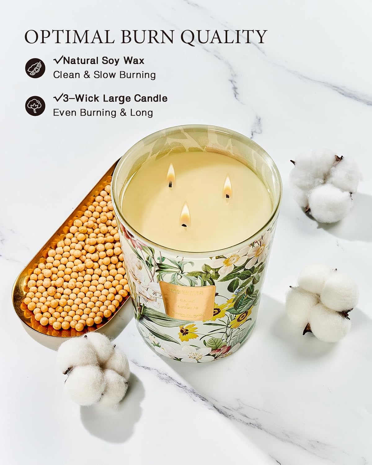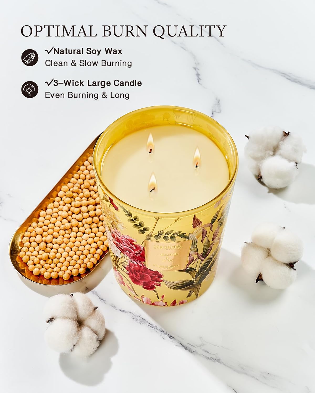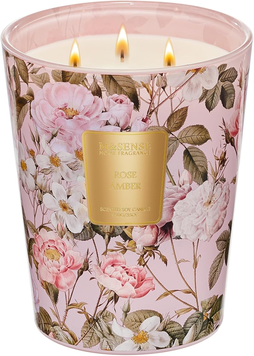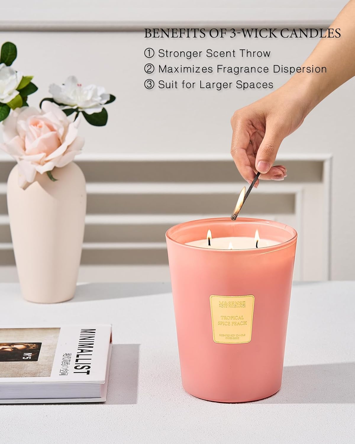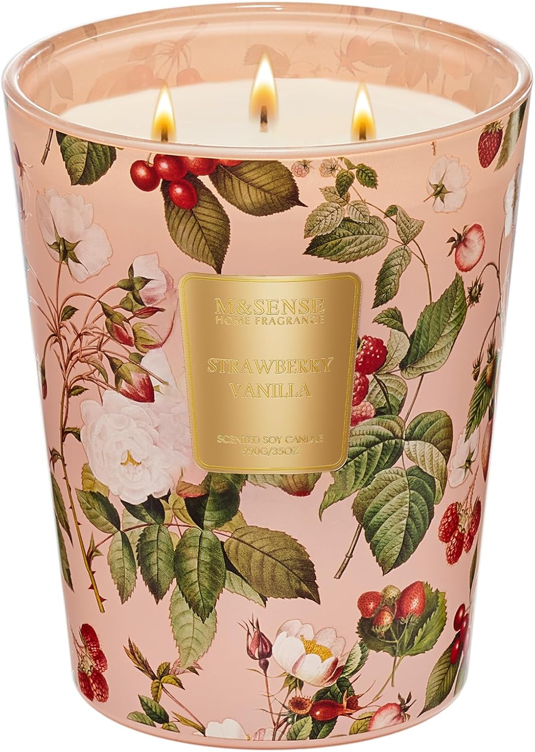 M&SENSE Large Candles Caramel Pumpkin Latte Scented, 3 Wick Natural Soy Candles for Home Scented, 150H Long Lasting Slow Burn Jar Candle 35oz, No Toxic Aromatherapy Candle for Stress Relief