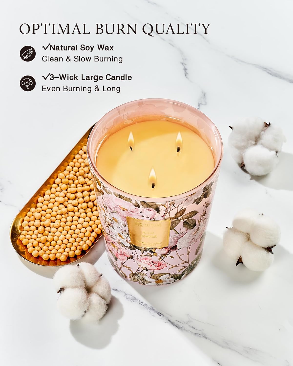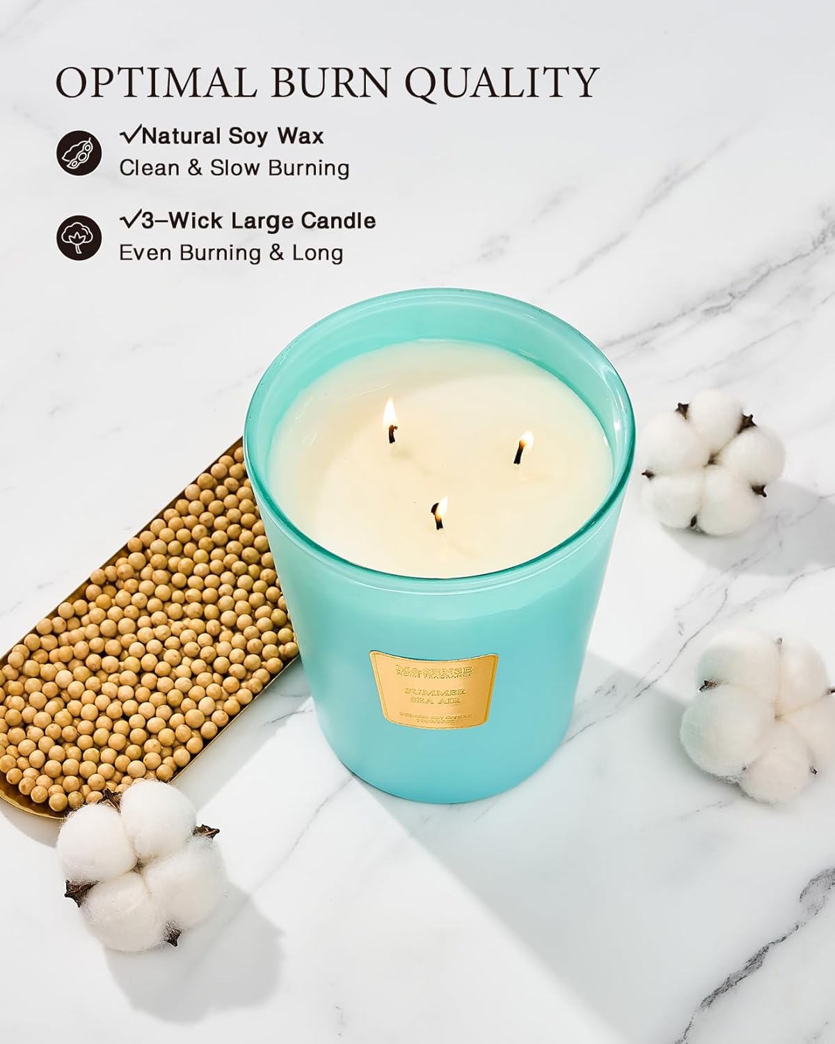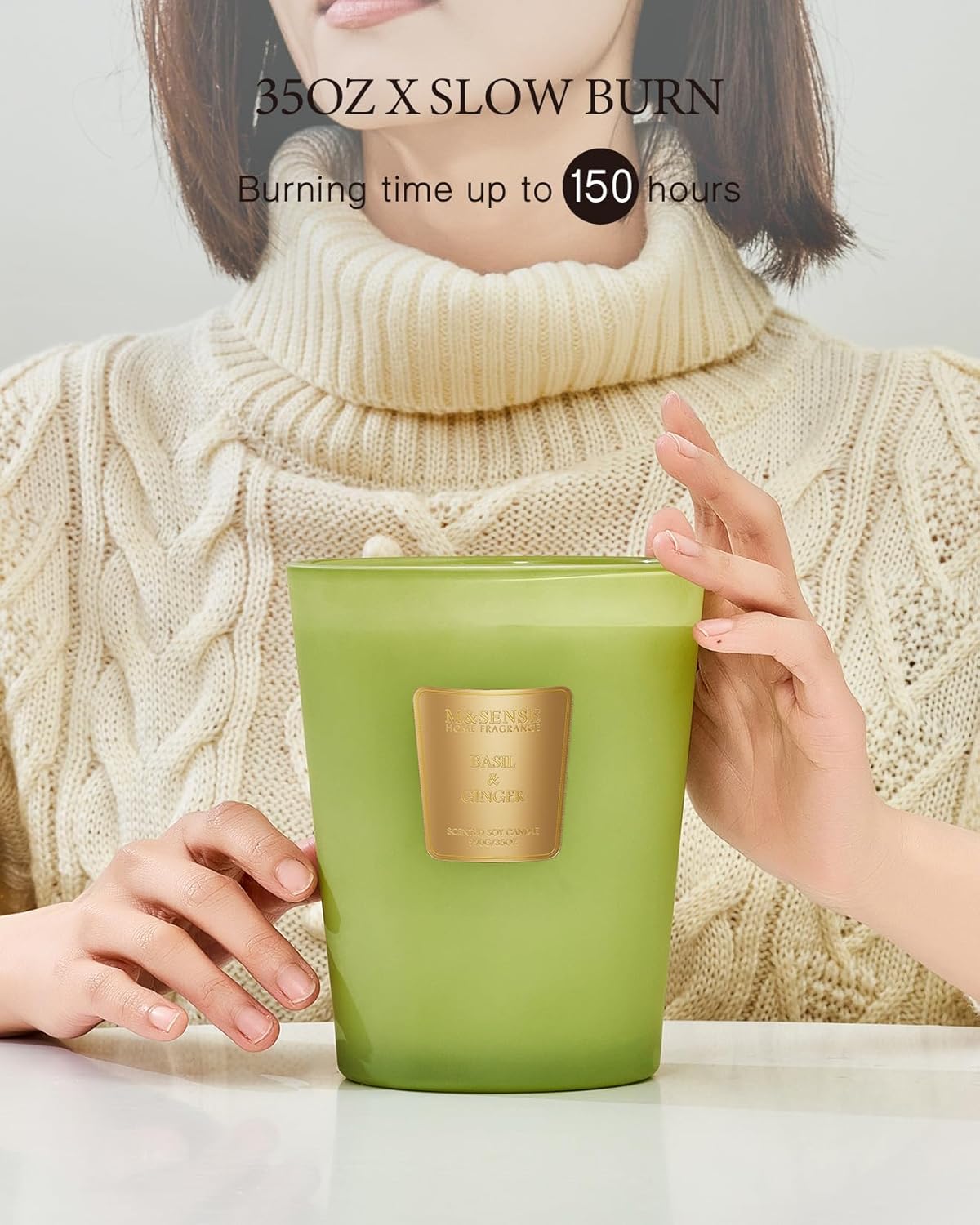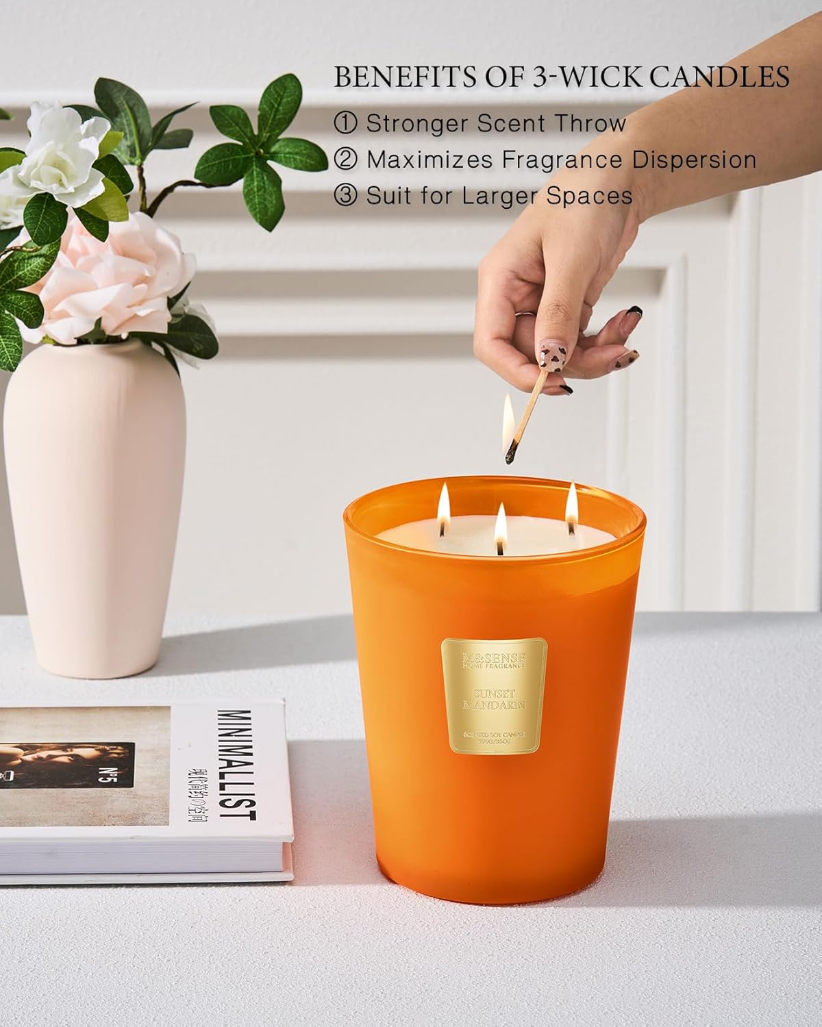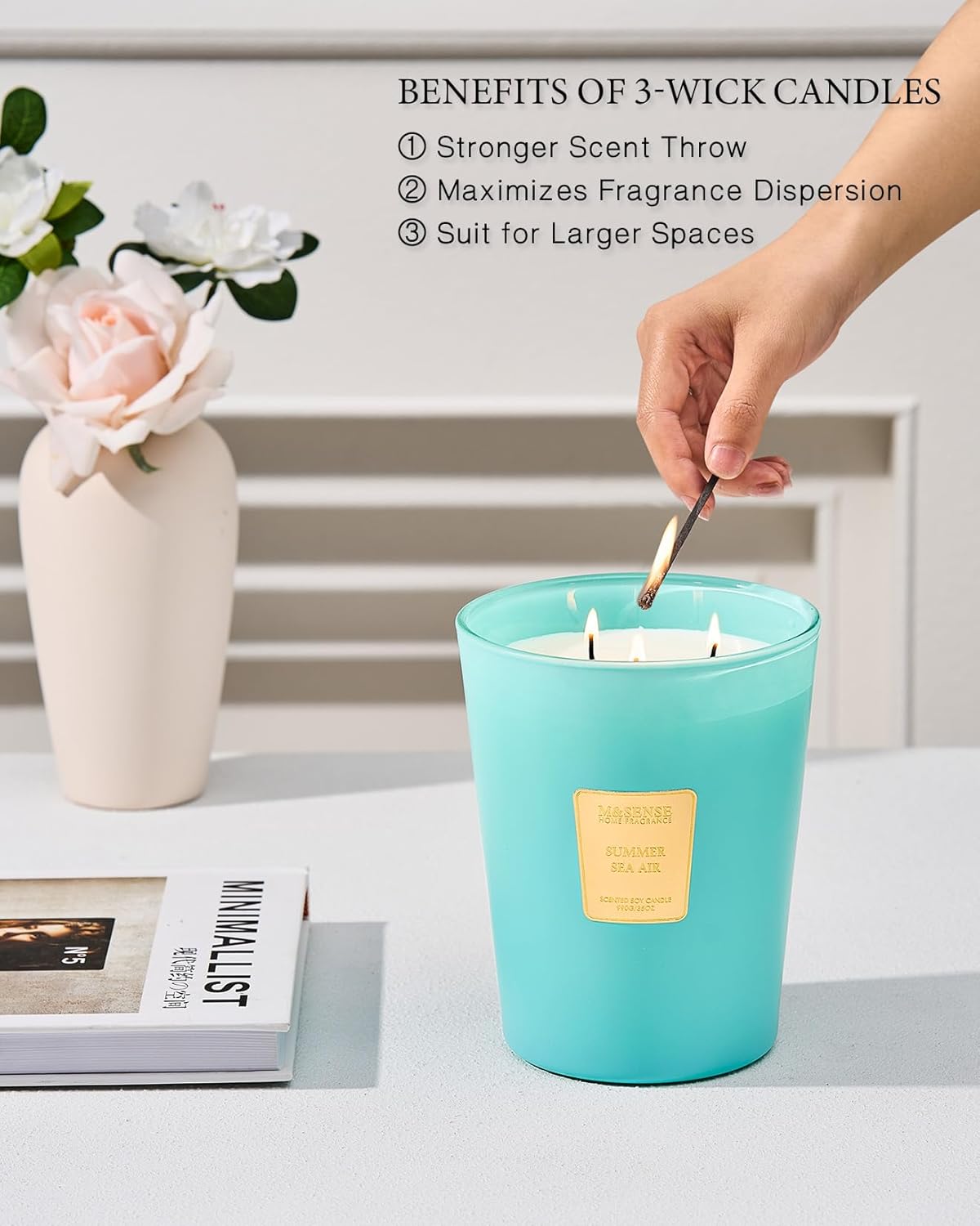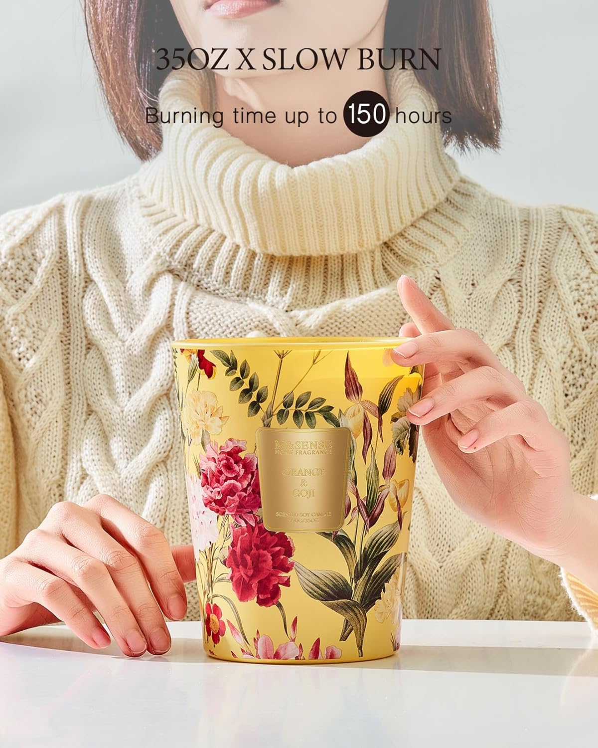 M&SENSE Large Candles Caramel Pumpkin Latte Scented, 3 Wick Natural Soy Candles for Home Scented, 150H Long Lasting Slow Burn Jar Candle 35oz, No Toxic Aromatherapy Candle for Stress Relief